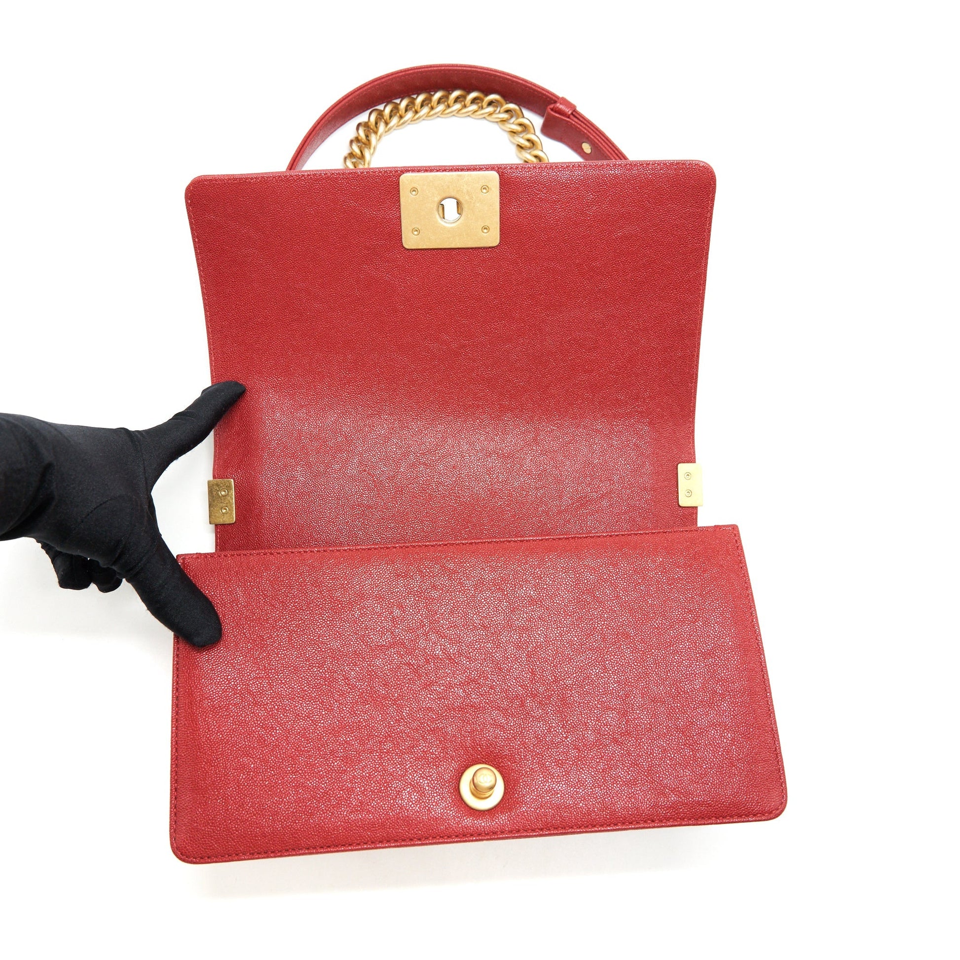 Chanel Medium Boy Grained Red Calfskin Brushed GHW