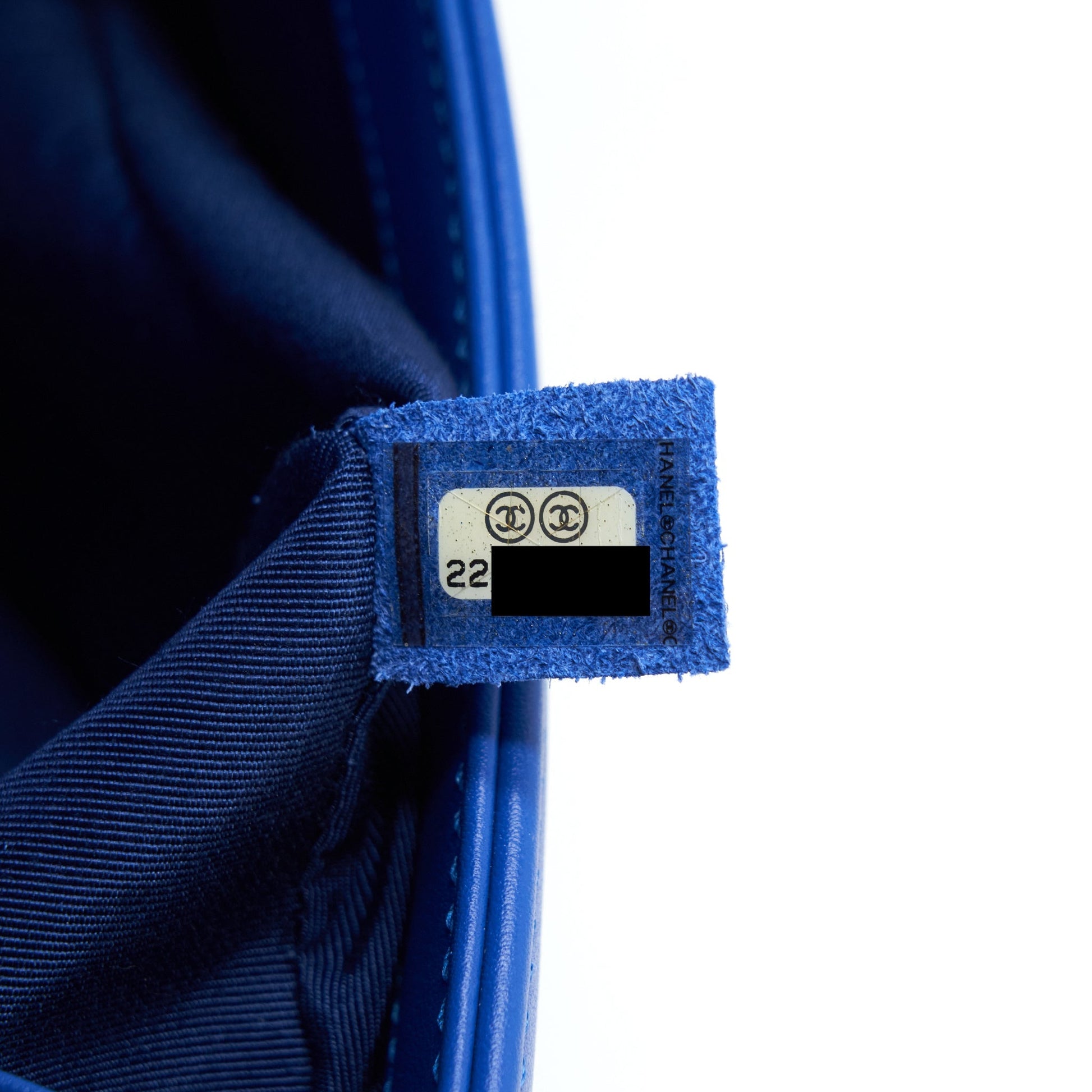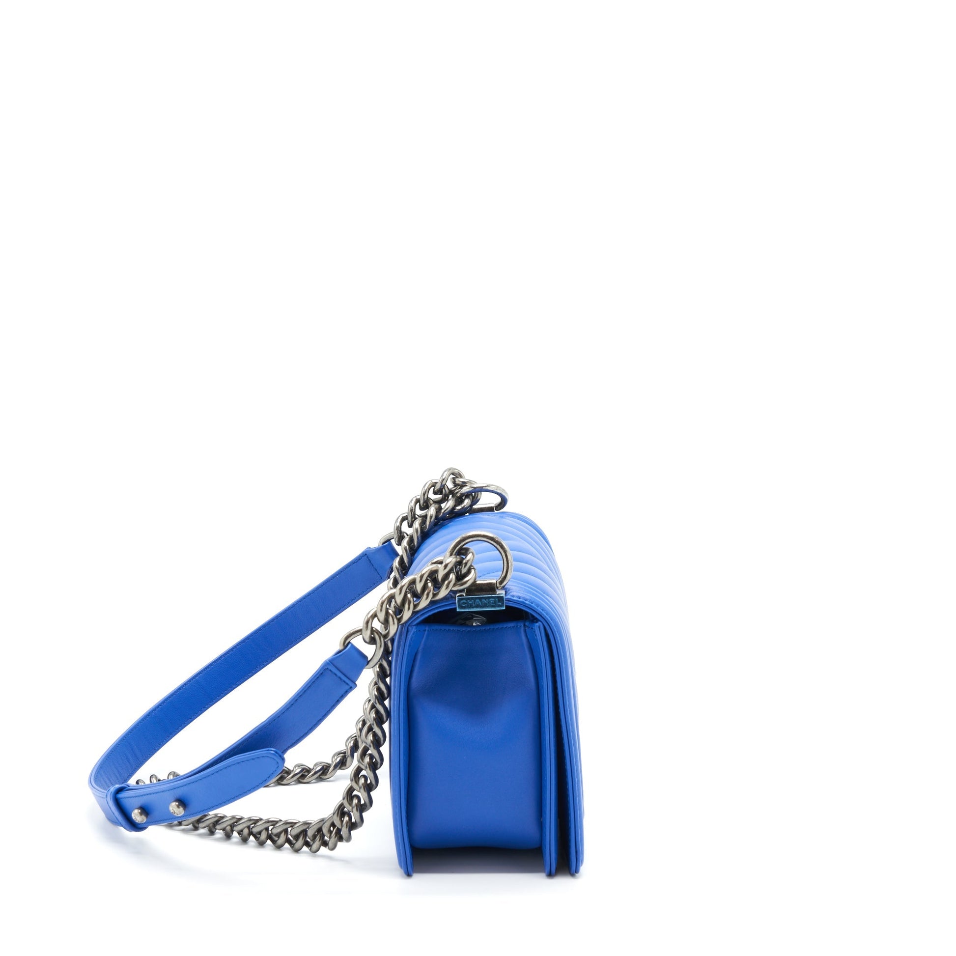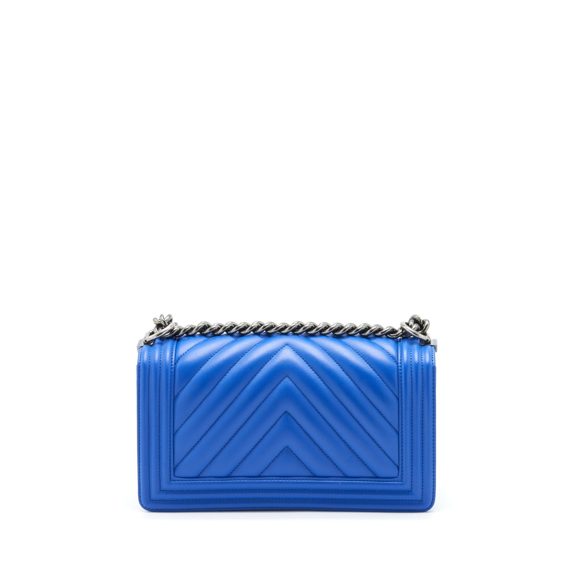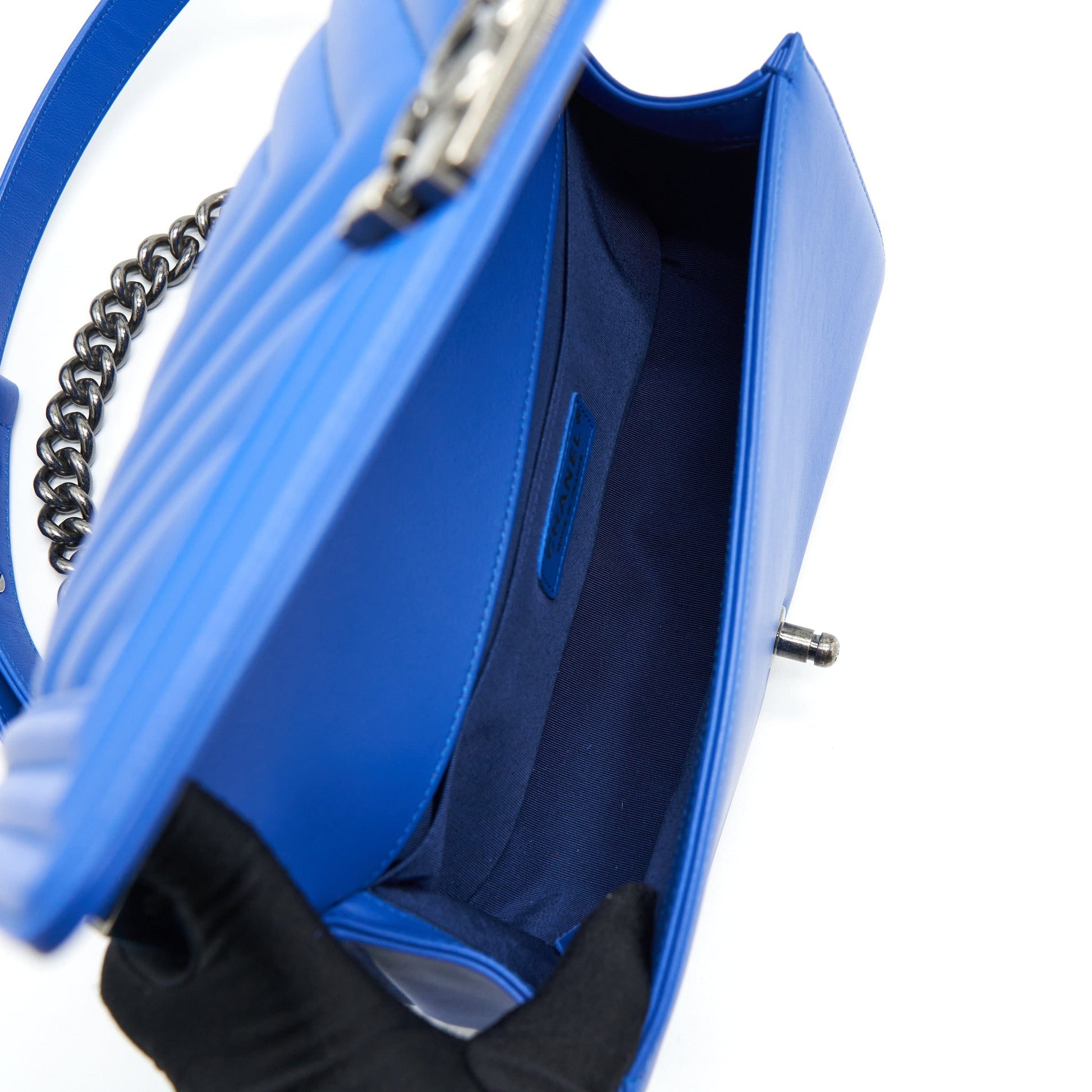 Chanel Medium Chevron Boy Bag Lambskin Blue Ruthenium Hardware