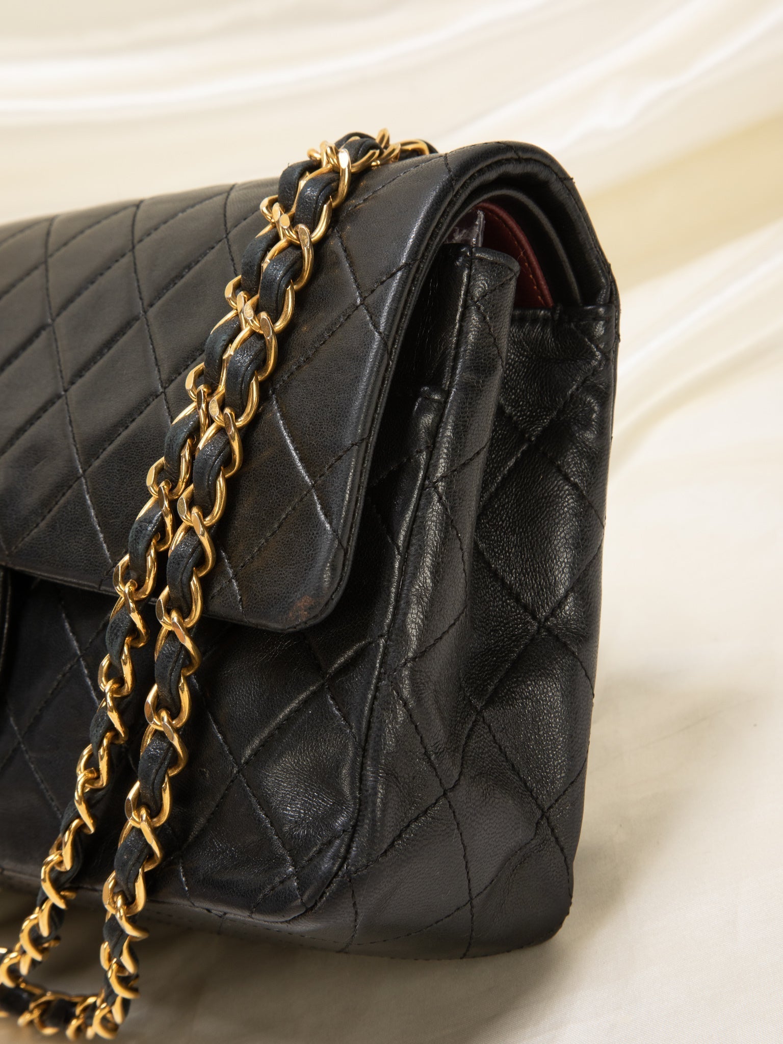 Bringing to the shop a stunning, soft classic Lambskin Chanel flap. New investment piece that?can be loved for years to come. Vintage Chanel crafted in the 90's= 24k hardware and soft buttery lambskin. Don't miss out on this gorgeous find. Can be as a long or short shoulder bag.