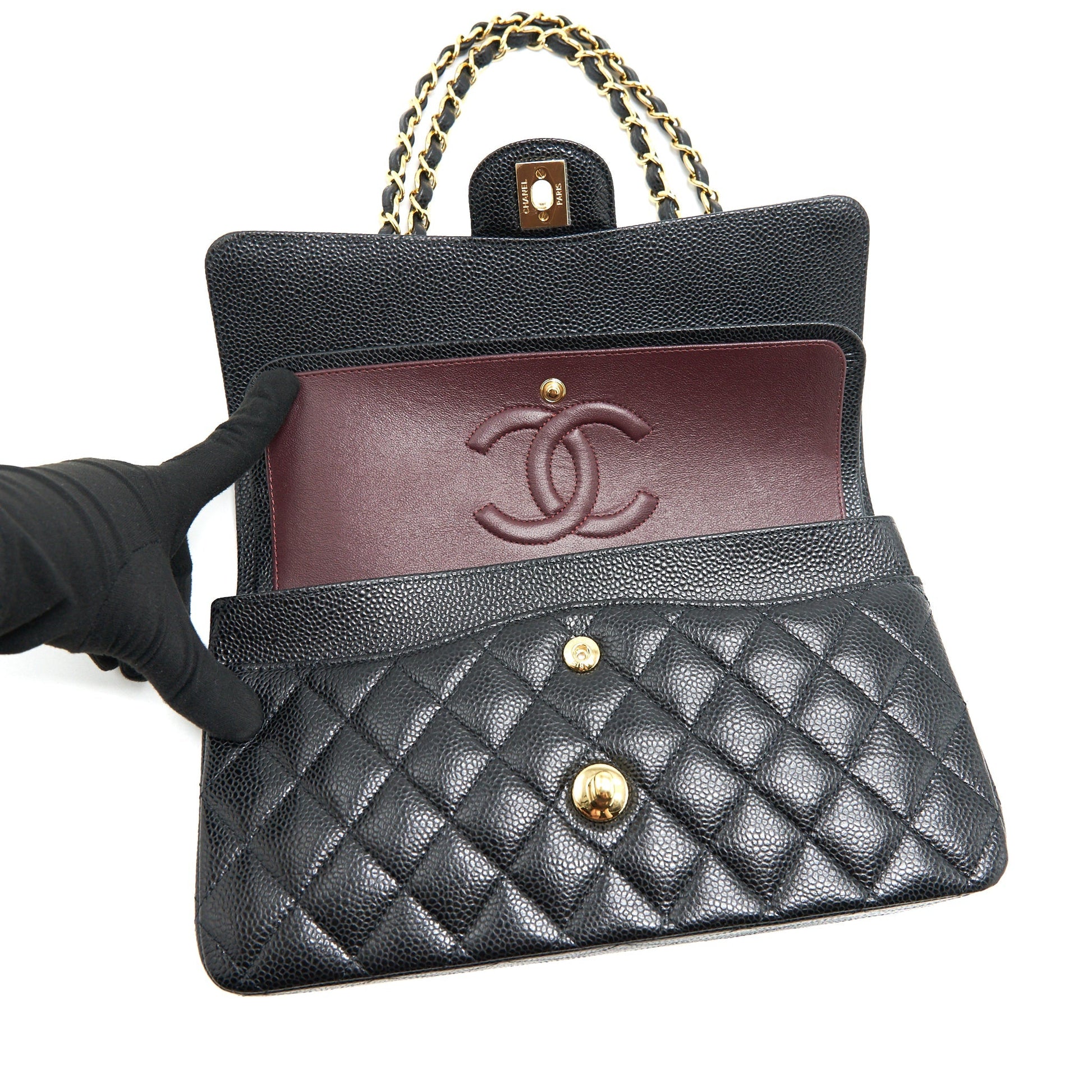 Chanel Medium Classic Double Flap 25cm Caviar Black GHW (Microchip)