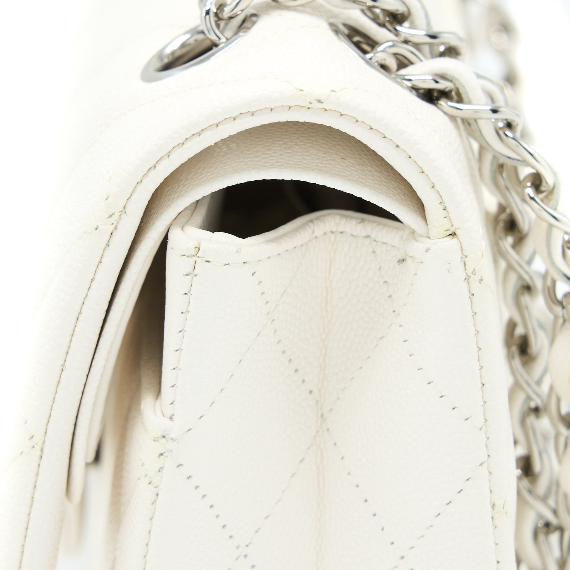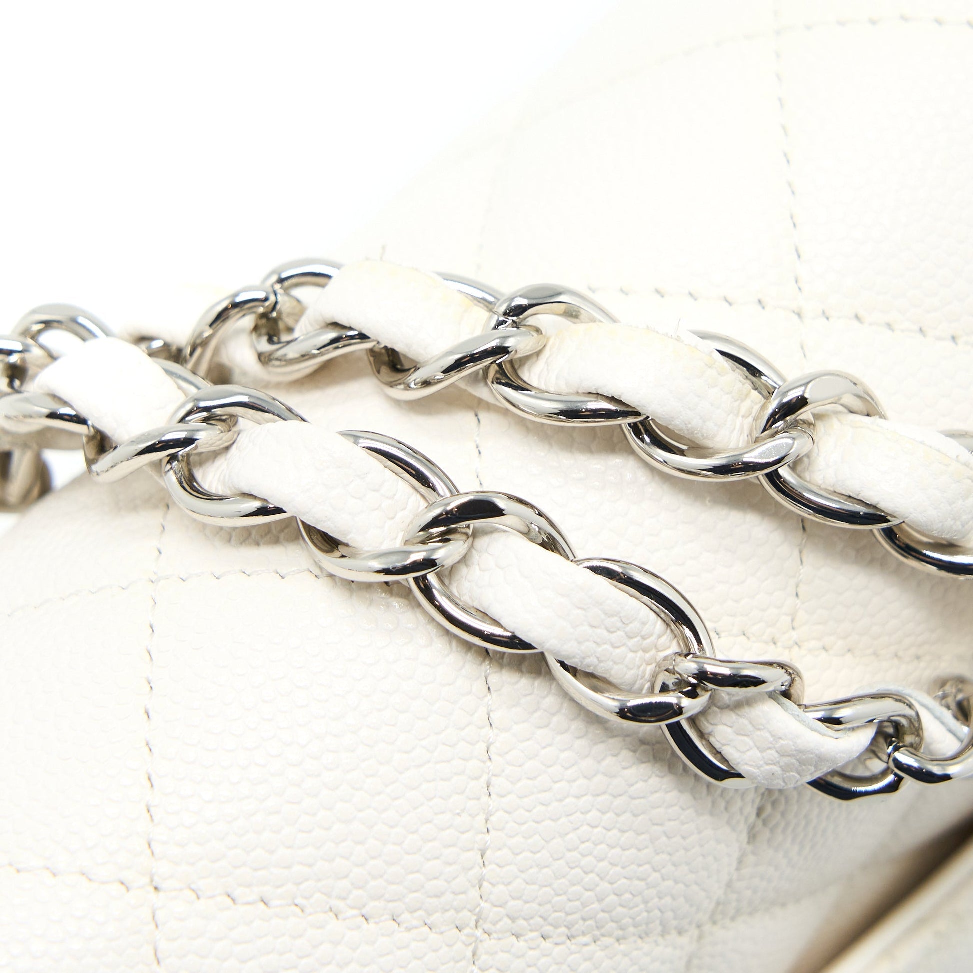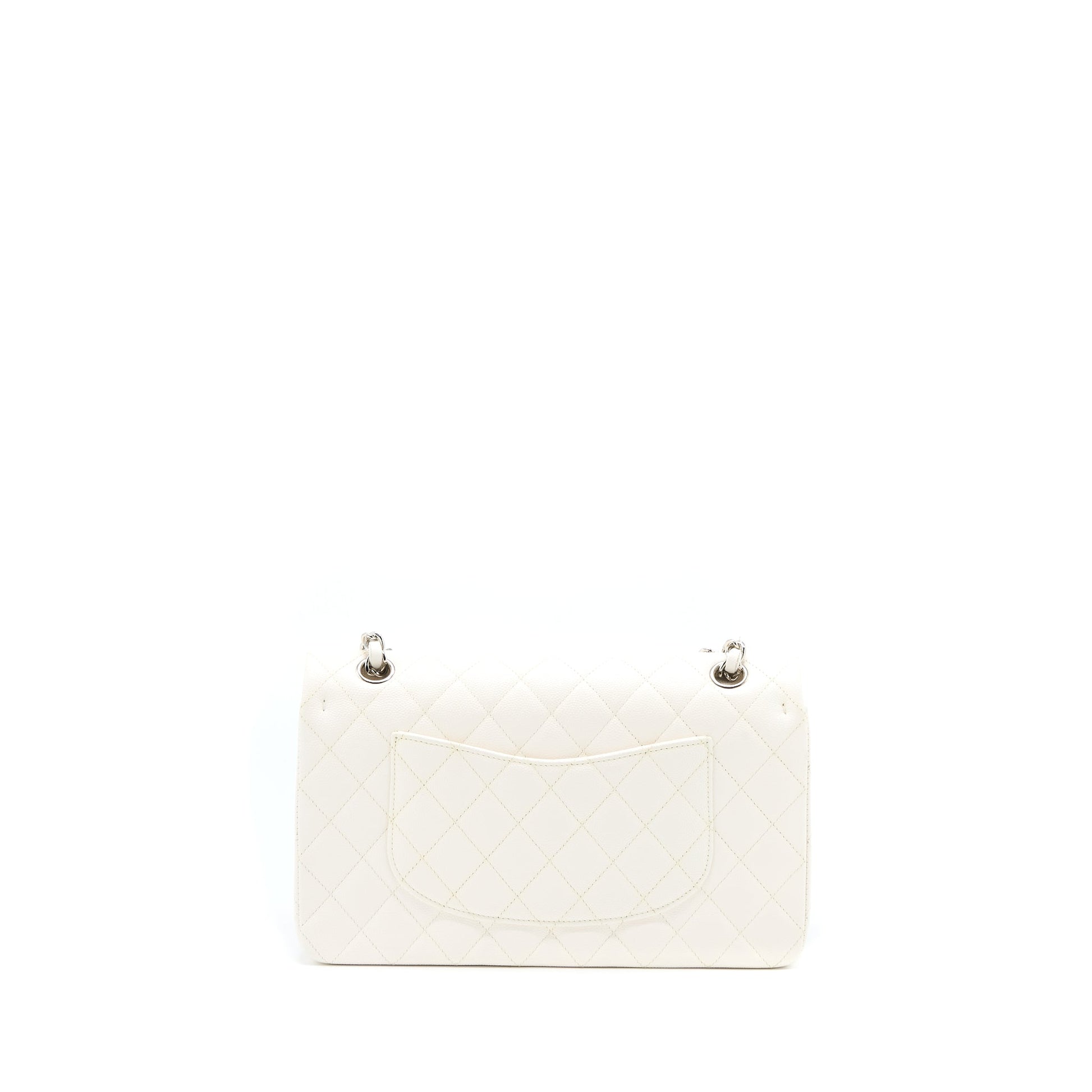 Chanel Medium Classic Double Flap Bag Caviar White SHW (Microchip)