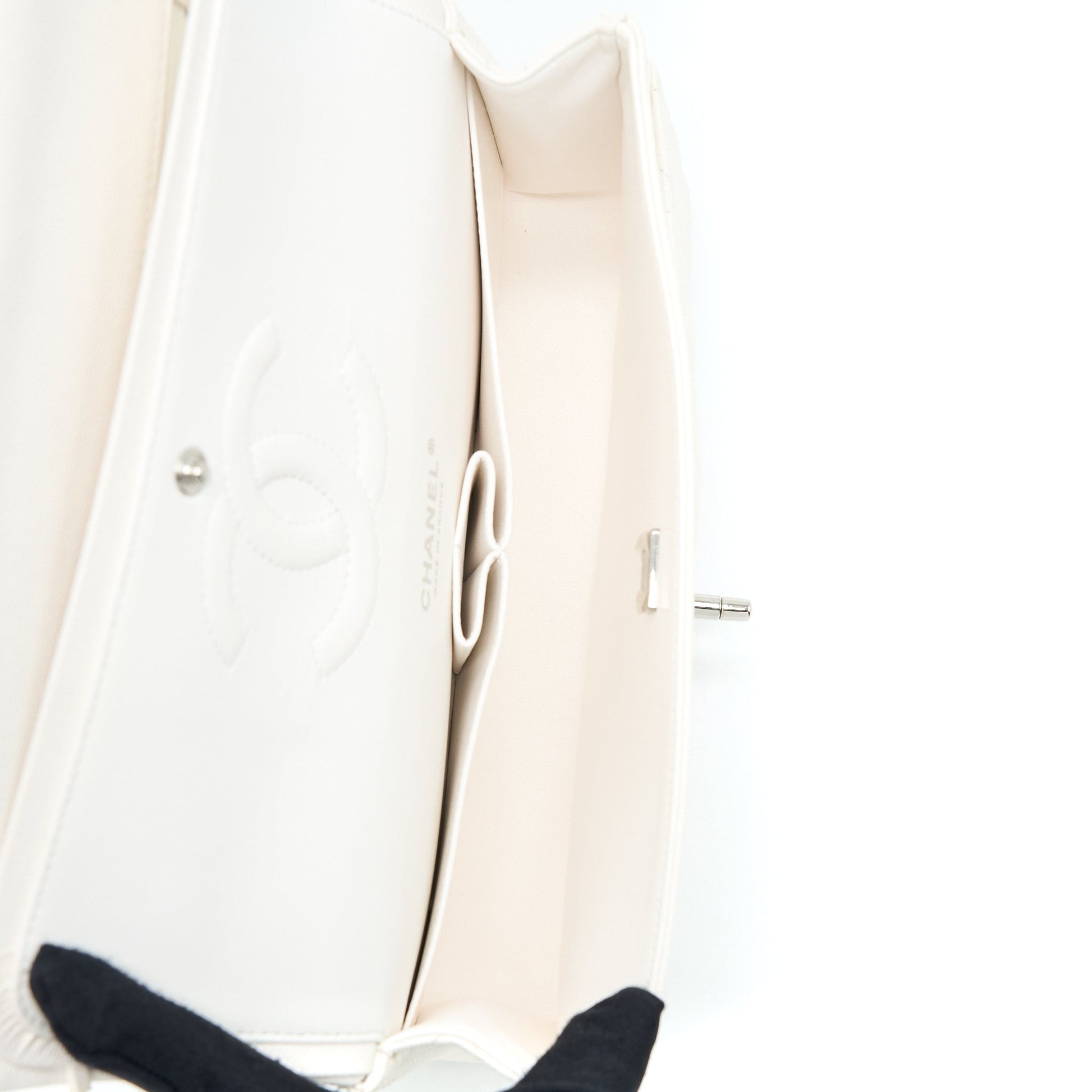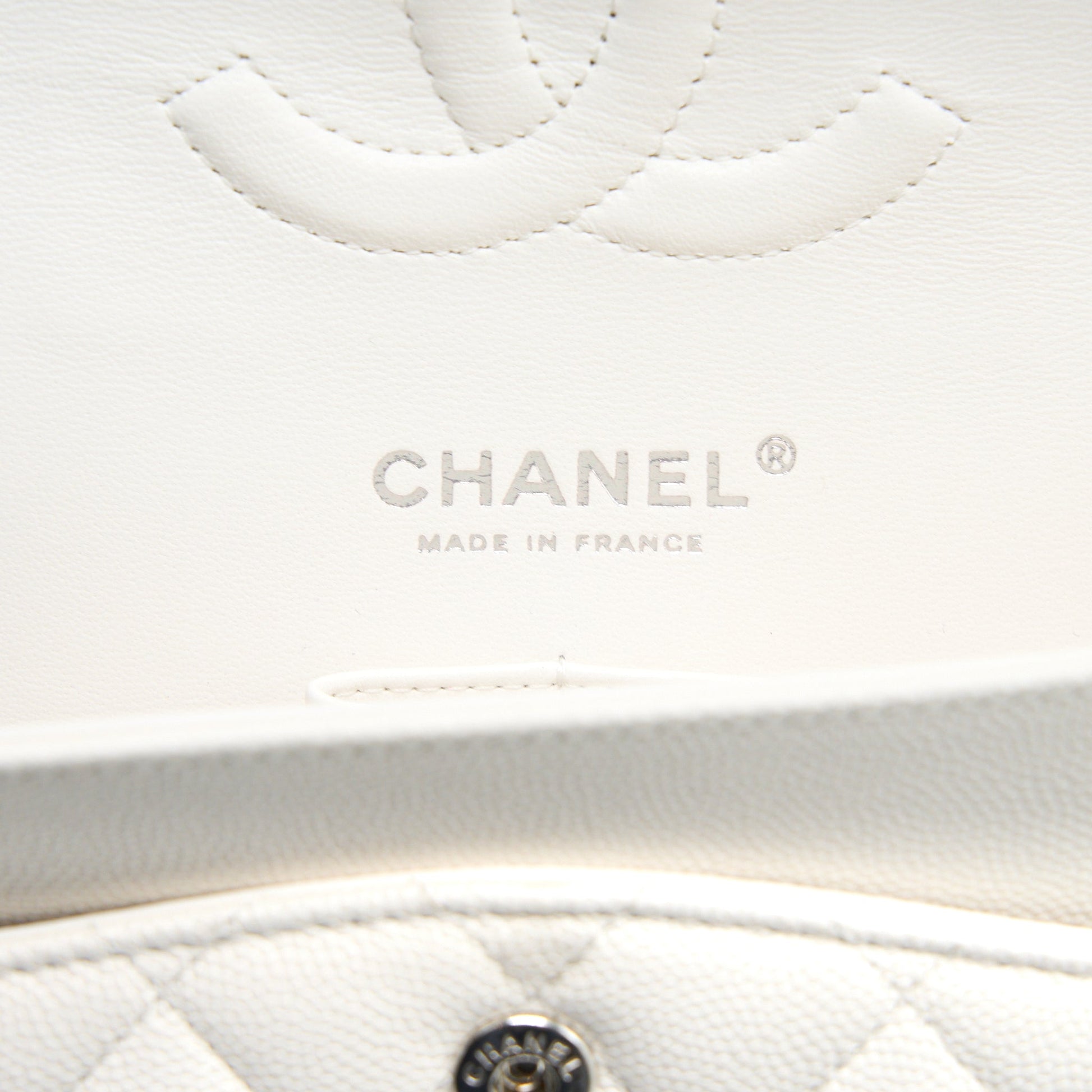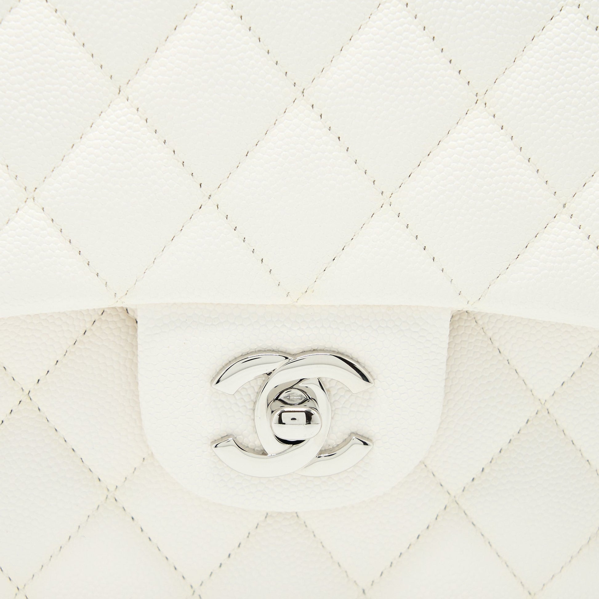 Chanel Medium Classic Double Flap Bag Caviar White SHW (Microchip)