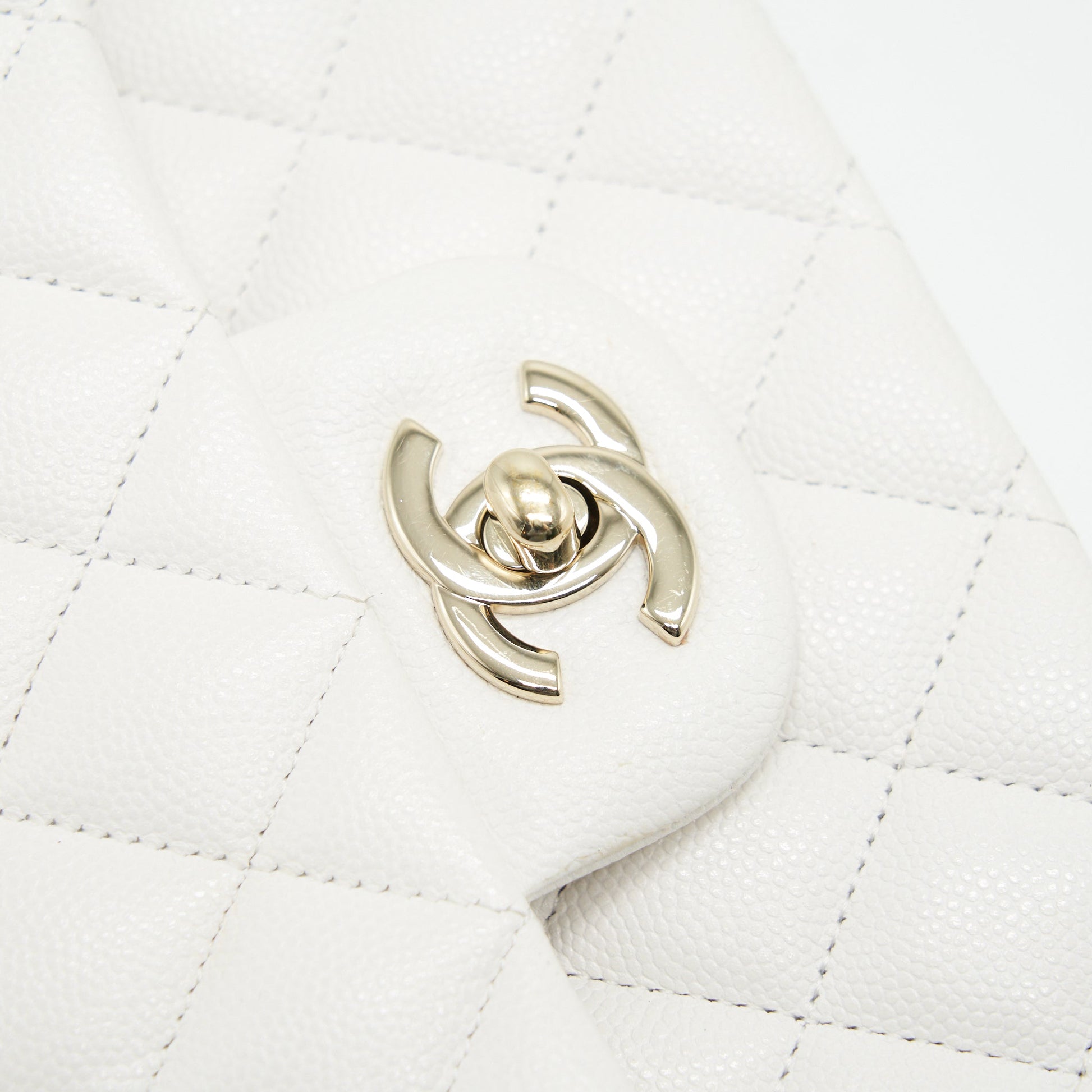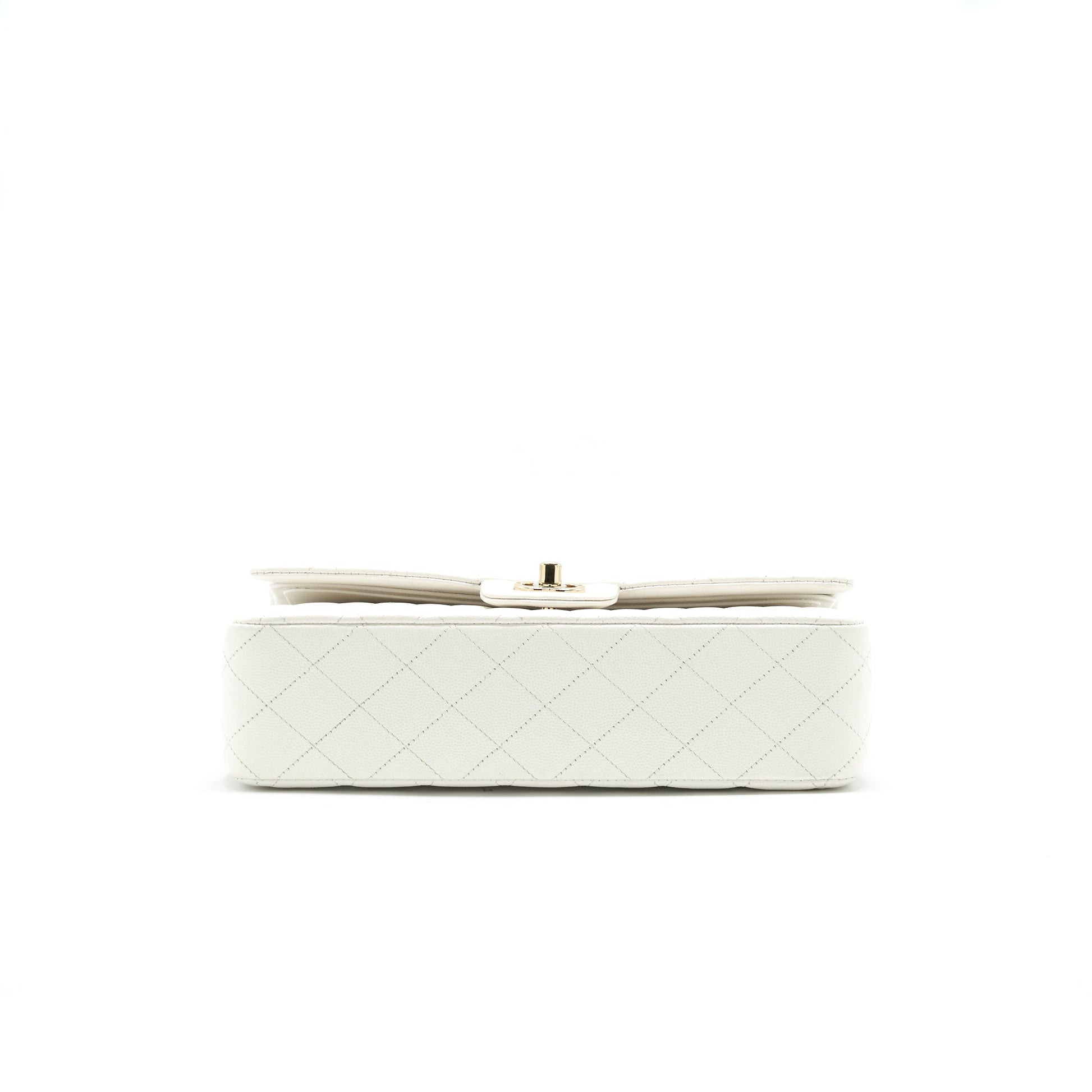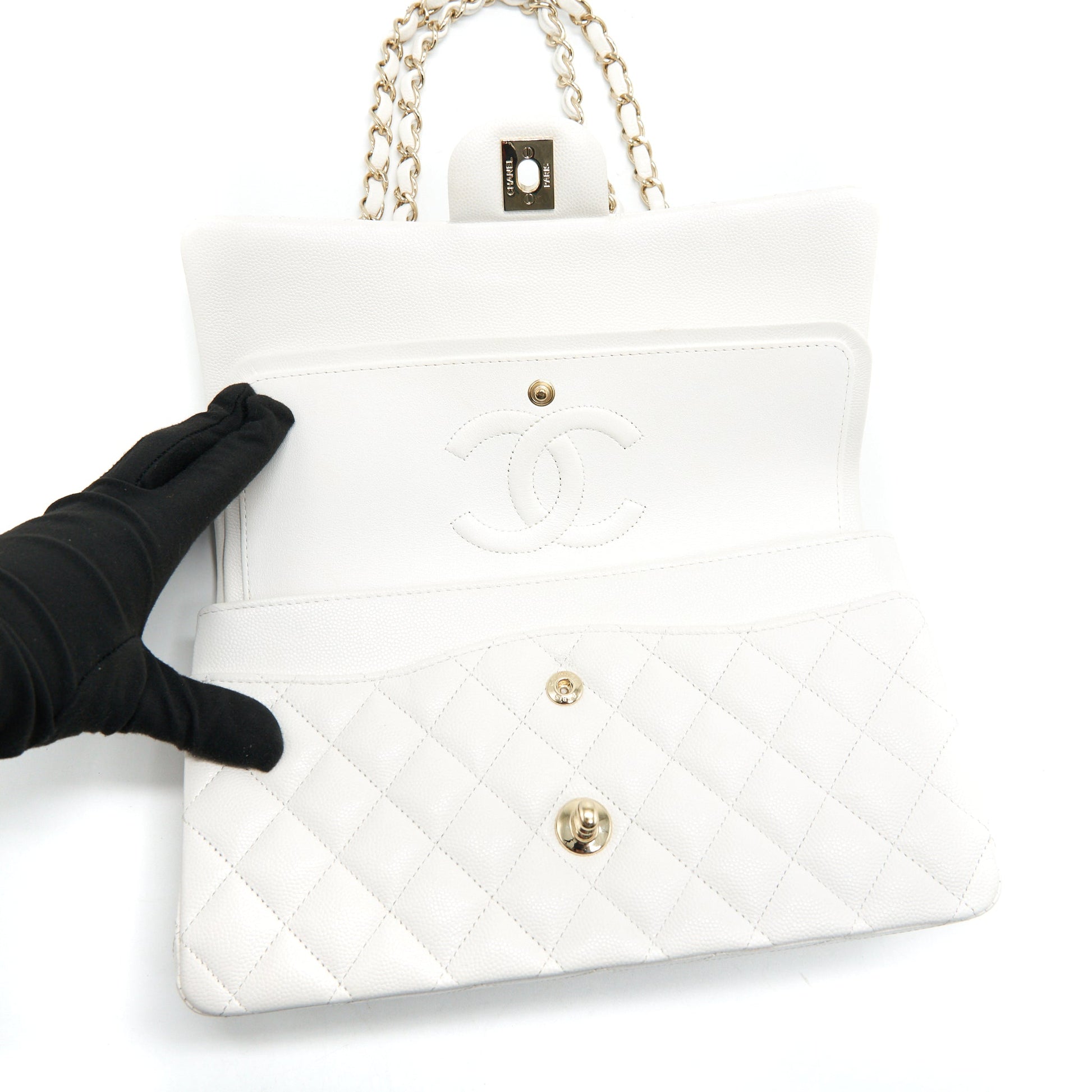 Chanel Medium Classic Double flap Bag Caviar White with LGHW