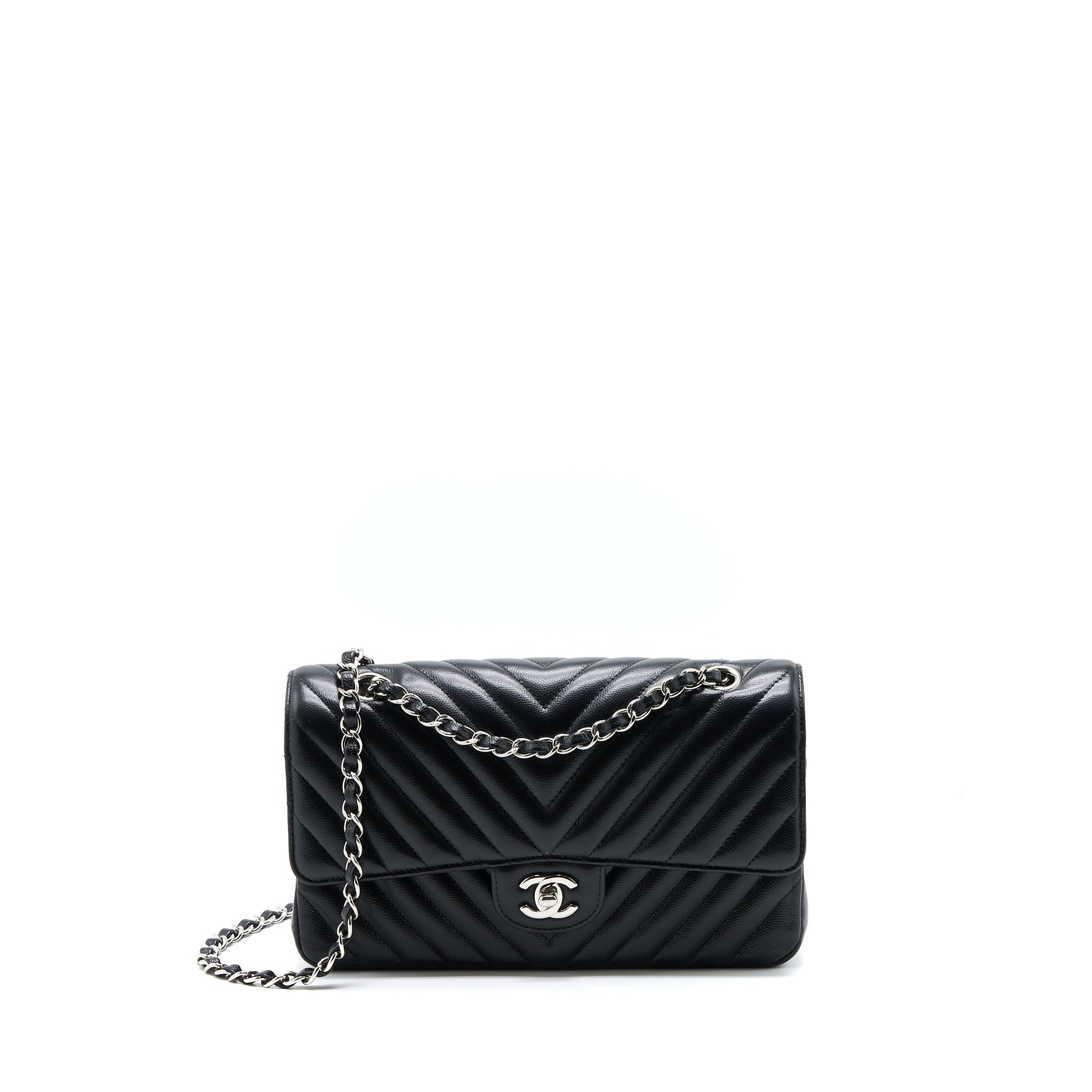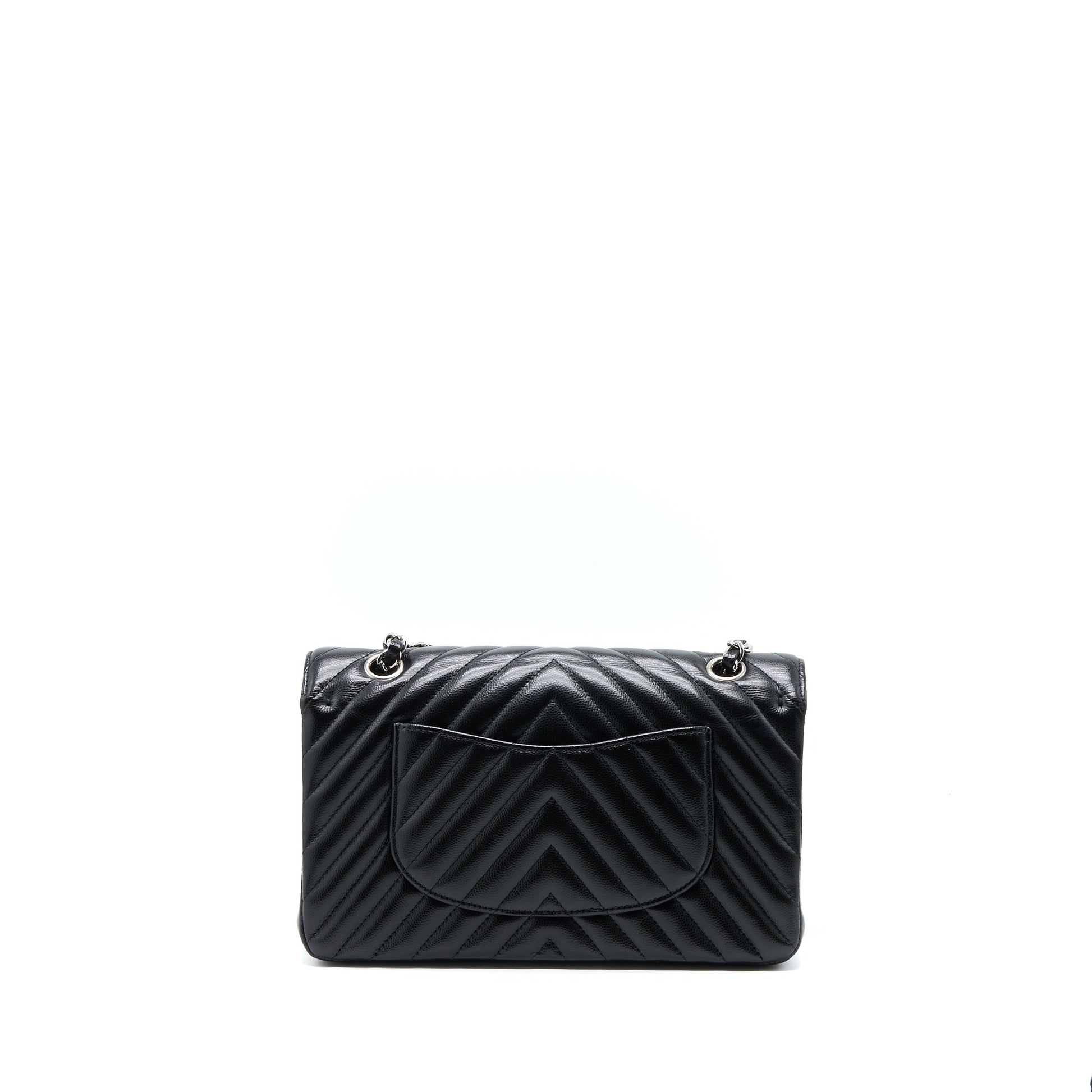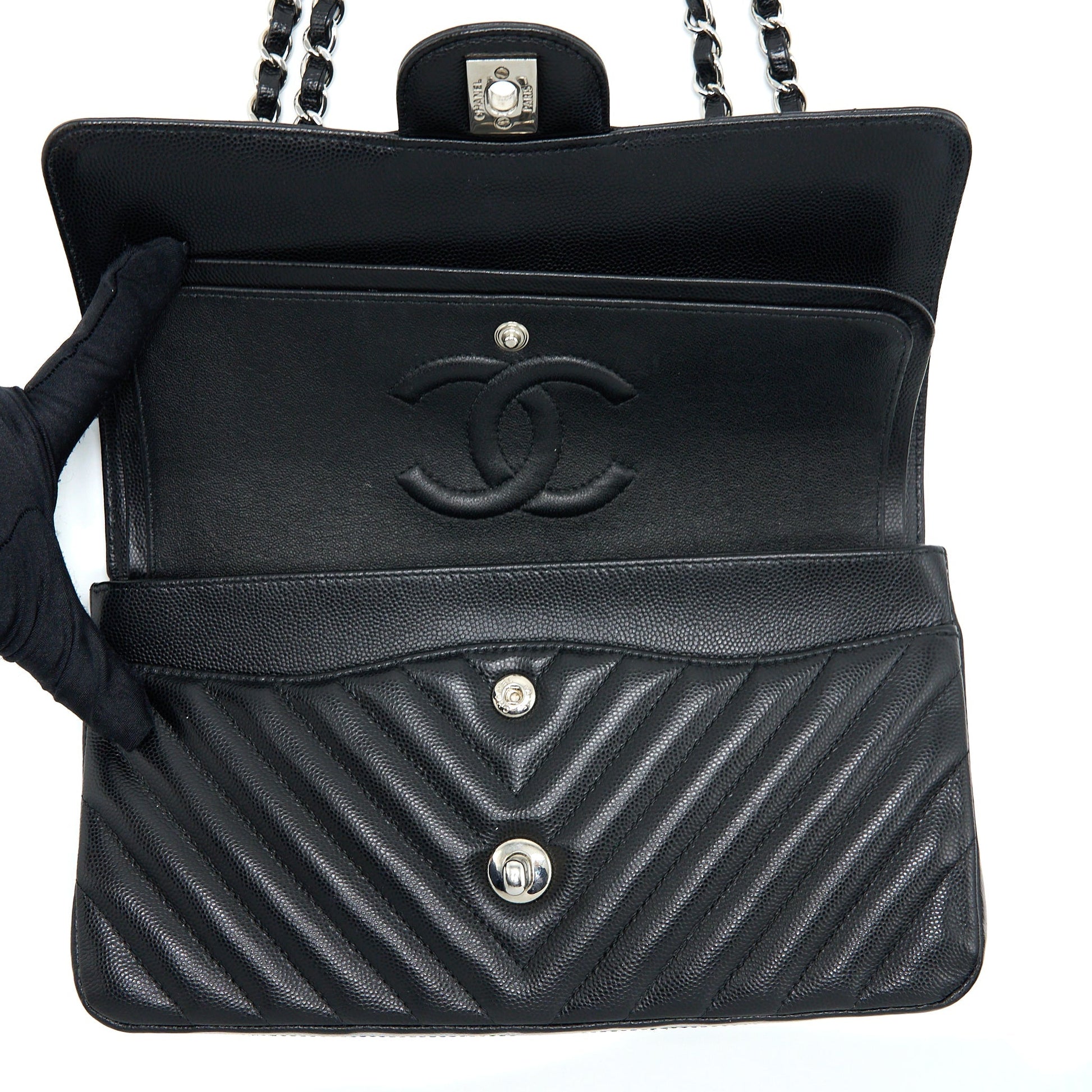 Chanel Medium Classic Double Flap Bag Chevron Caviar Black SHW