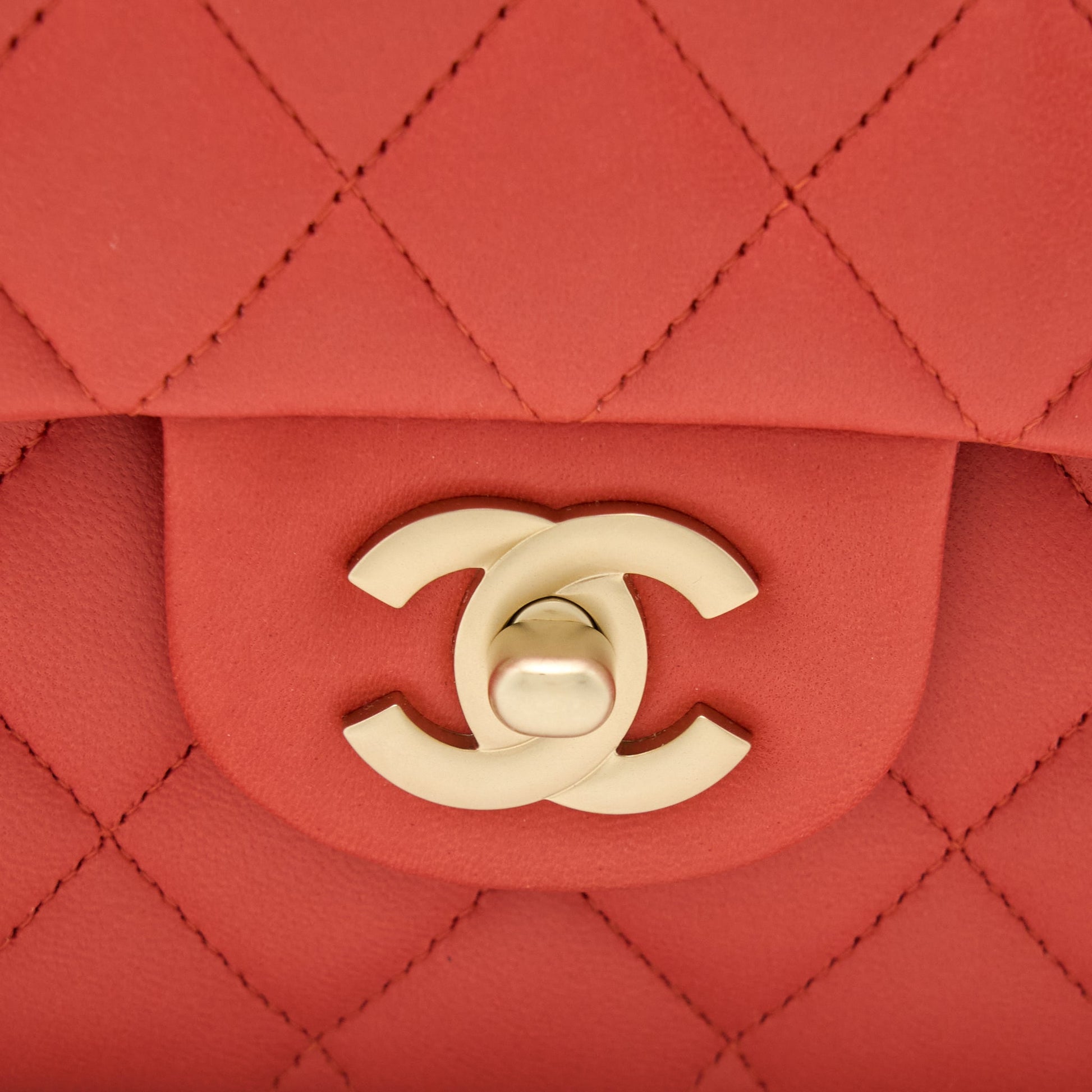 Chanel Medium Classic Double Flap Bag Lambskin Coral Brushed GHW