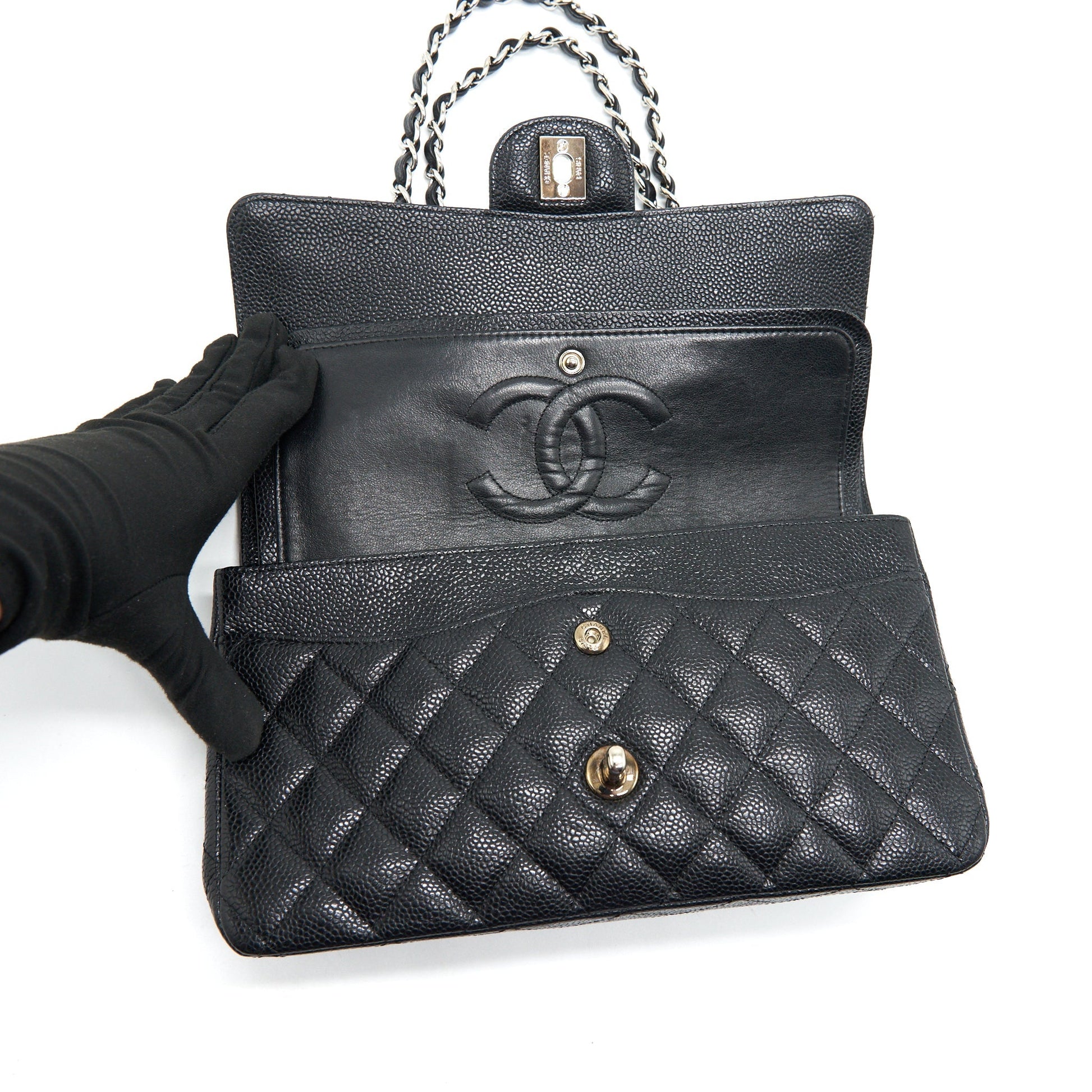 Chanel Medium Classic Double Flap Caviar Black SHW serial 12
