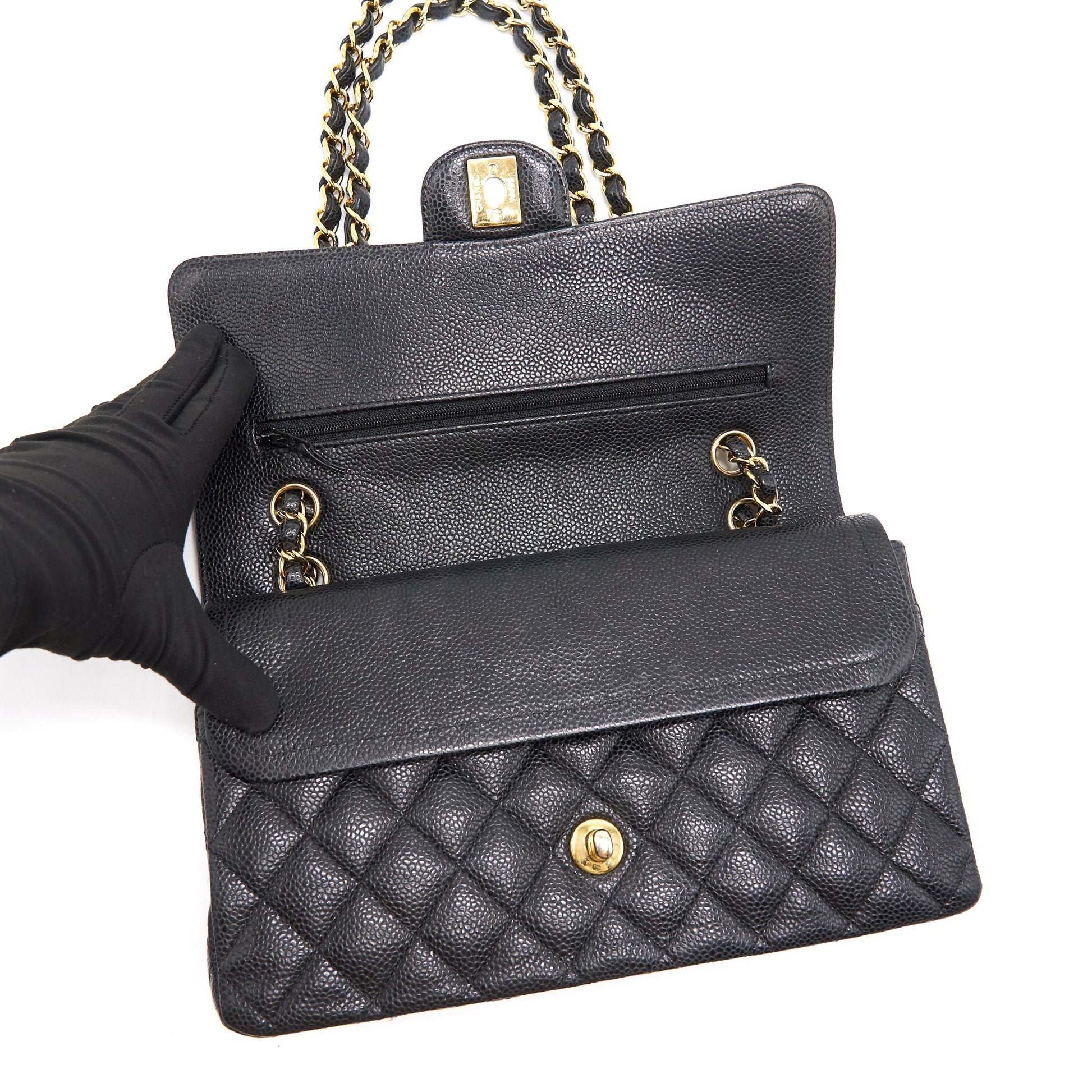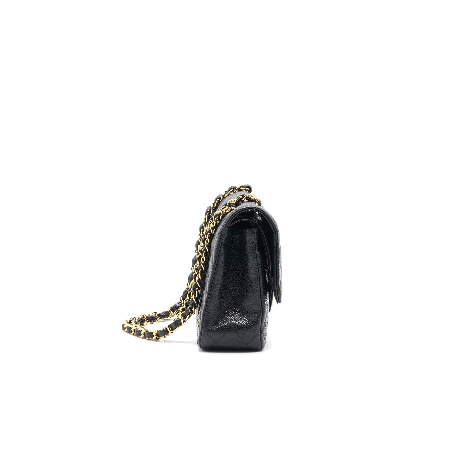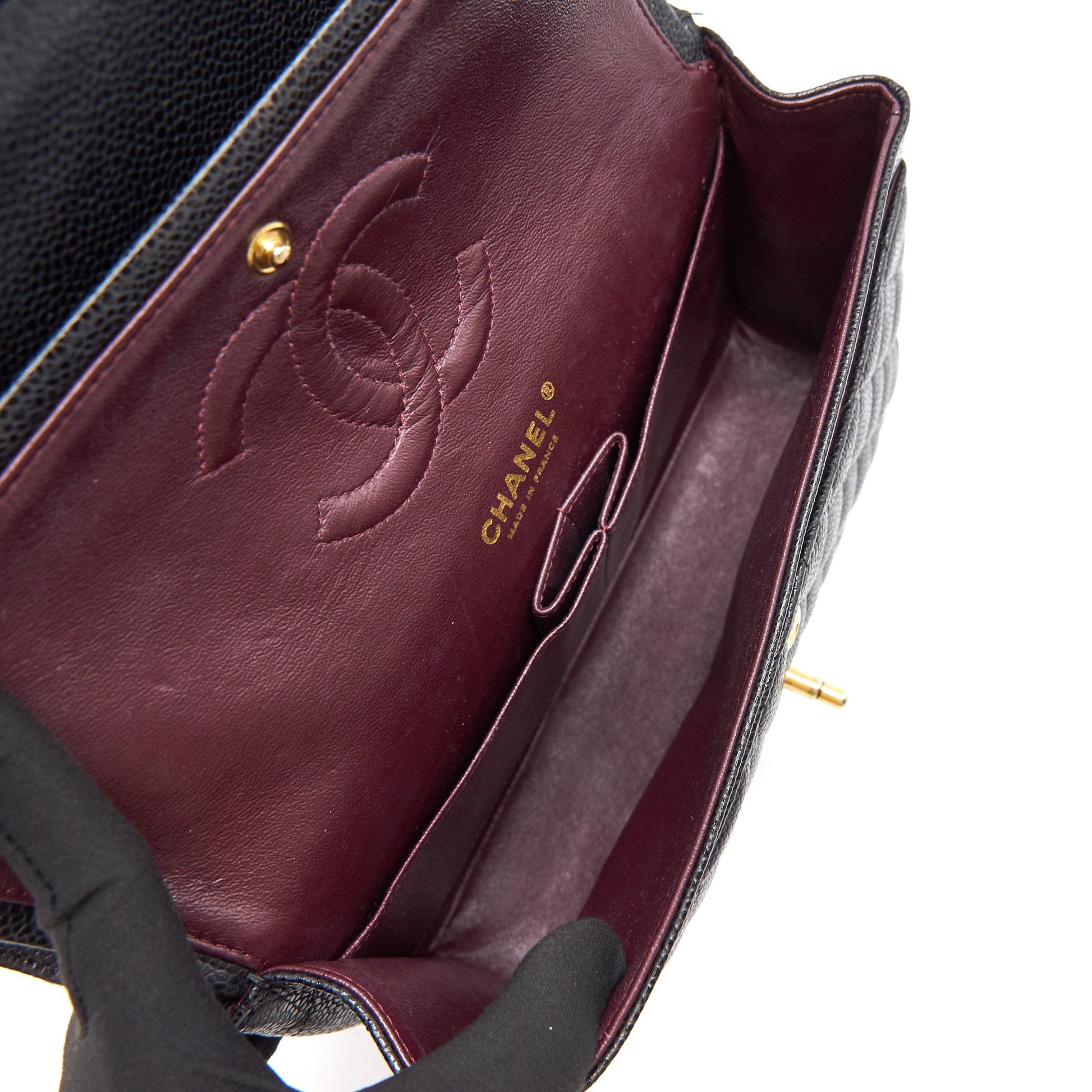 CHANEL MEDIUM CLASSIC DOUBLE FLAP CAVIER Black and gold