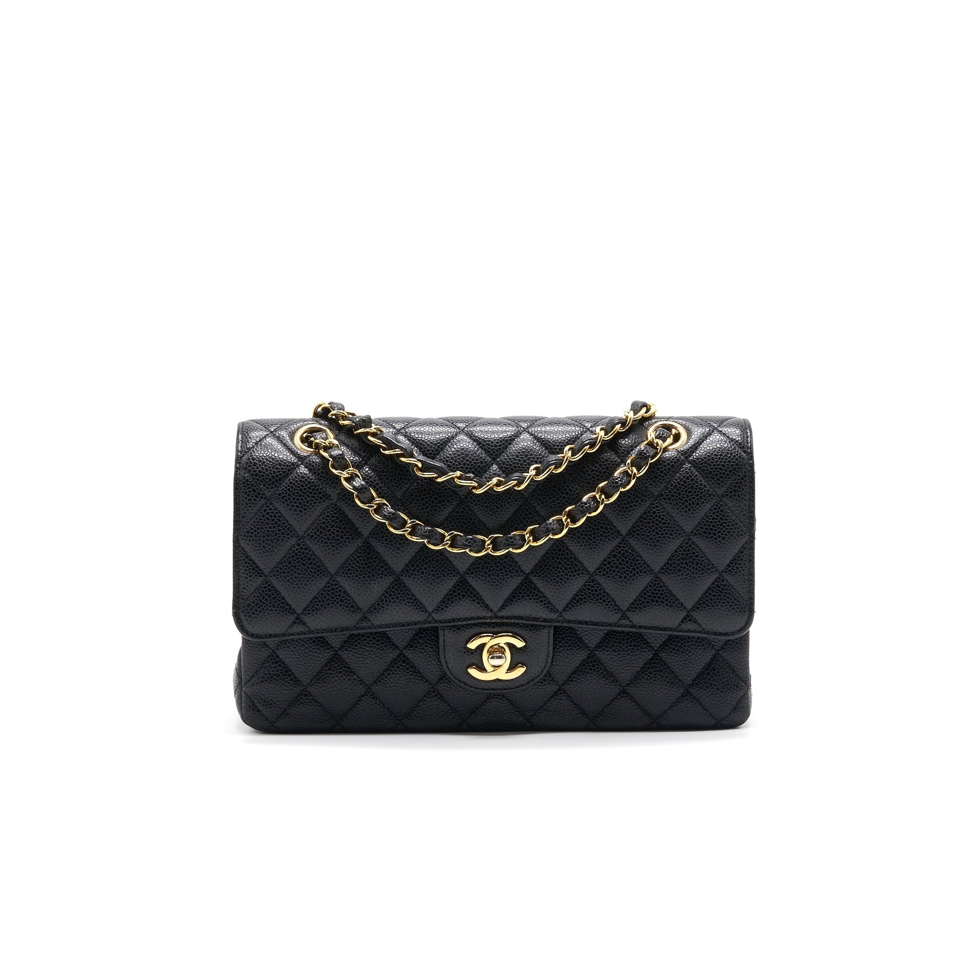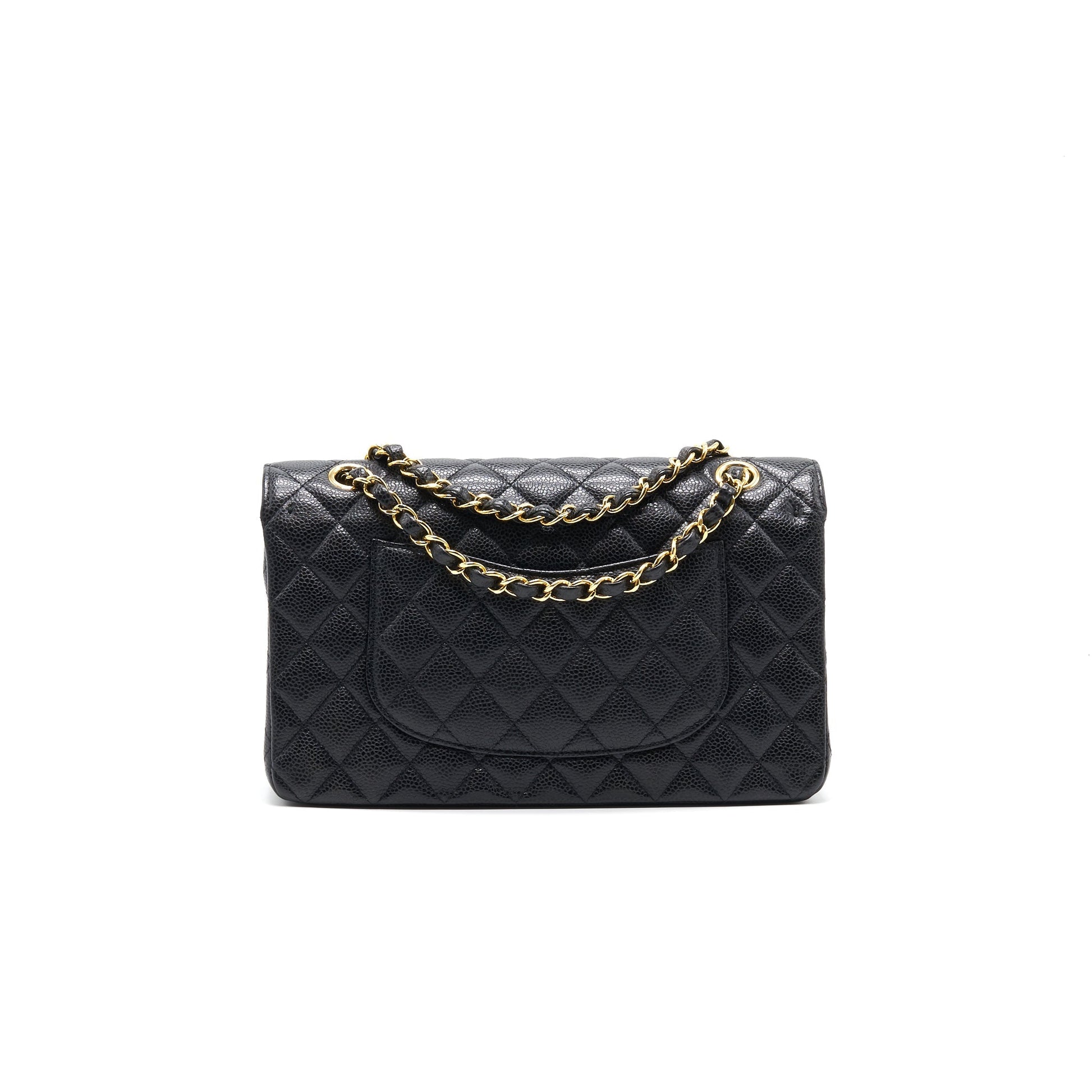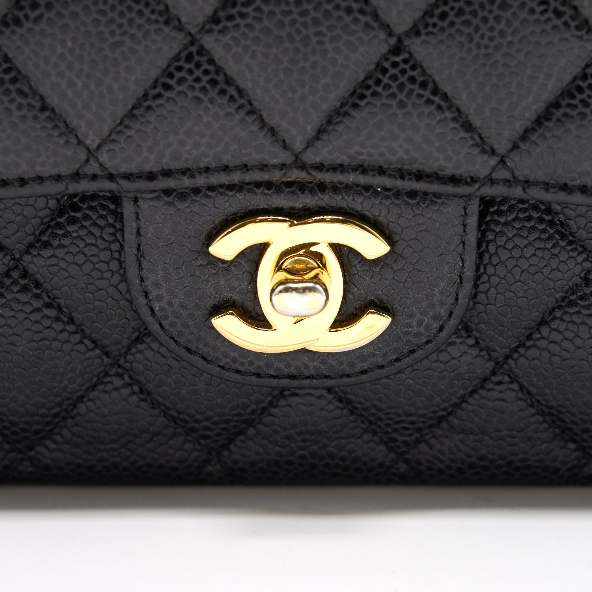 CHANEL MEDIUM CLASSIC DOUBLE FLAP CAVIER Black and gold