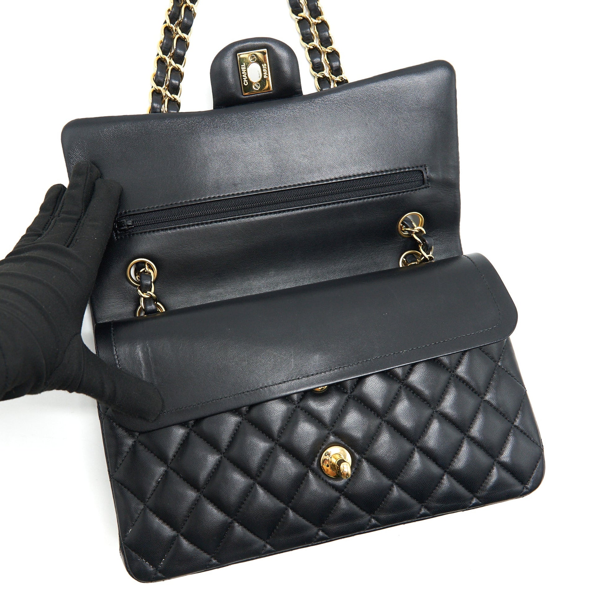 CHANEL MEDIUM CLASSIC DOUBLE FLAP LAMBSKIN BLACK GHW