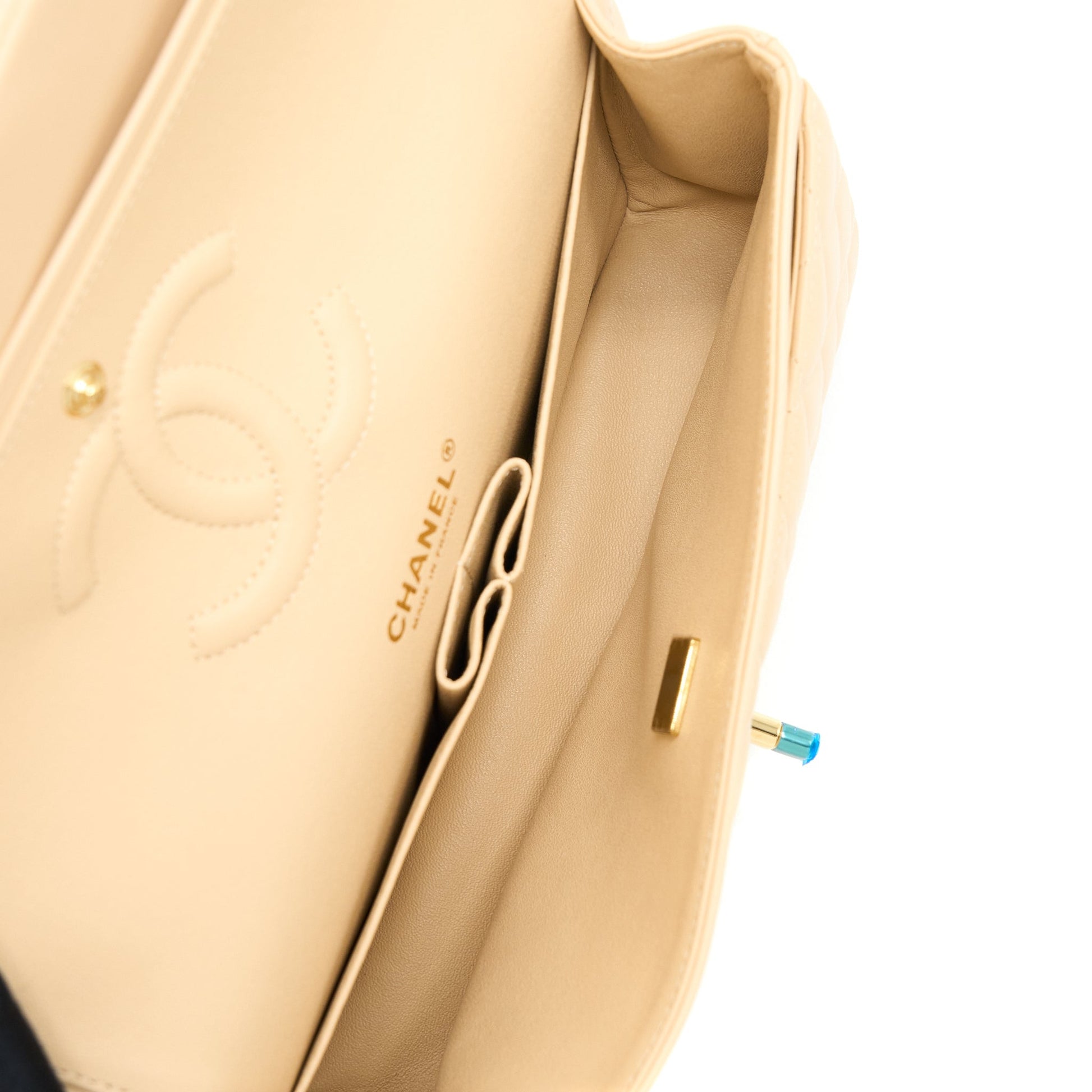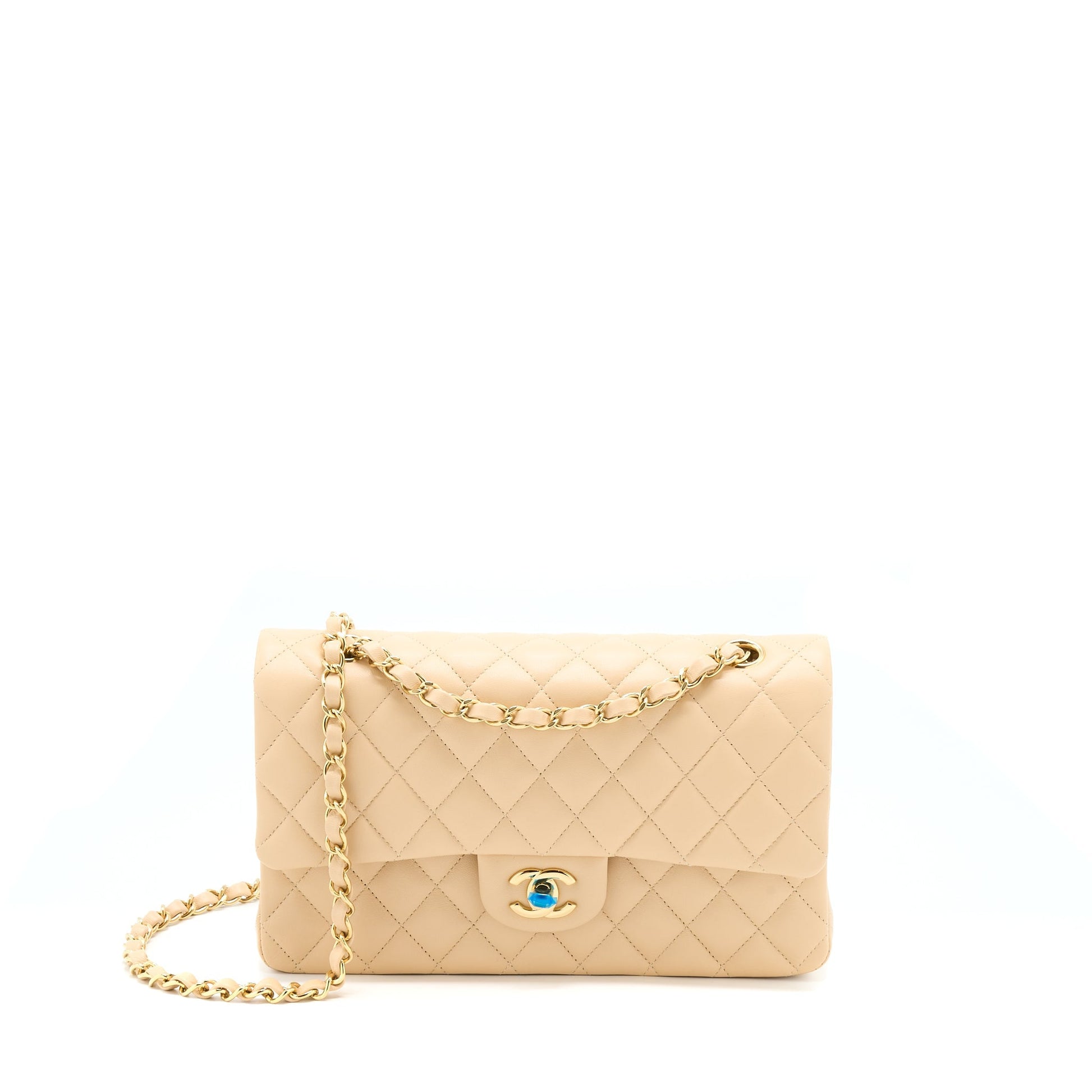 Chanel Medium Classic Flap Bag Lambskin Beige LGHW (Microchip)
