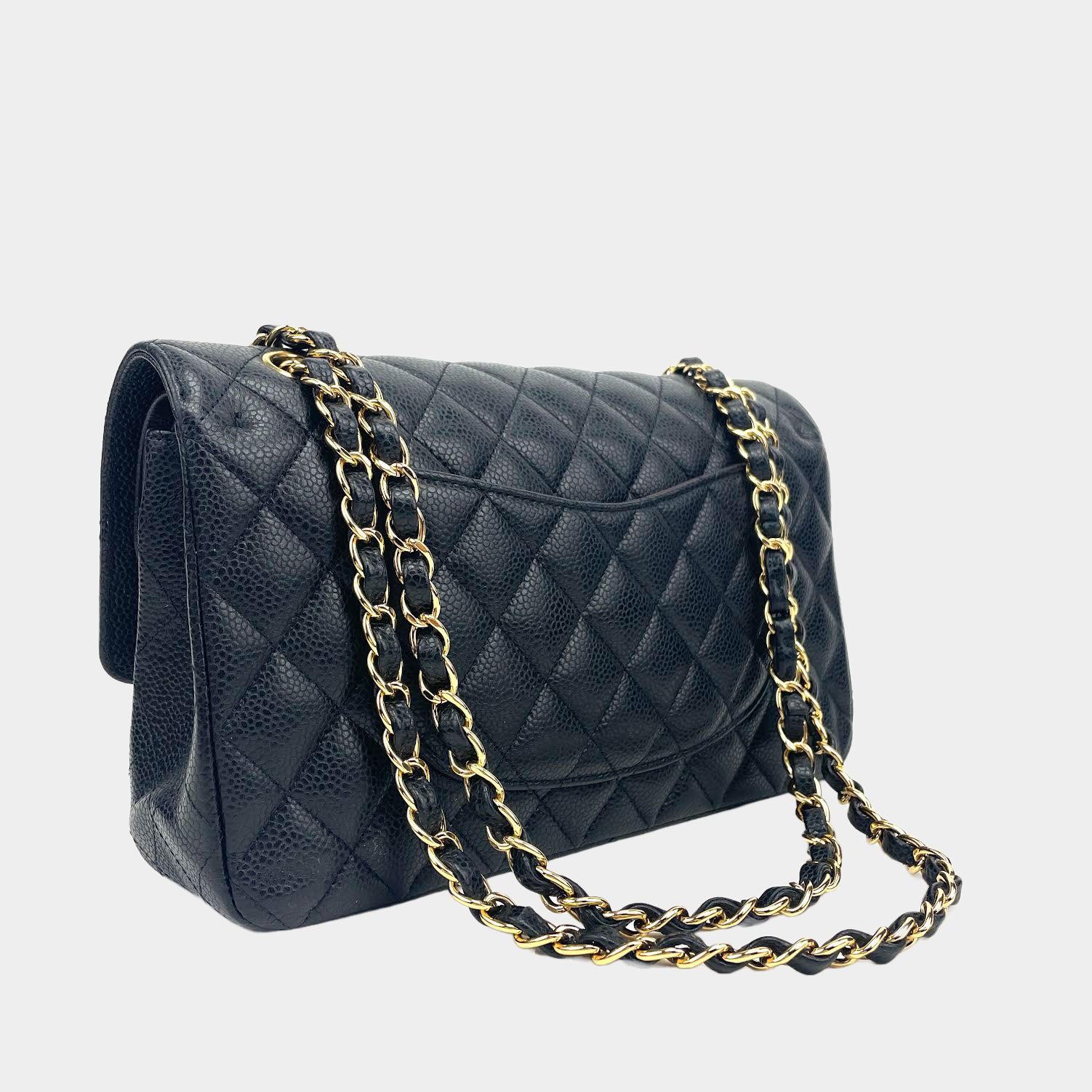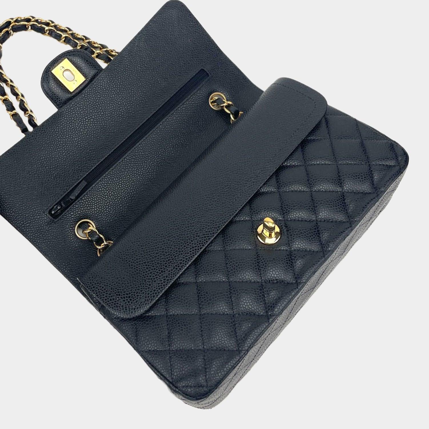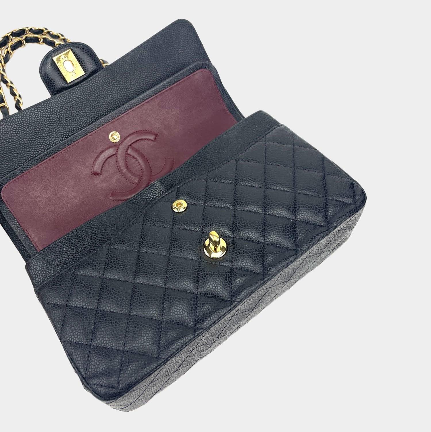 CHANEL Medium Double Flap Caviar Black w/Gold