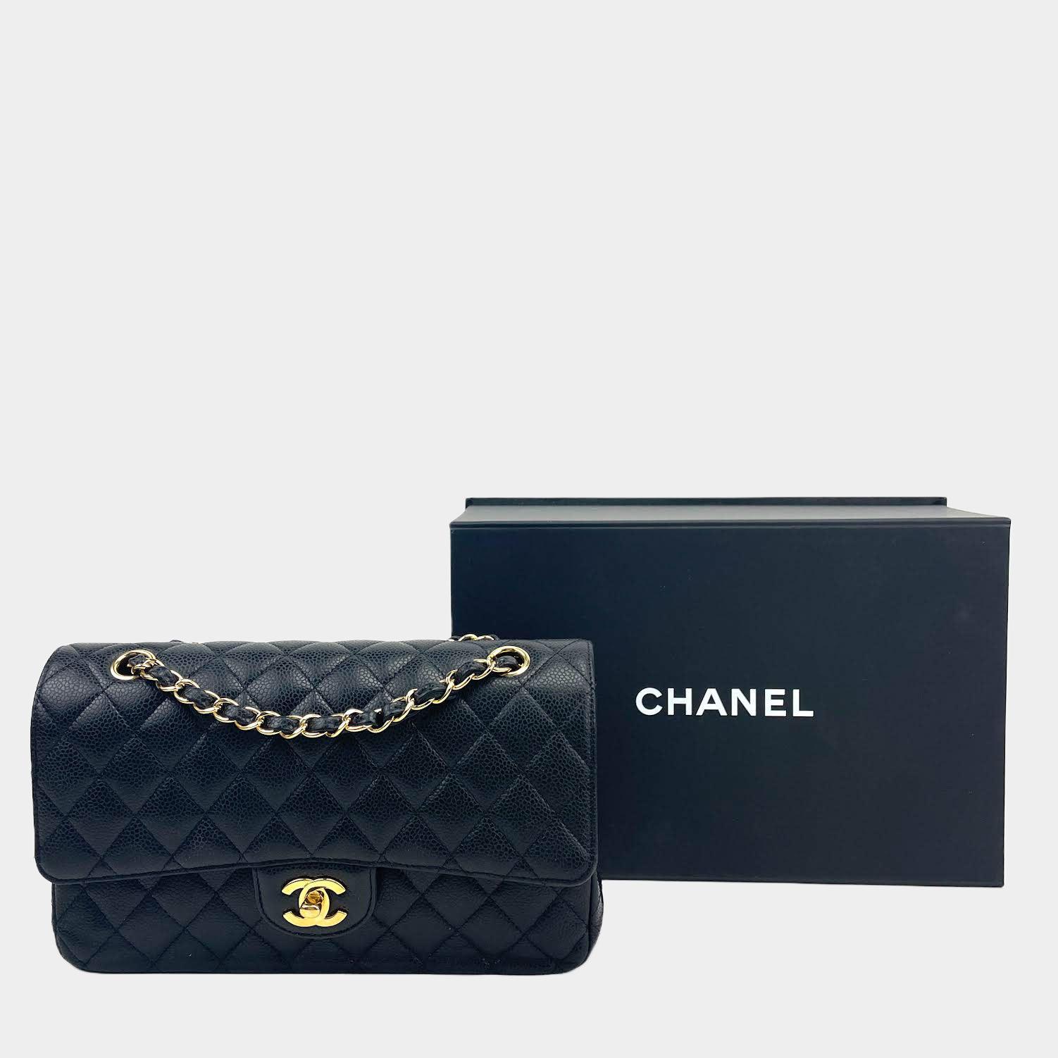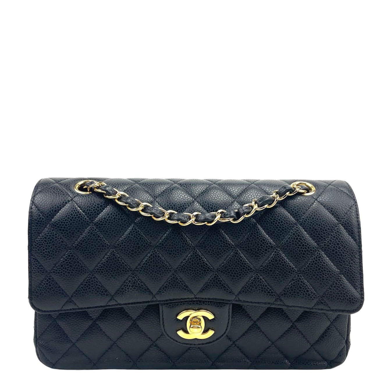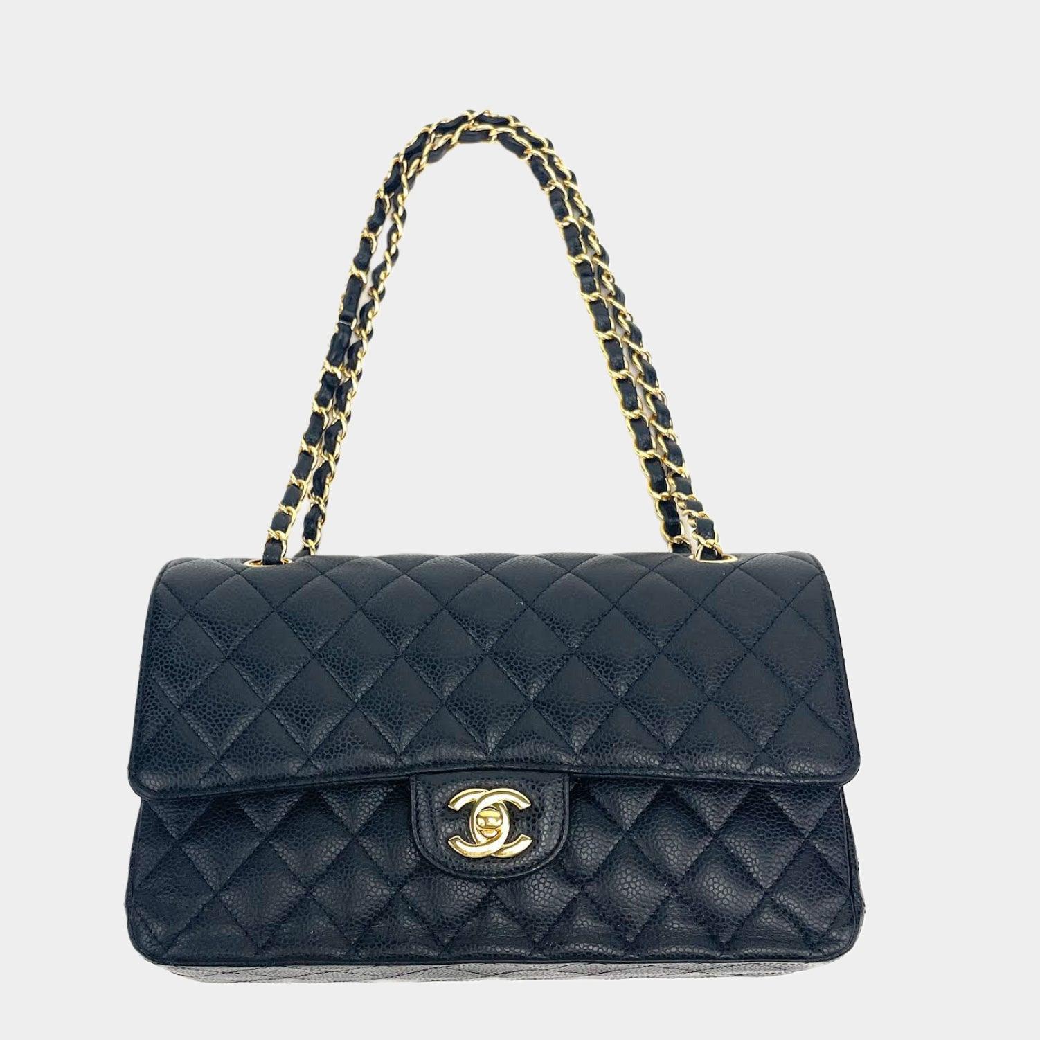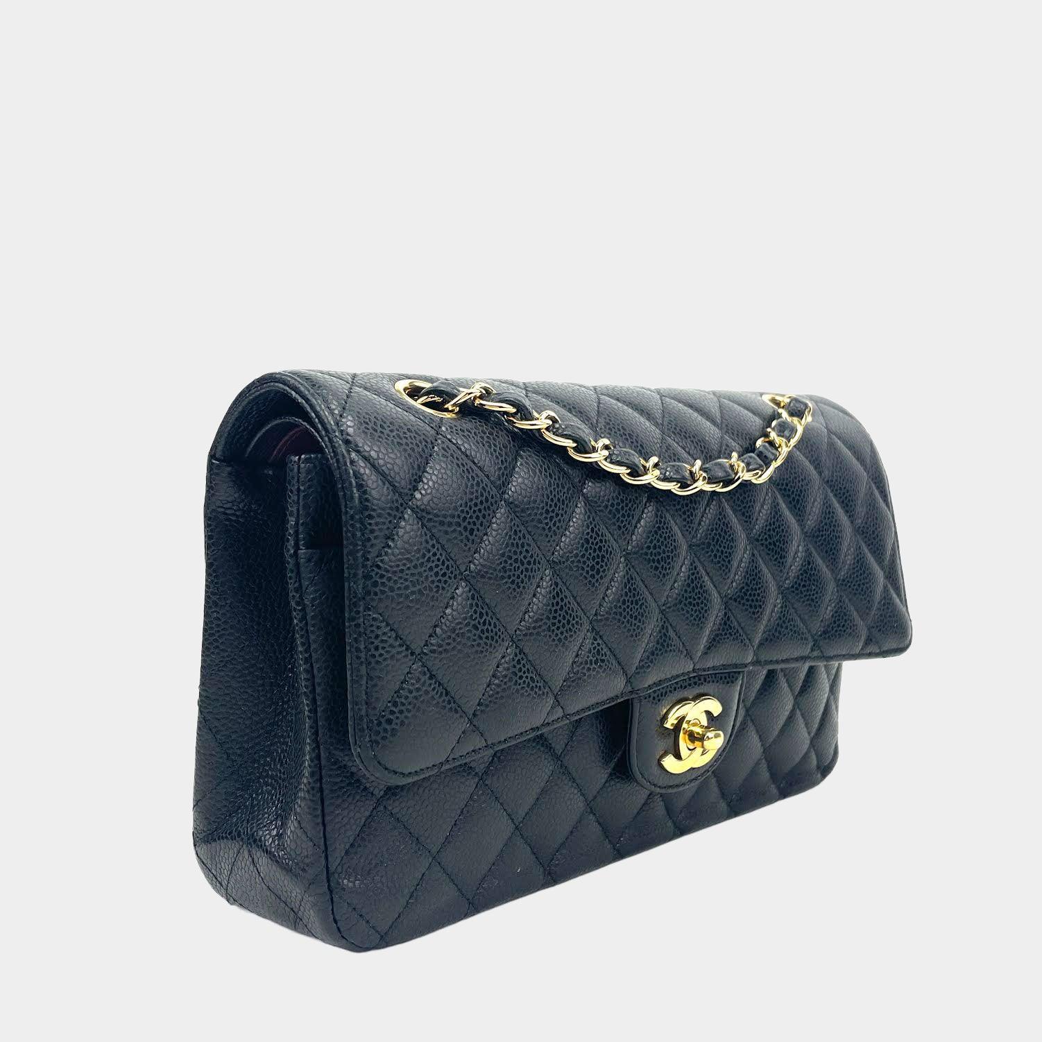CHANEL Medium Double Flap Caviar Black w/Gold