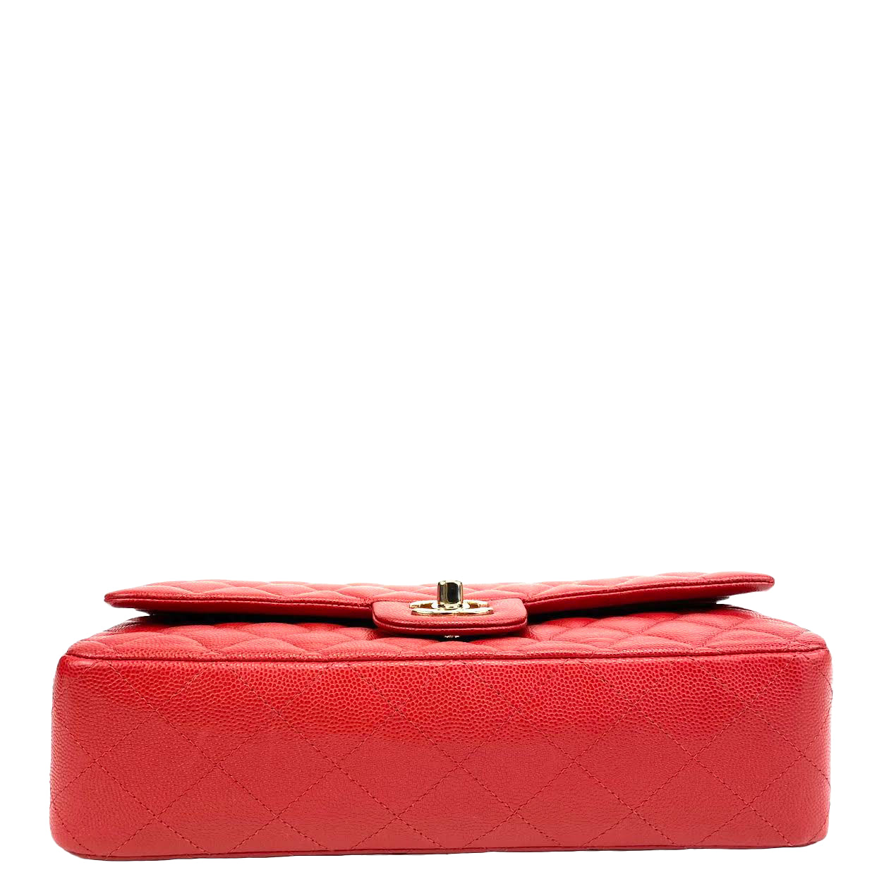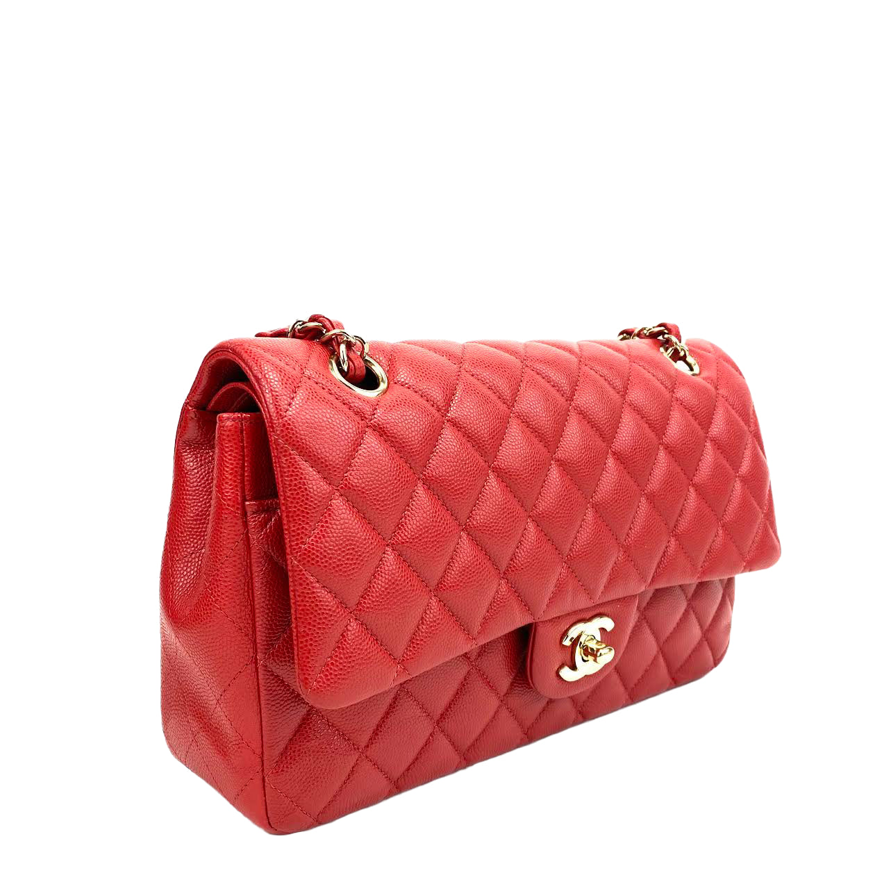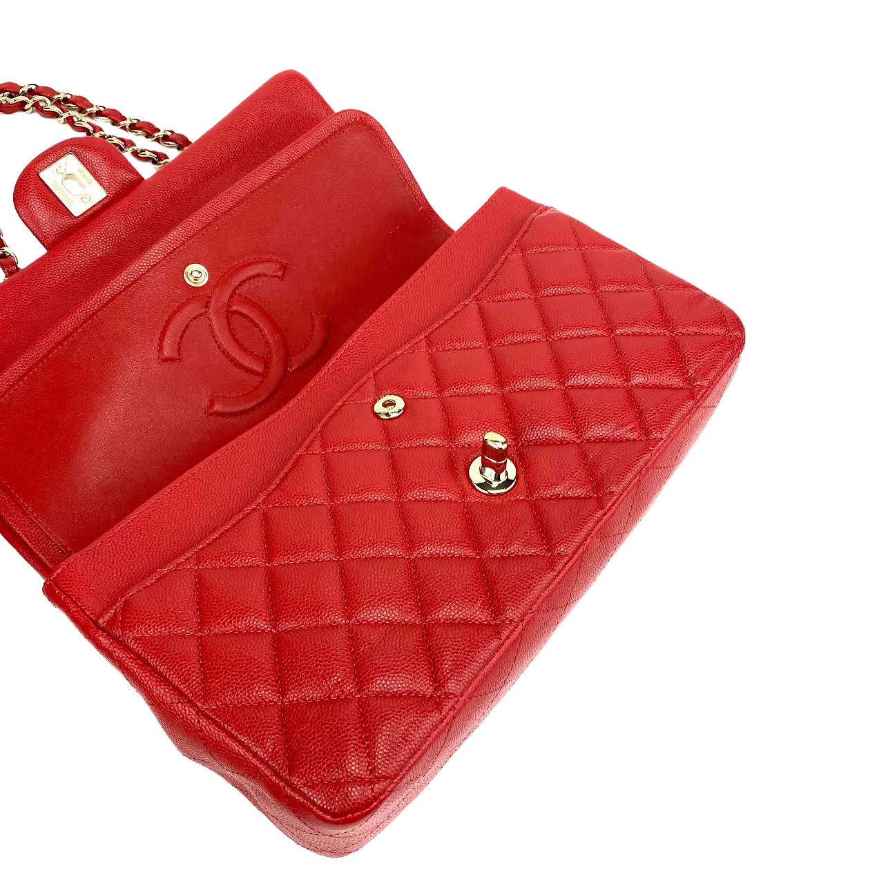 CHANEL Medium Double Flap Quilted Caviar w/gold - Red
