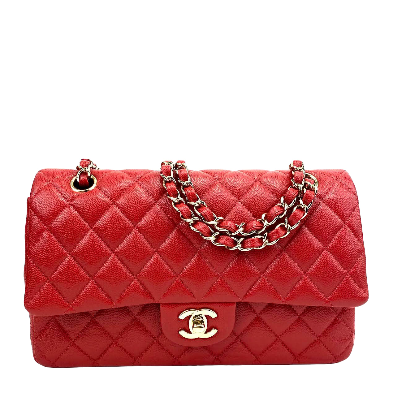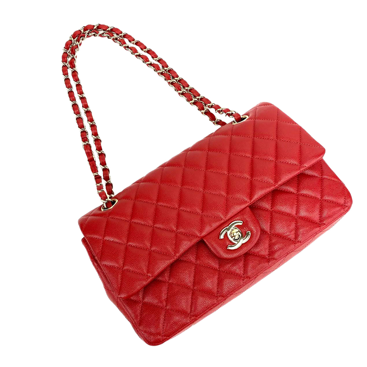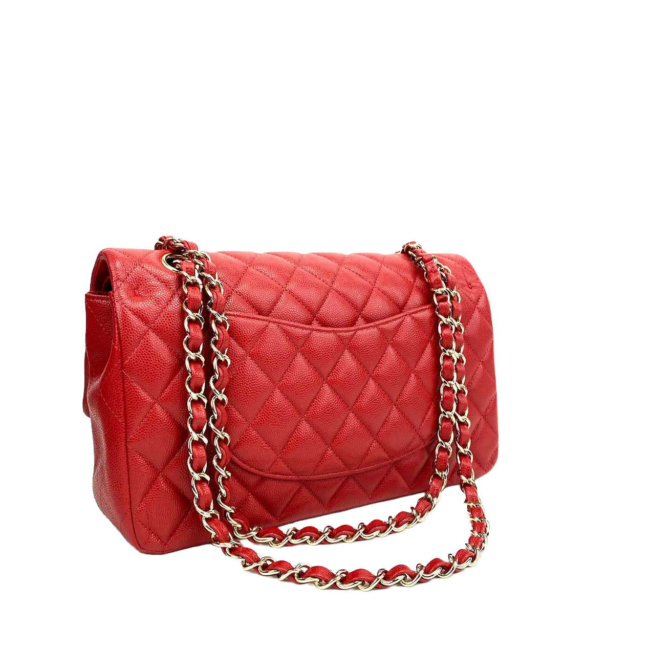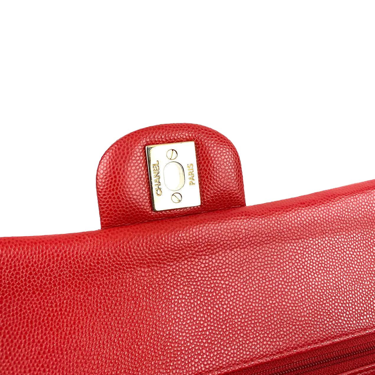 CHANEL Medium Double Flap Quilted Caviar w/gold - Red