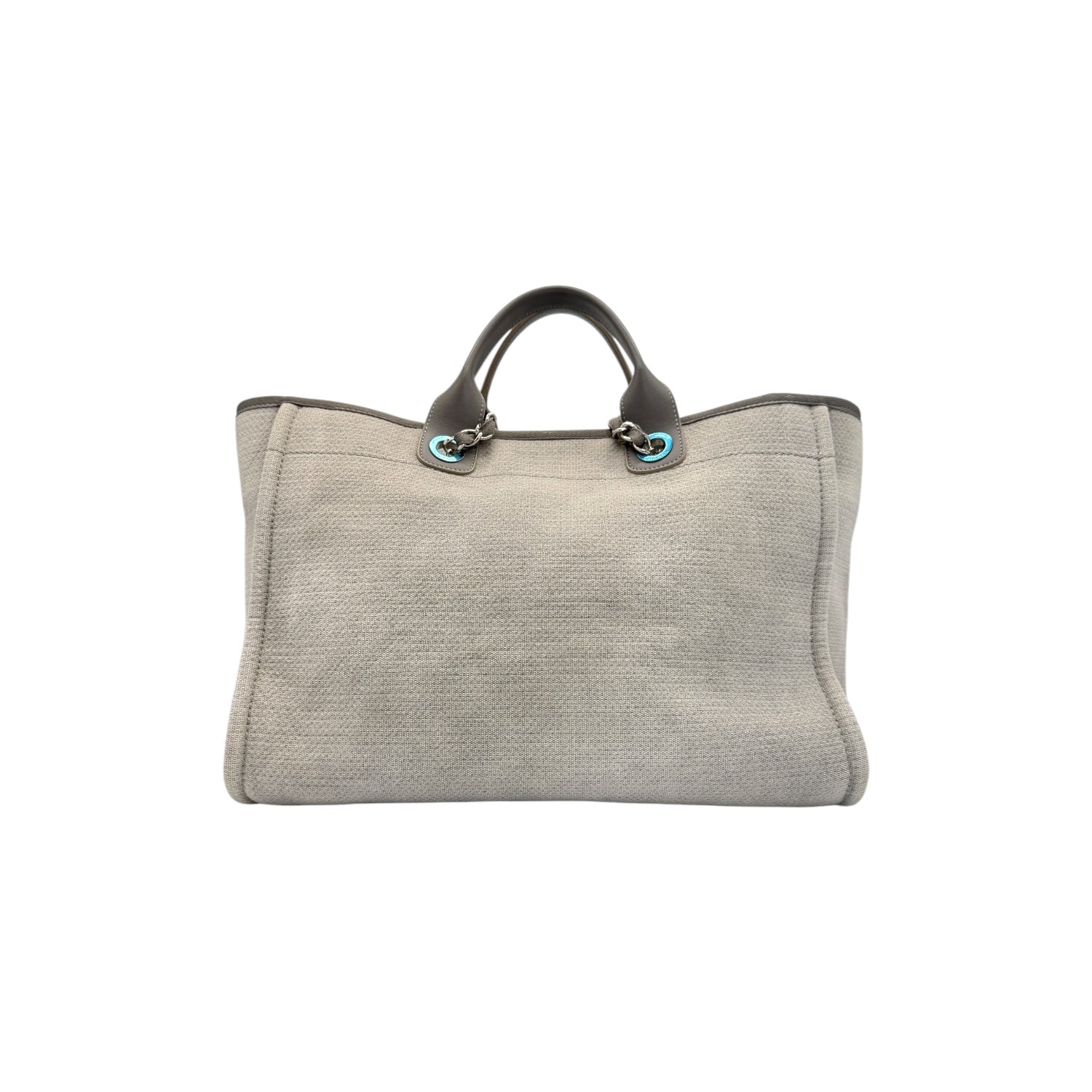 Discover the luxury and elegance of the Chanel Medium Grey Deauville Shopping Tote. Crafted from durable canvas and featuring silver-tone hardware, this designer tote is a statement piece that combines style with functionality. With spacious interior pockets and dual leather handles, it offers convenience and sophistication for the modern woman. Own a piece from the Cruise 2022 Collection and elevate your wardrobe today! 3,500.