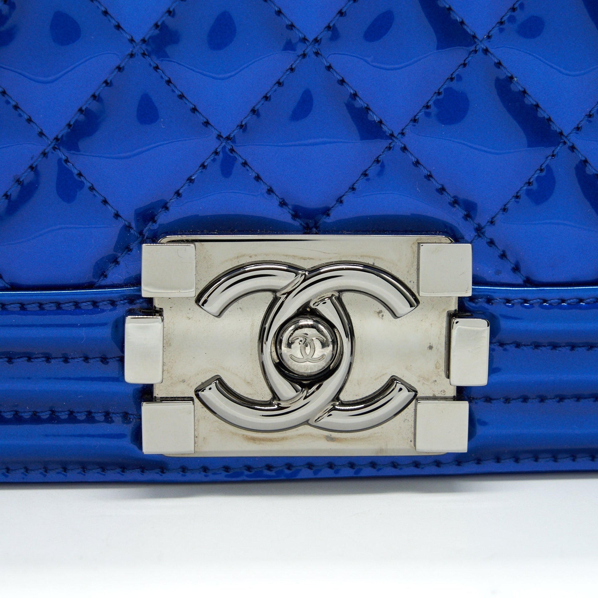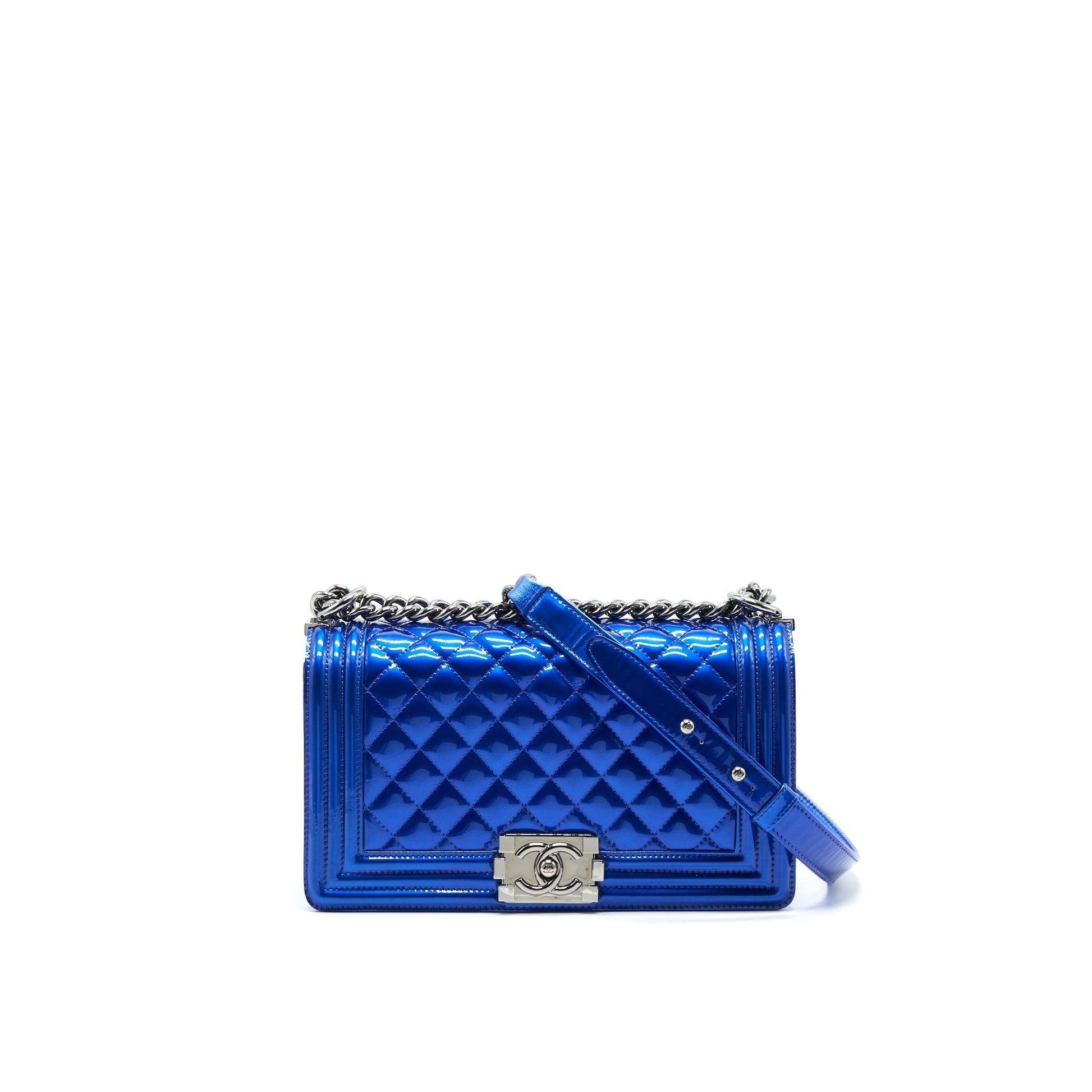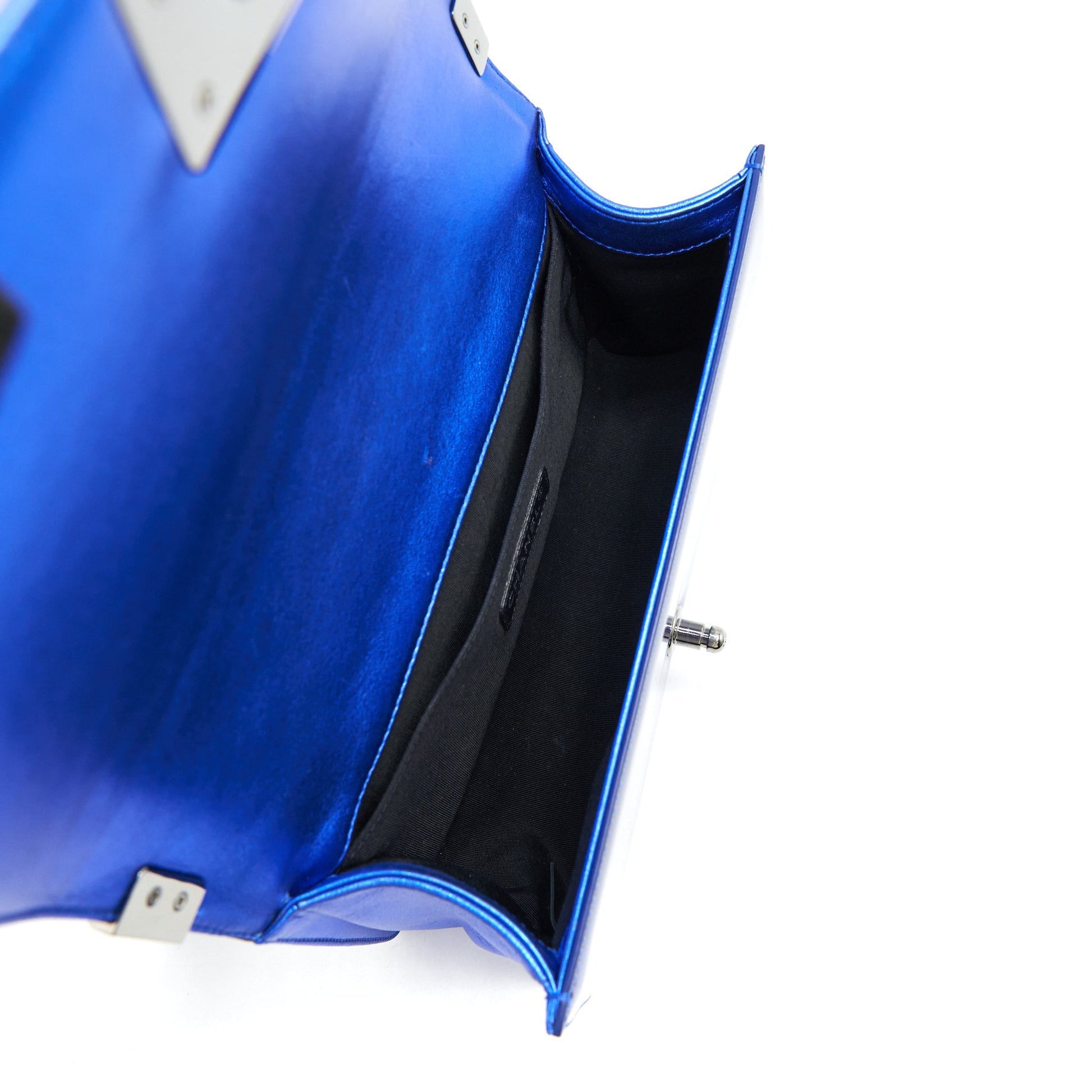 CHANEL MEDIUM LE BOY BAG IN METALLIC BLUE SHW