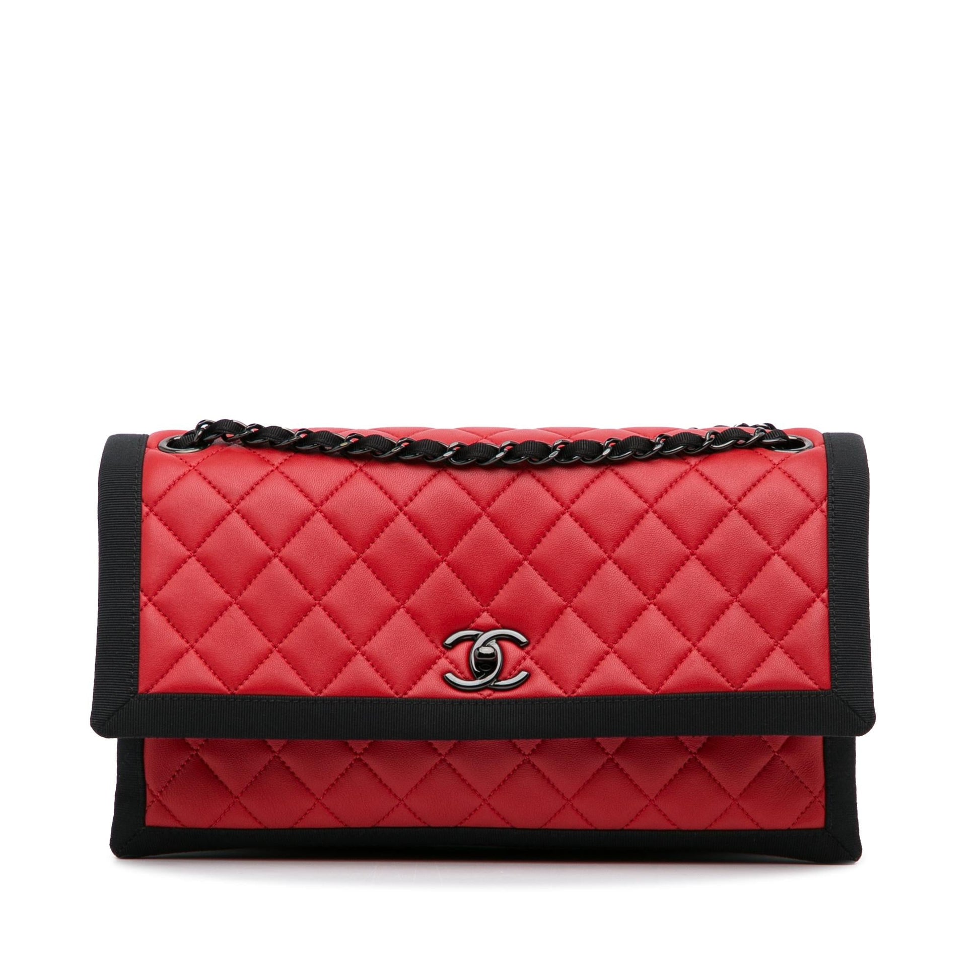 Chanel Medium Quilted Lambskin Grosgrain Two Tone Flap Bag (SHG-Il4DRA)