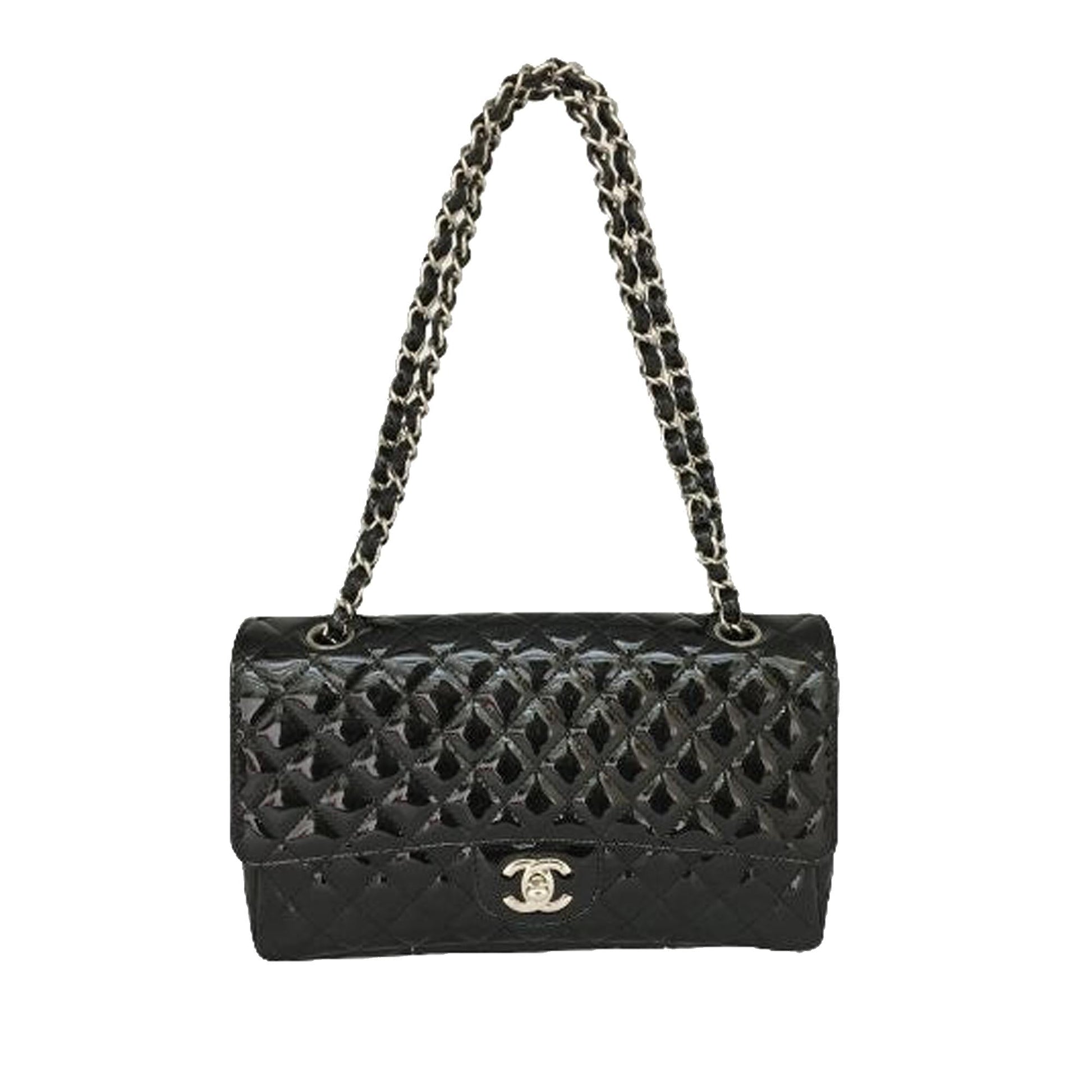 Chanel Medium Secret Label Patent Leather Flap Bag (SHG-34789)