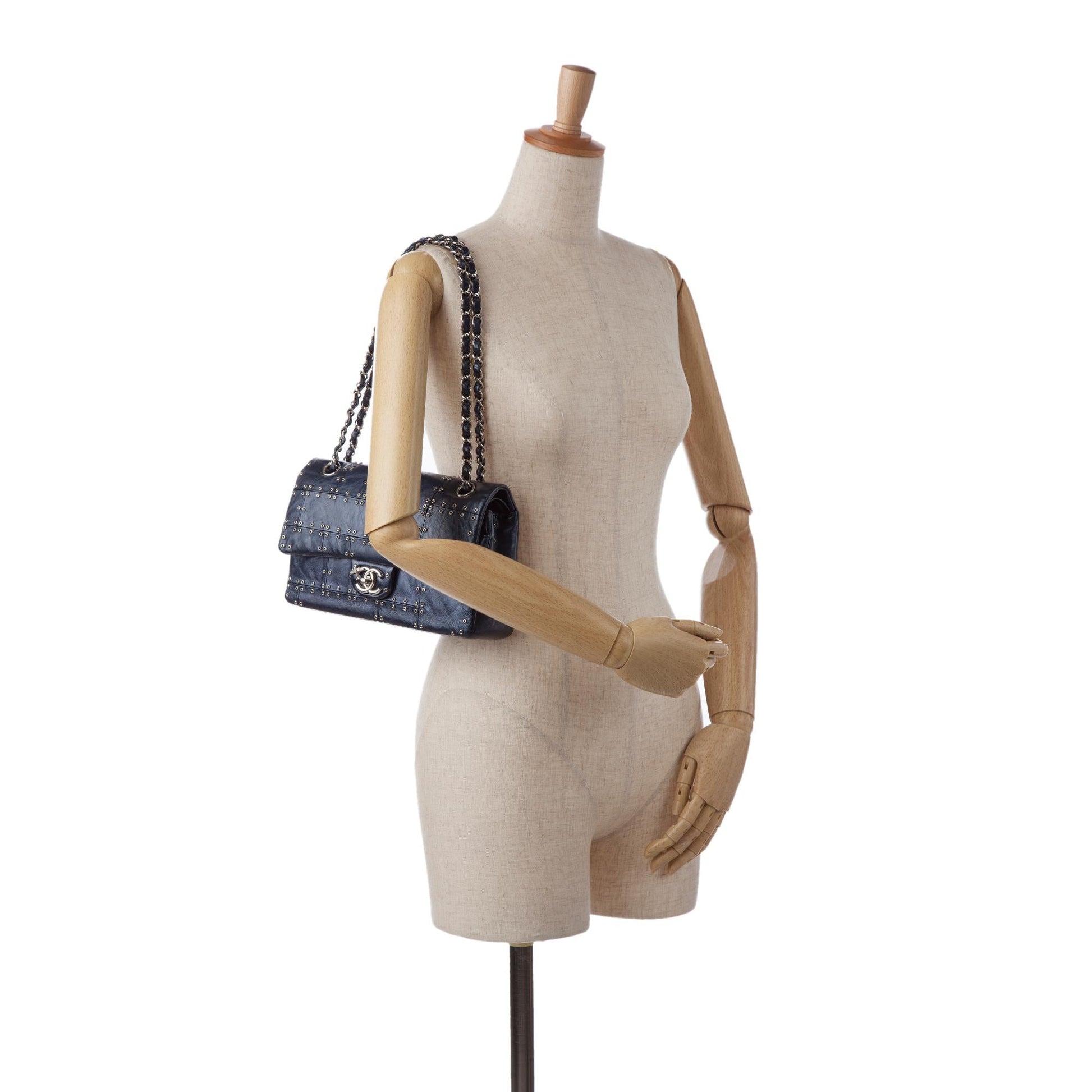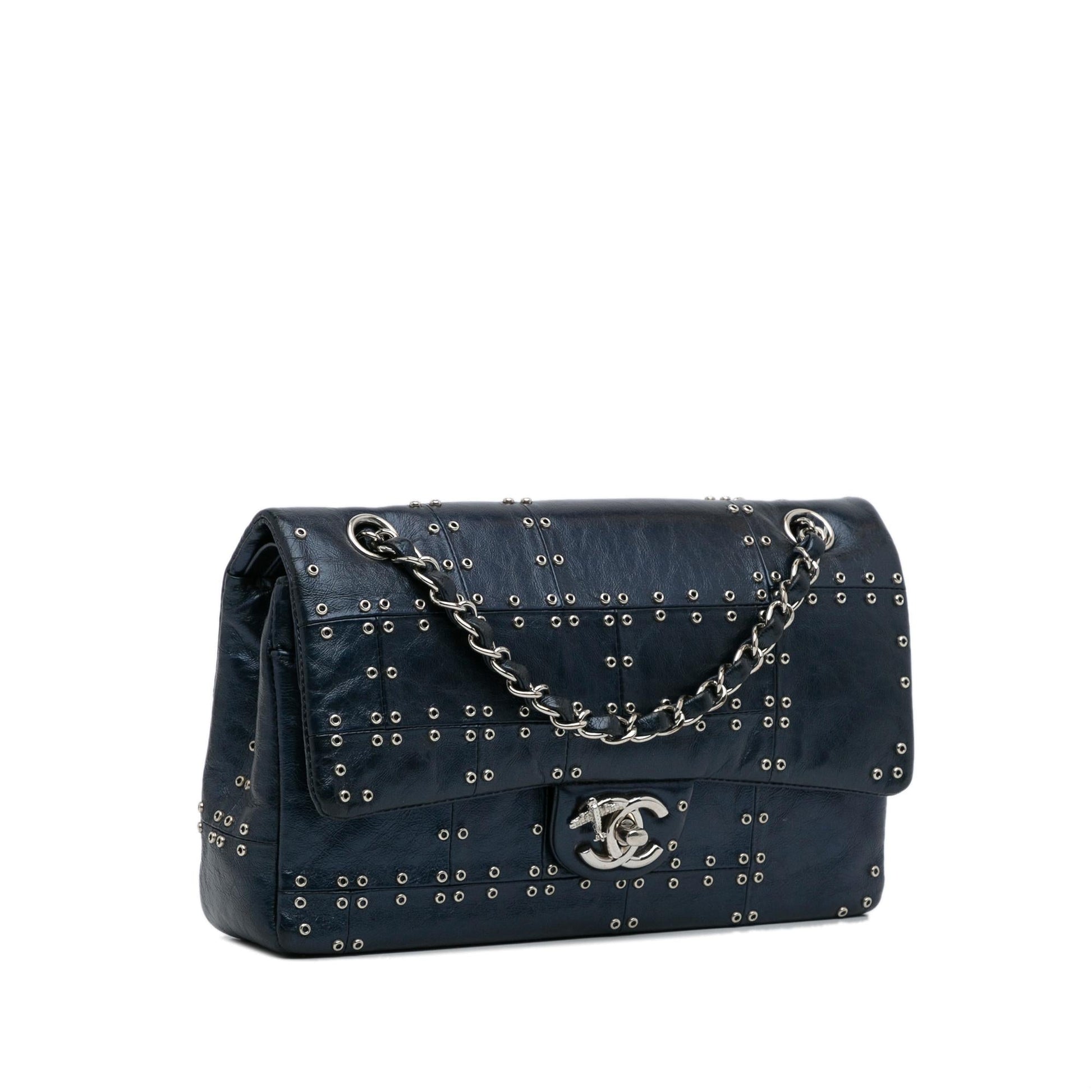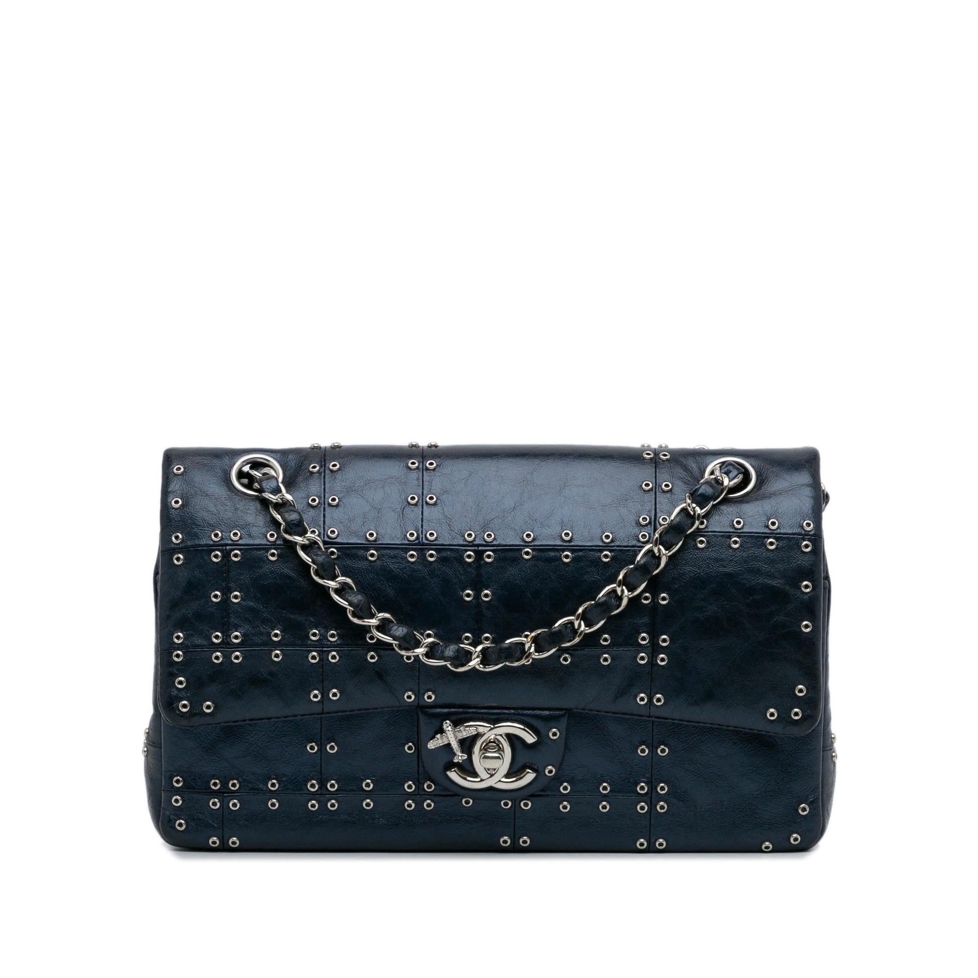 Chanel Medium Studded Leather Airlines Double Flap (SHG-MHpqyU)