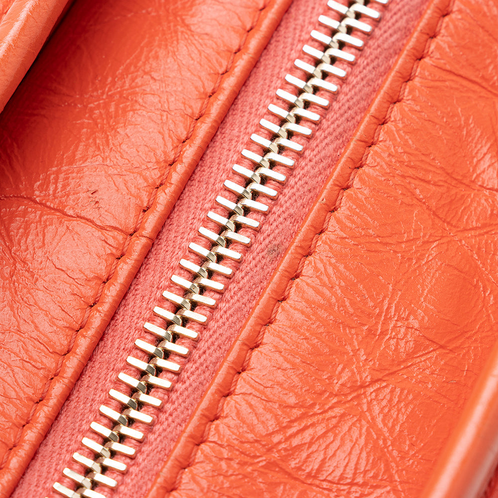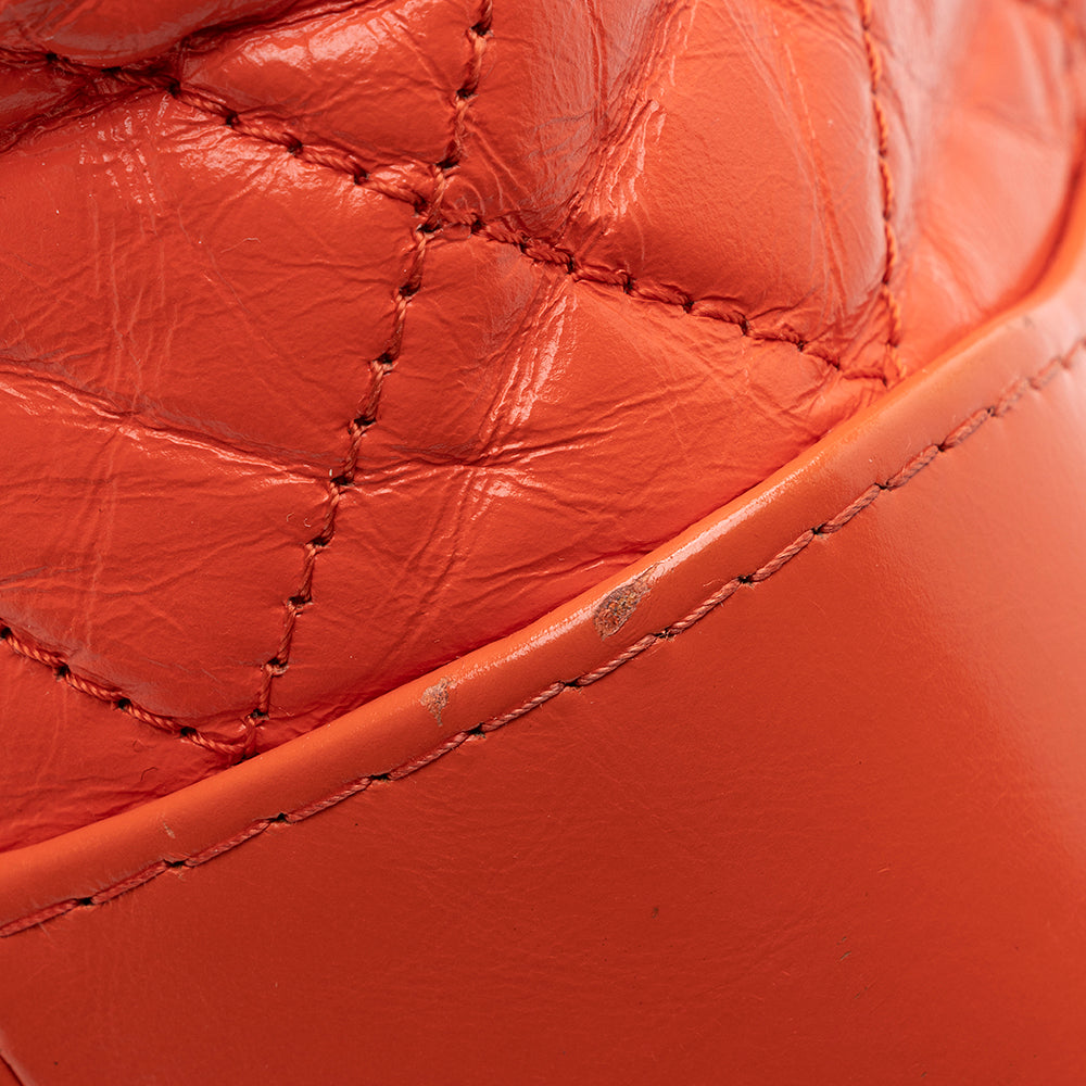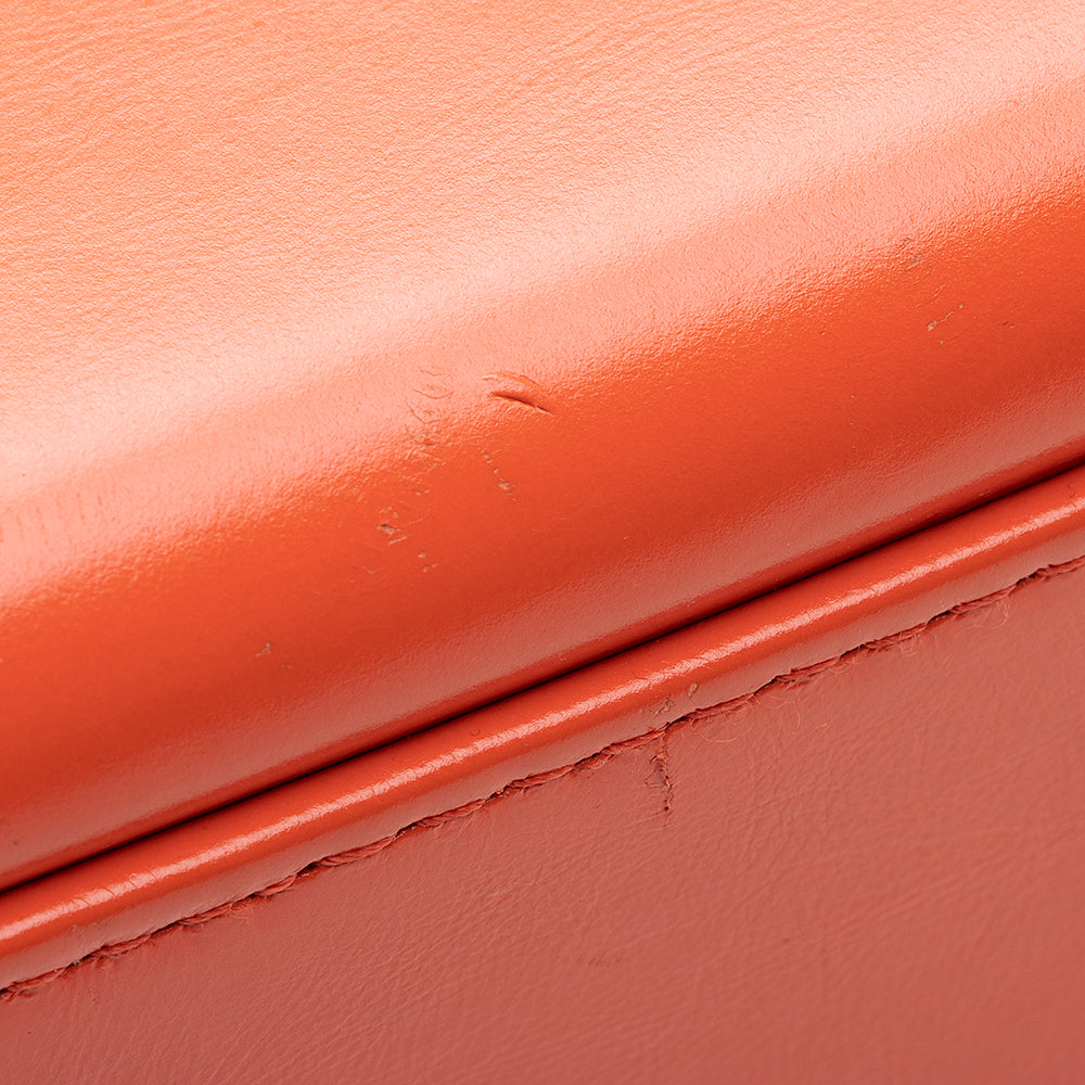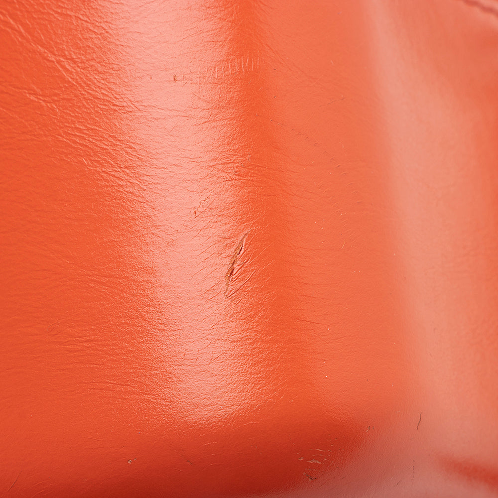Condition Notes: Light scuffs and marks throughout exterior. Visible scuffs to exterior bottom corners. Light wear to shoulder strap base casing. Light surface scratches to hardware. Marks and wear throughout interior. Perfume odor.