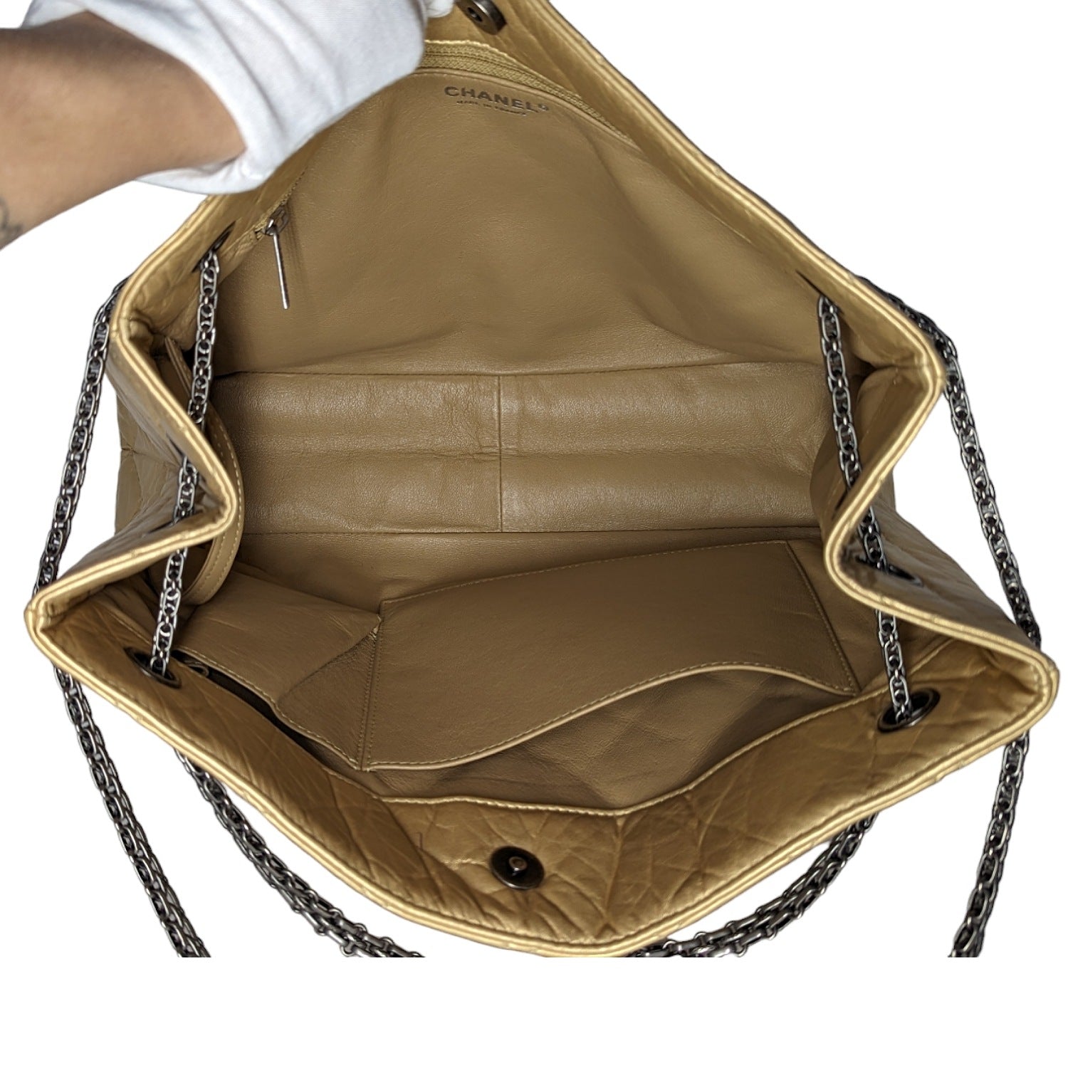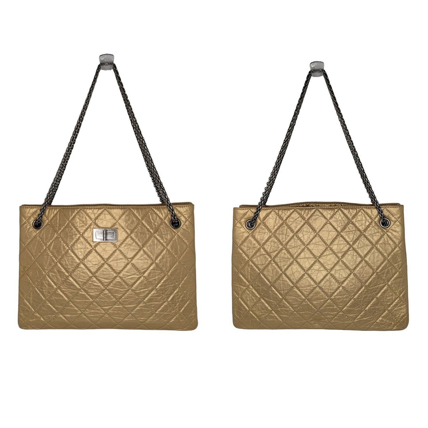 Chanel Metallic Aged Calfskin Quilted Reissue Tote Light Gold