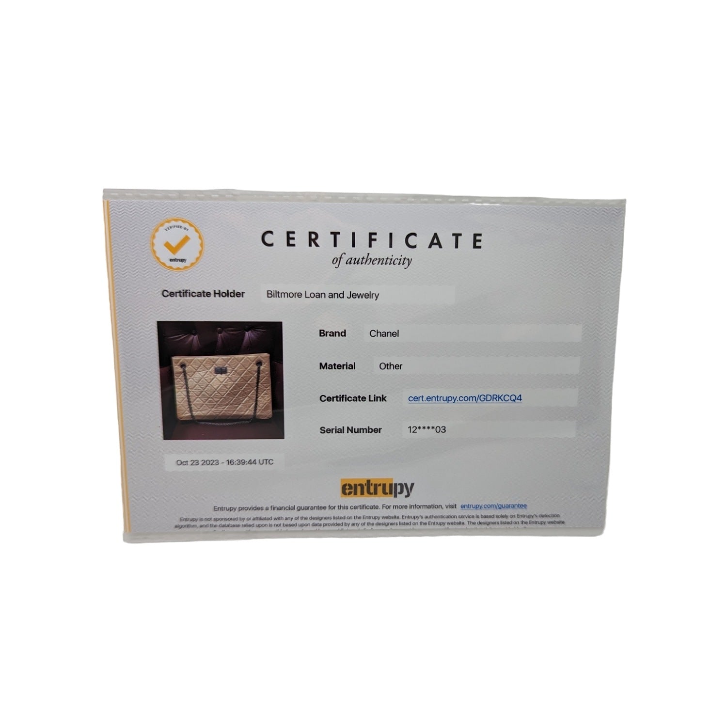 Includes: Chanel dust bag, card, care booklet & Entrupy