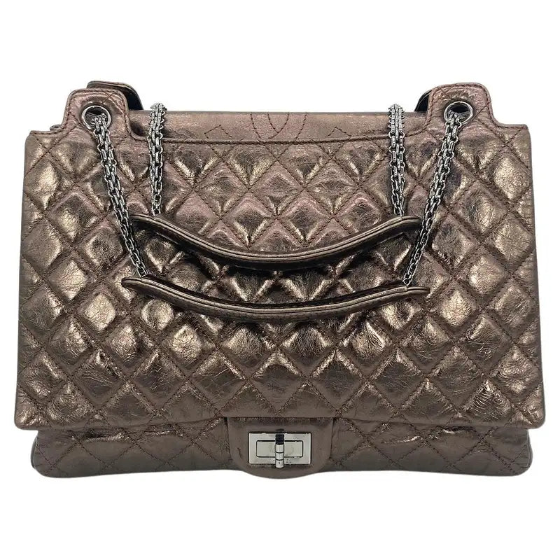 Chanel Metallic Bronze Quilted Leather Classic Flap Shopping Tote