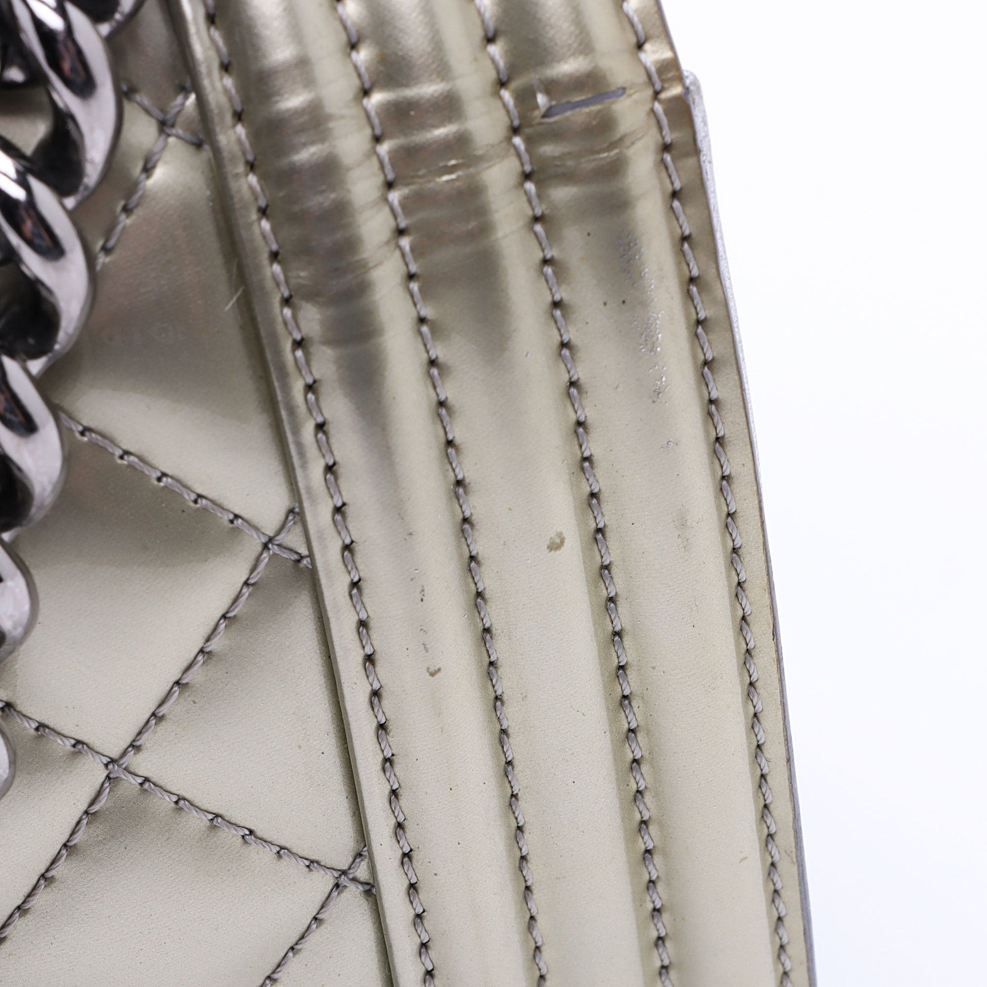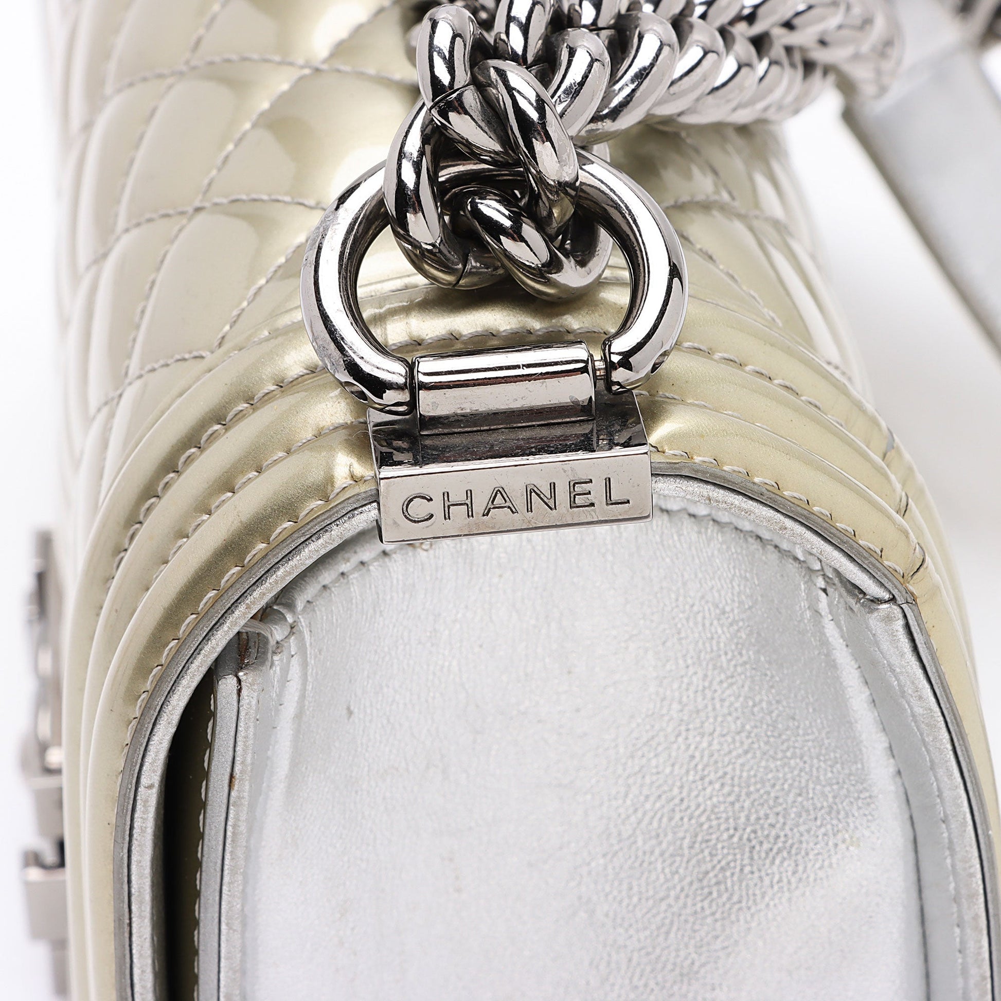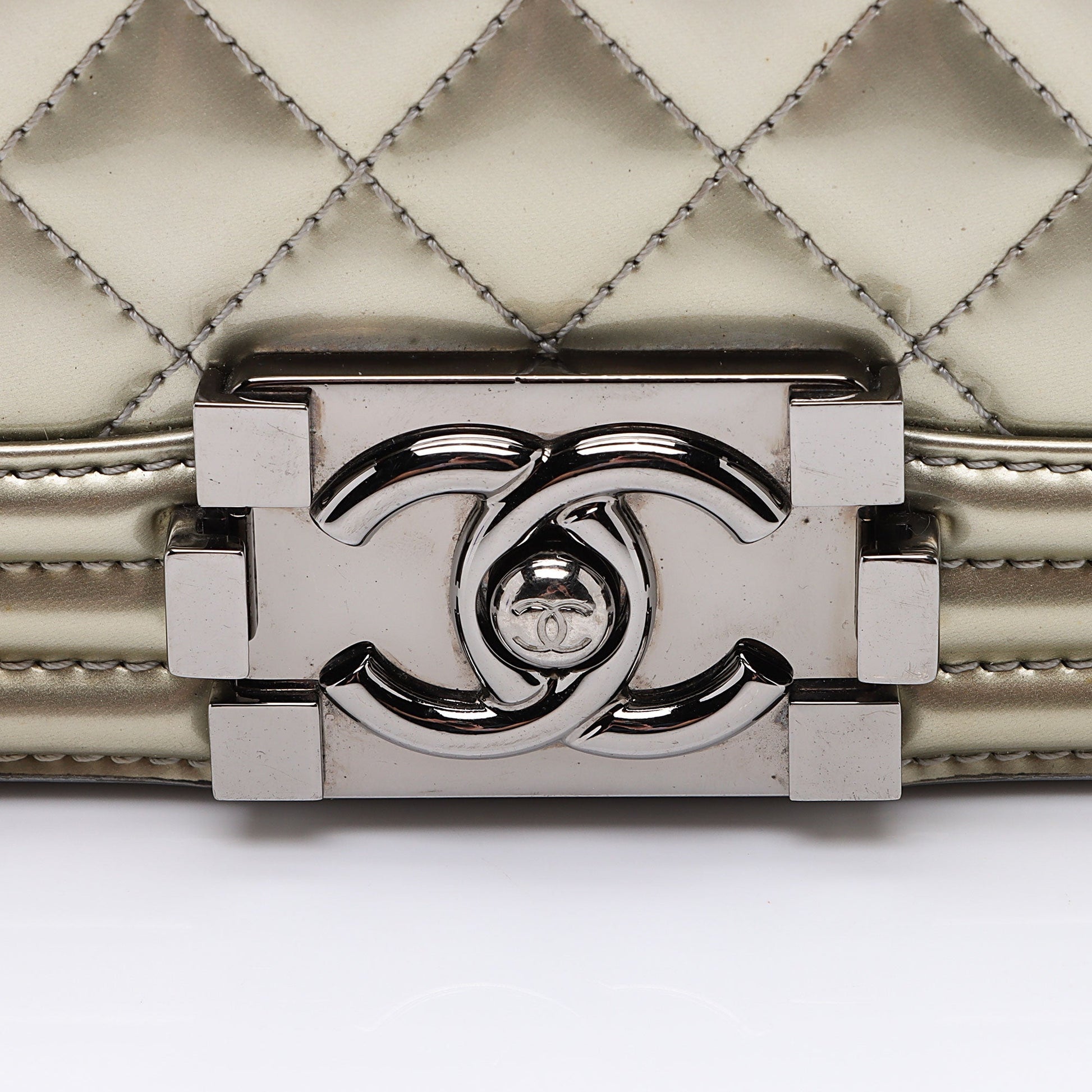 Chanel Metallic Patent Leather Old Medium Boy Bag (SHF-KF5y5y)