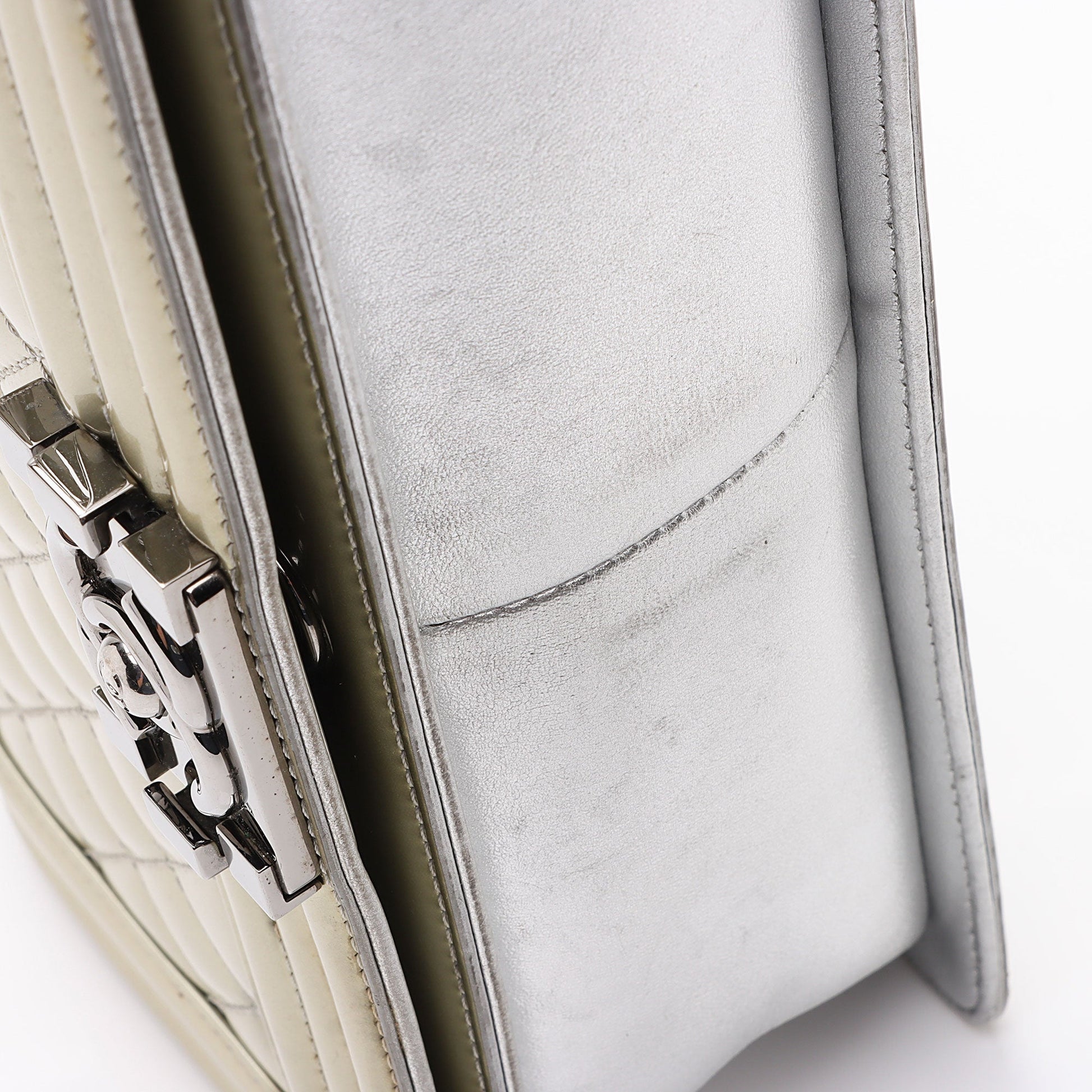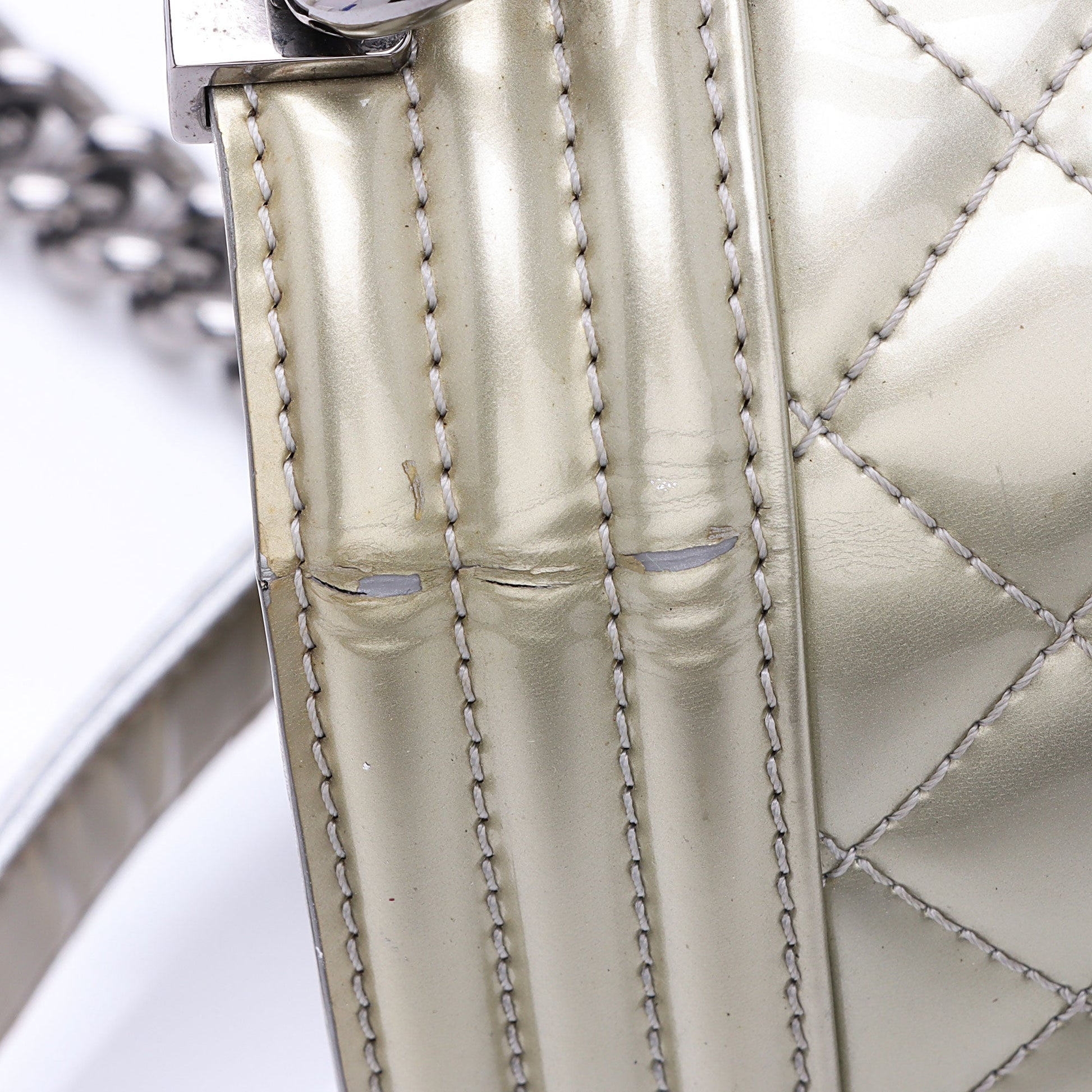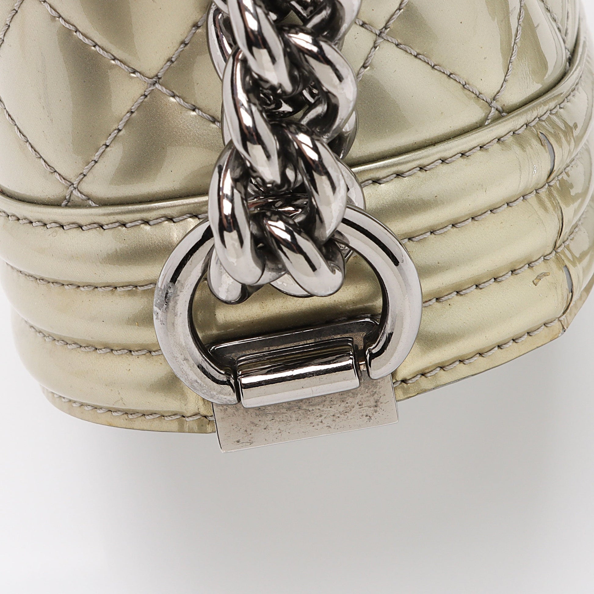 Chanel Metallic Patent Leather Old Medium Boy Bag (SHF-KF5y5y)