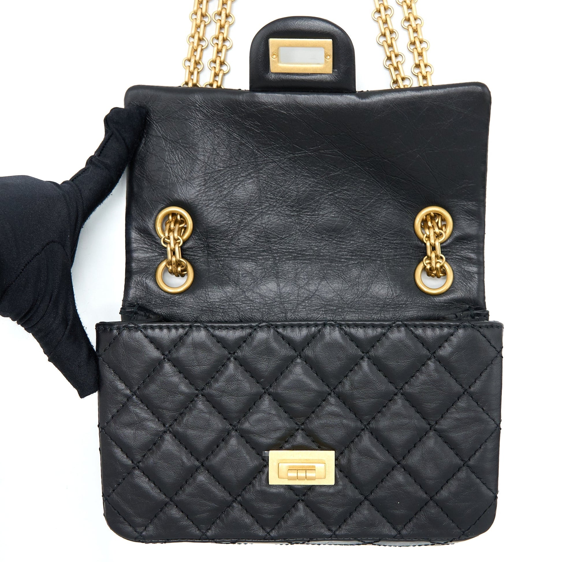 Chanel Mini 2.55 Reissue Flap Bag Aged Calfskin Black Brushed GHW (Microchip)