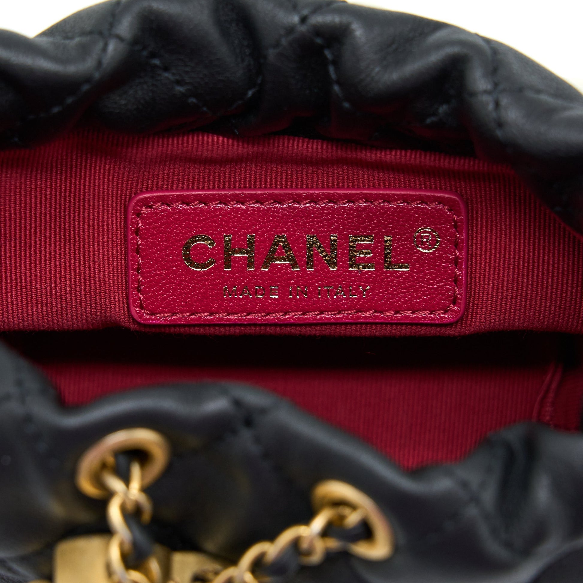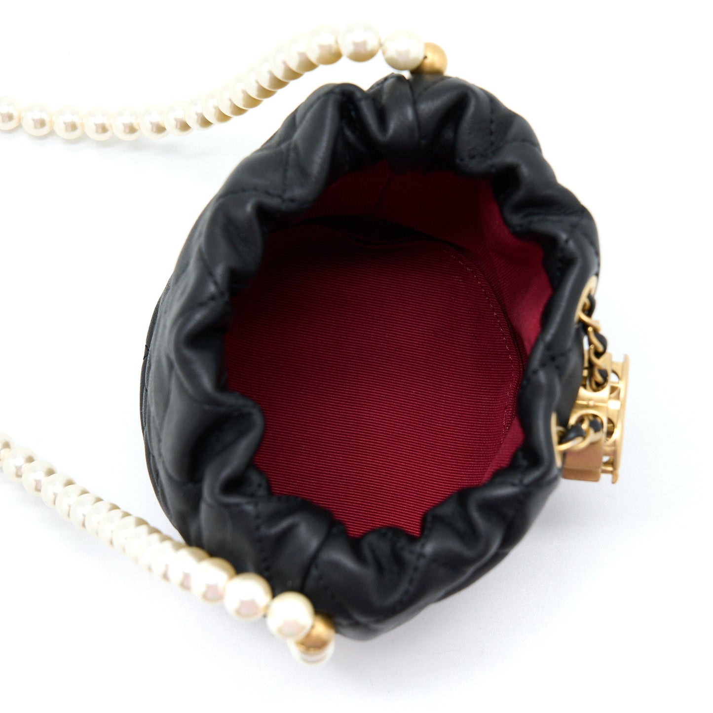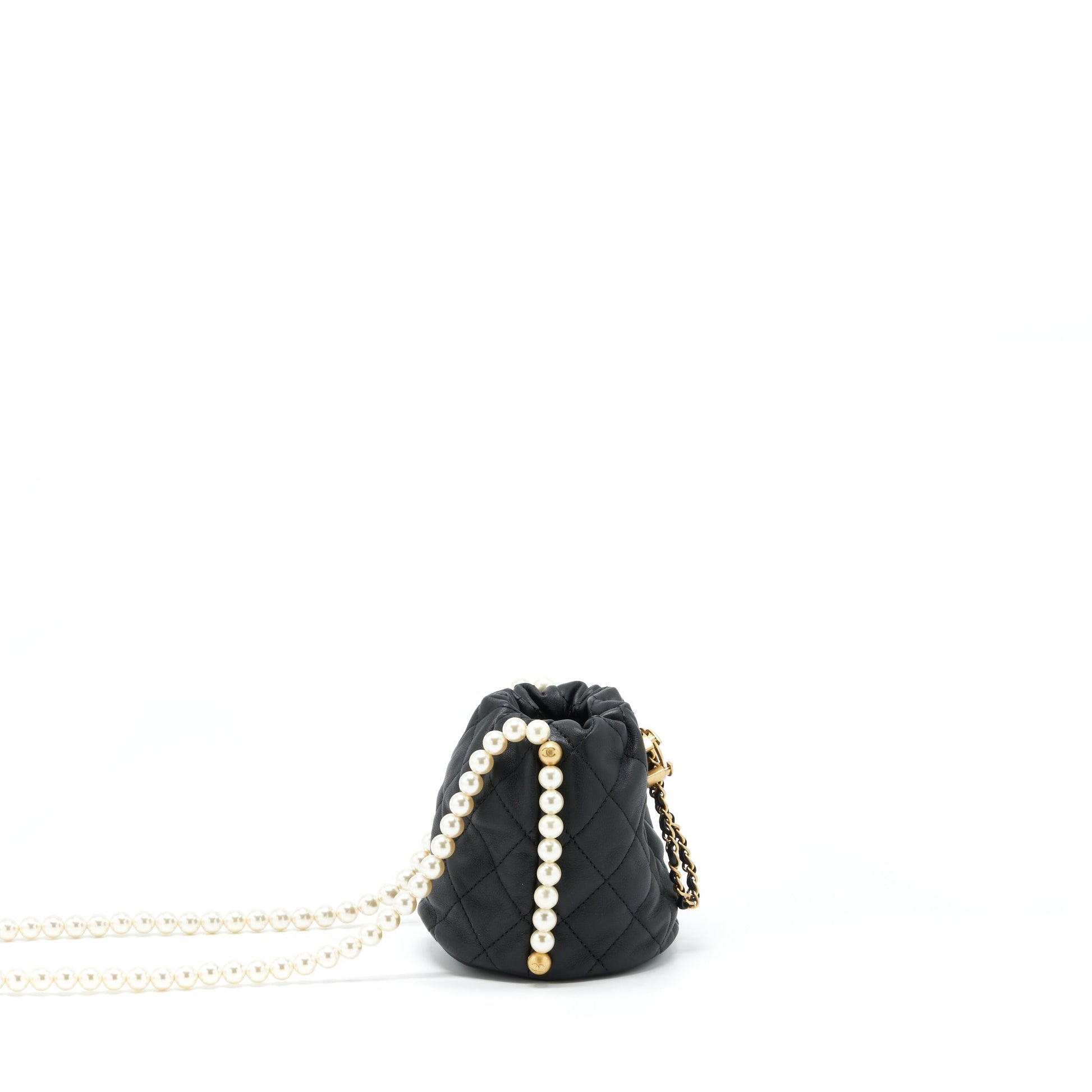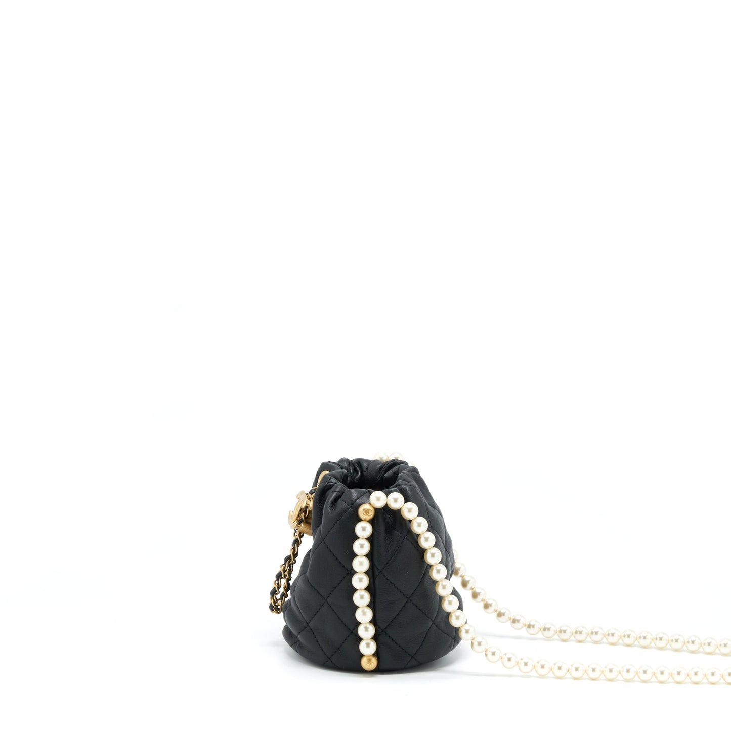 Chanel Mini Bucket Bag With Pearl Chain Lambskin Black GHW