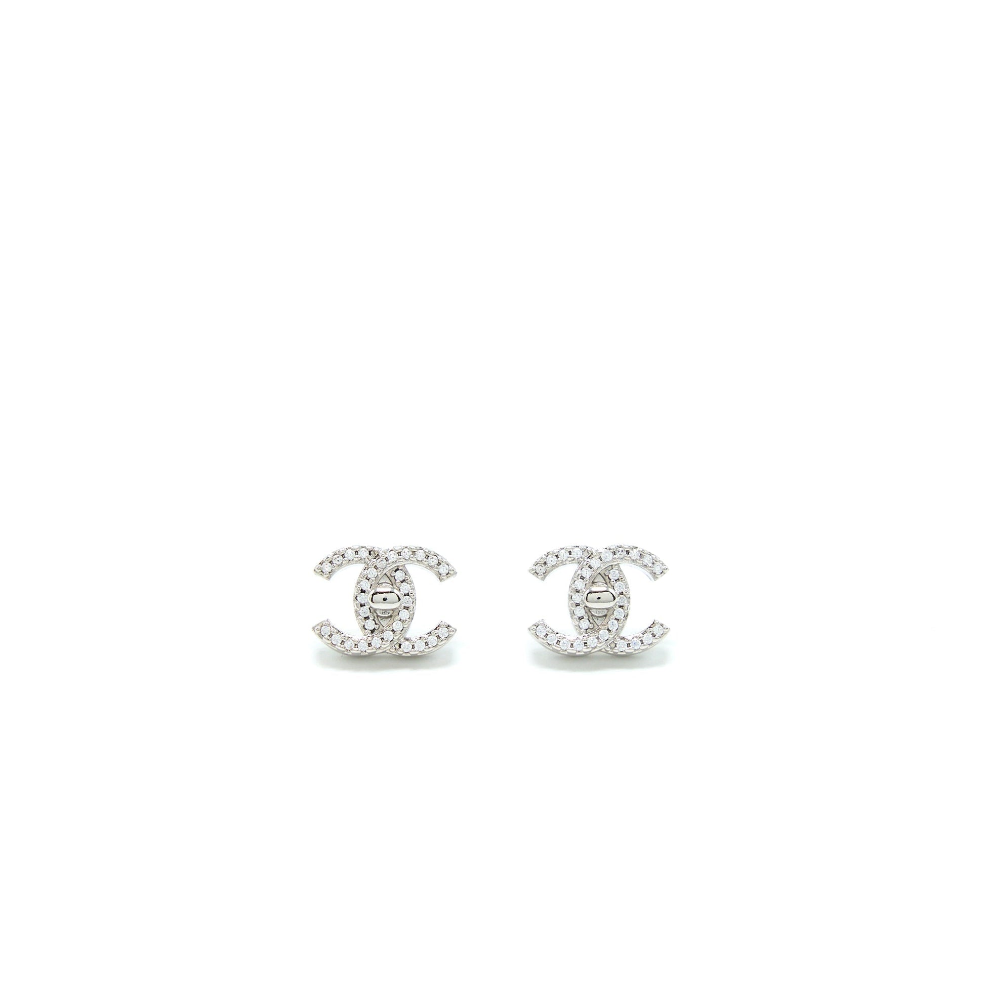 Chanel Mini CC Logo Earrings Silver Tone