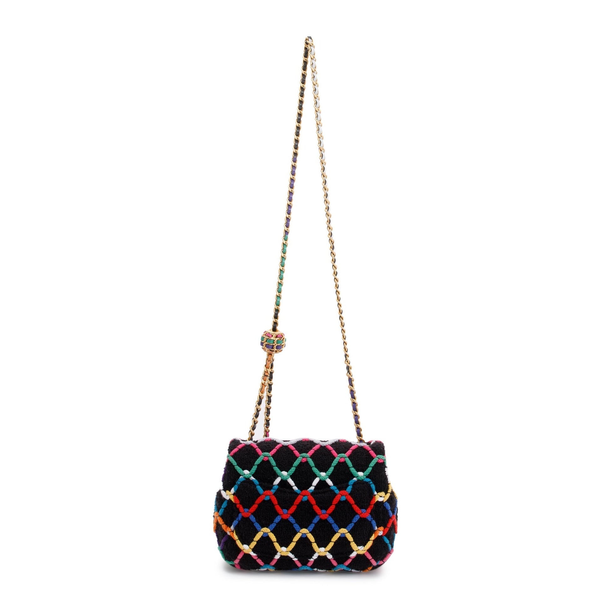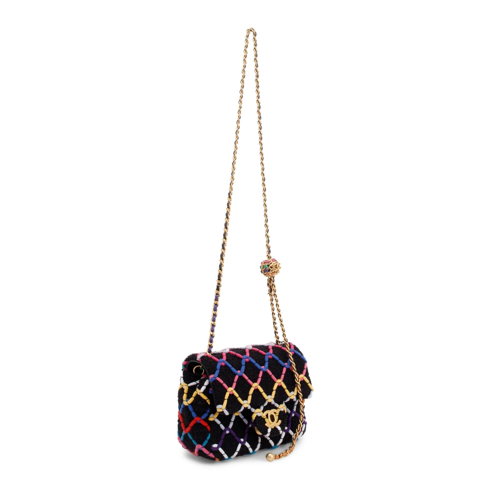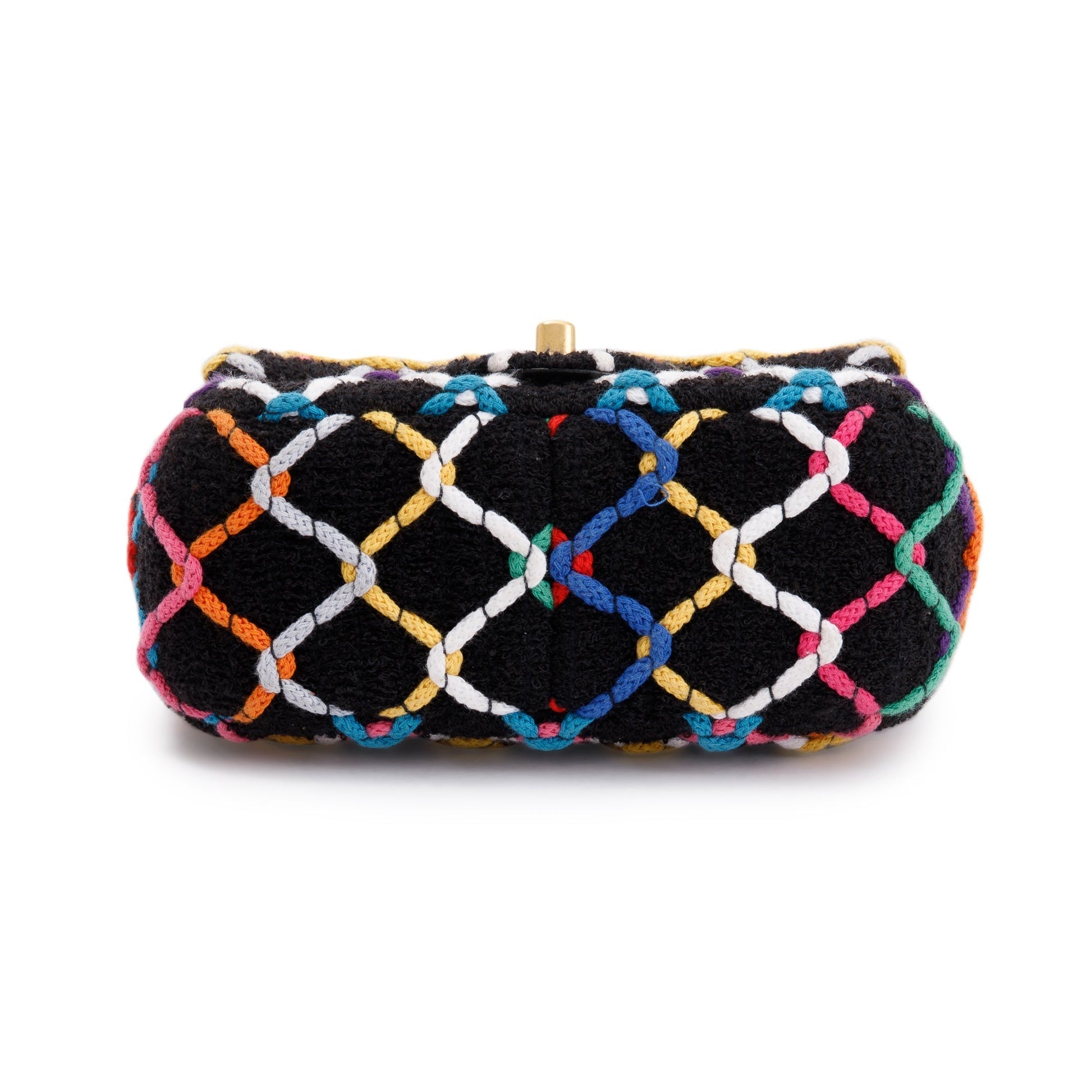 Chanel 2022 Diamond Threaded Tweed CC Pearl Crush Square Mini Flap Bag