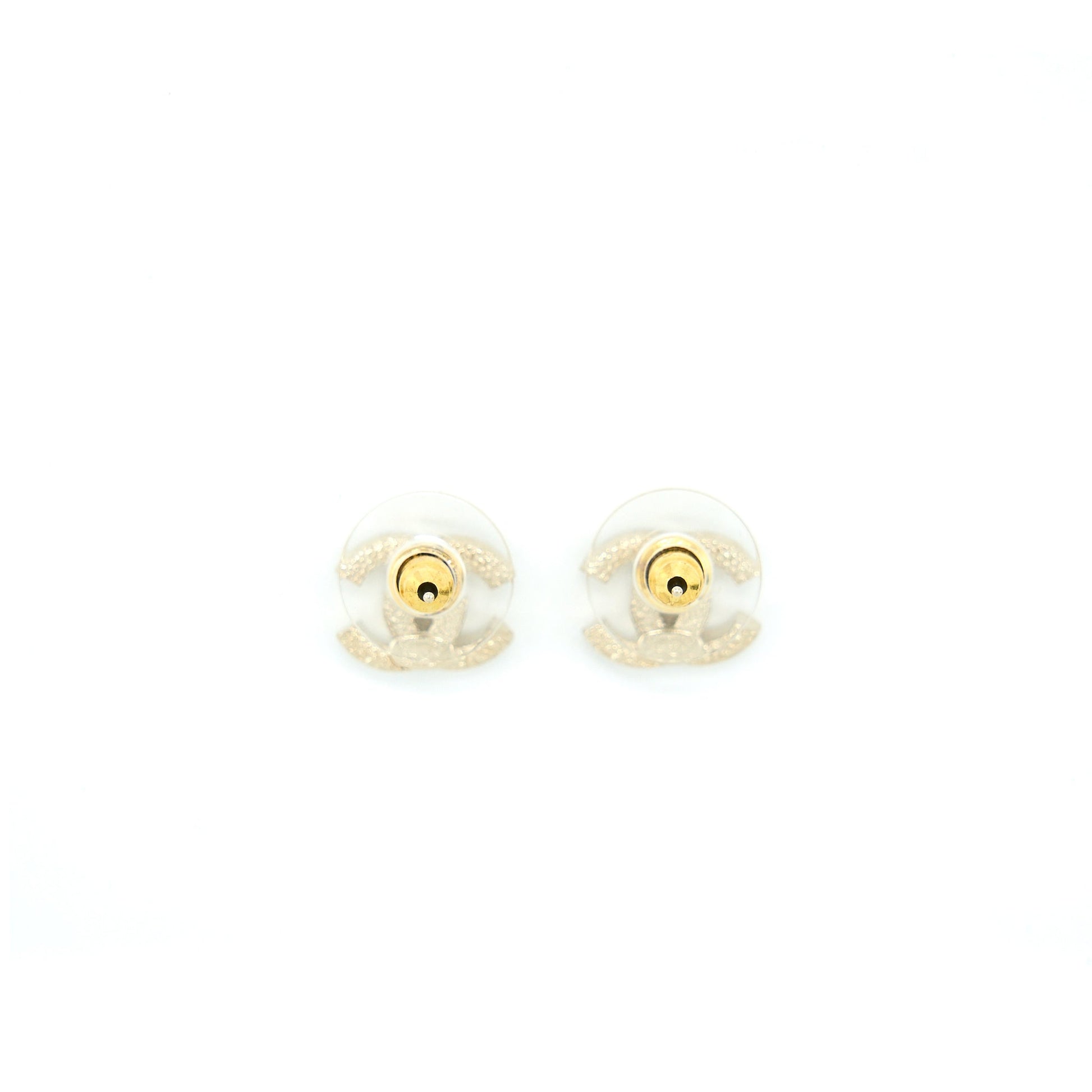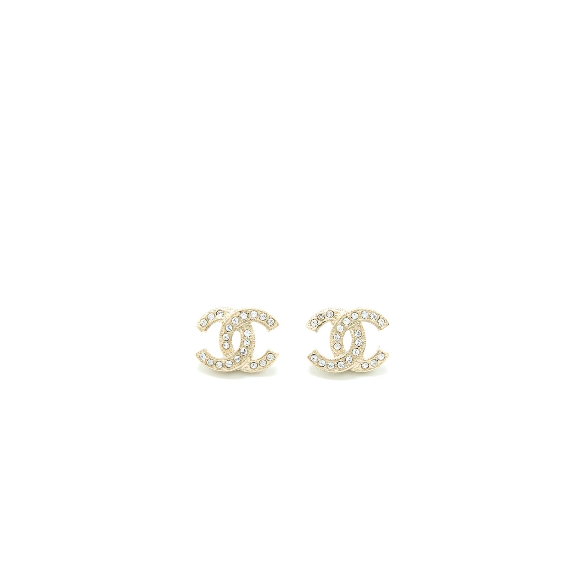 Chanel Mini Classic CC Logo Earrings Gold Tone