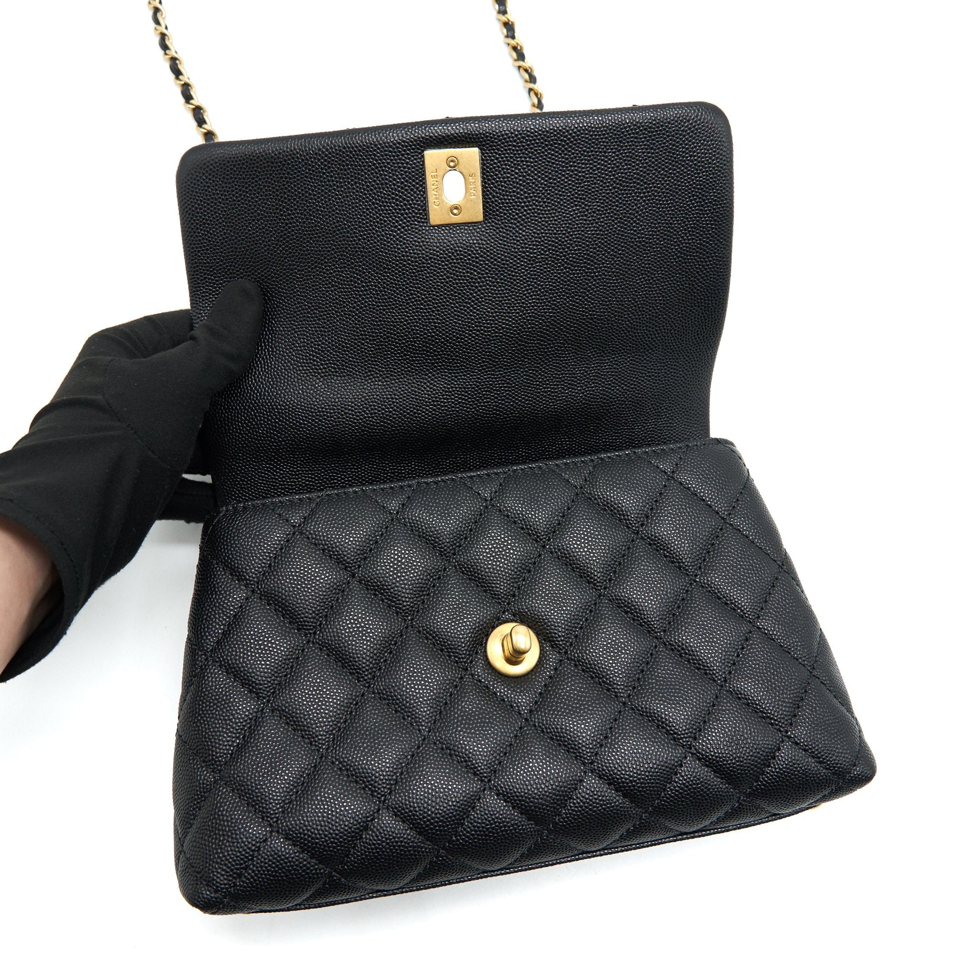 CHANEL MINI COCO HANDLE CAVIAR LEATHER WITH PYTHON HANDLE BLACK GHW