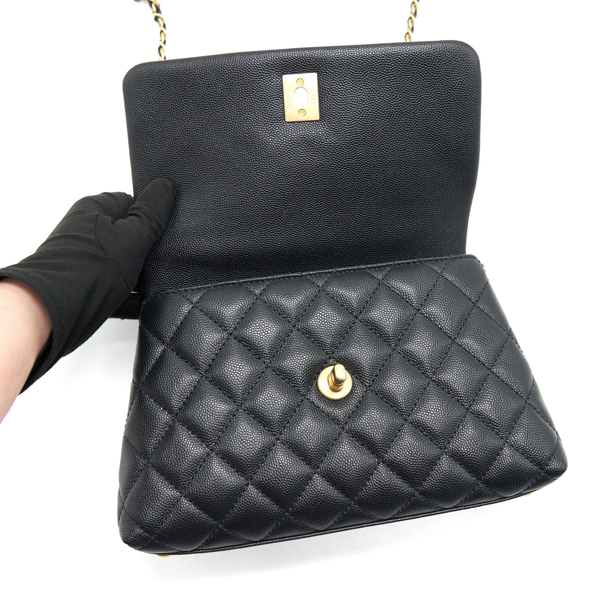 Chanel Mini Coco Handle Flap Caviar in Black GHW