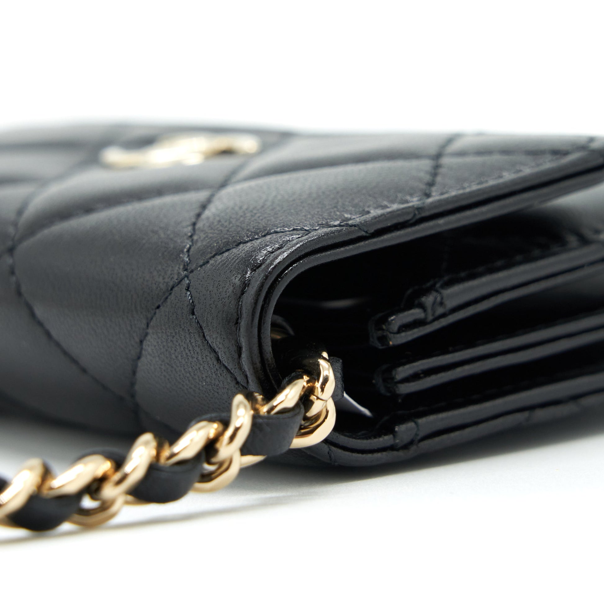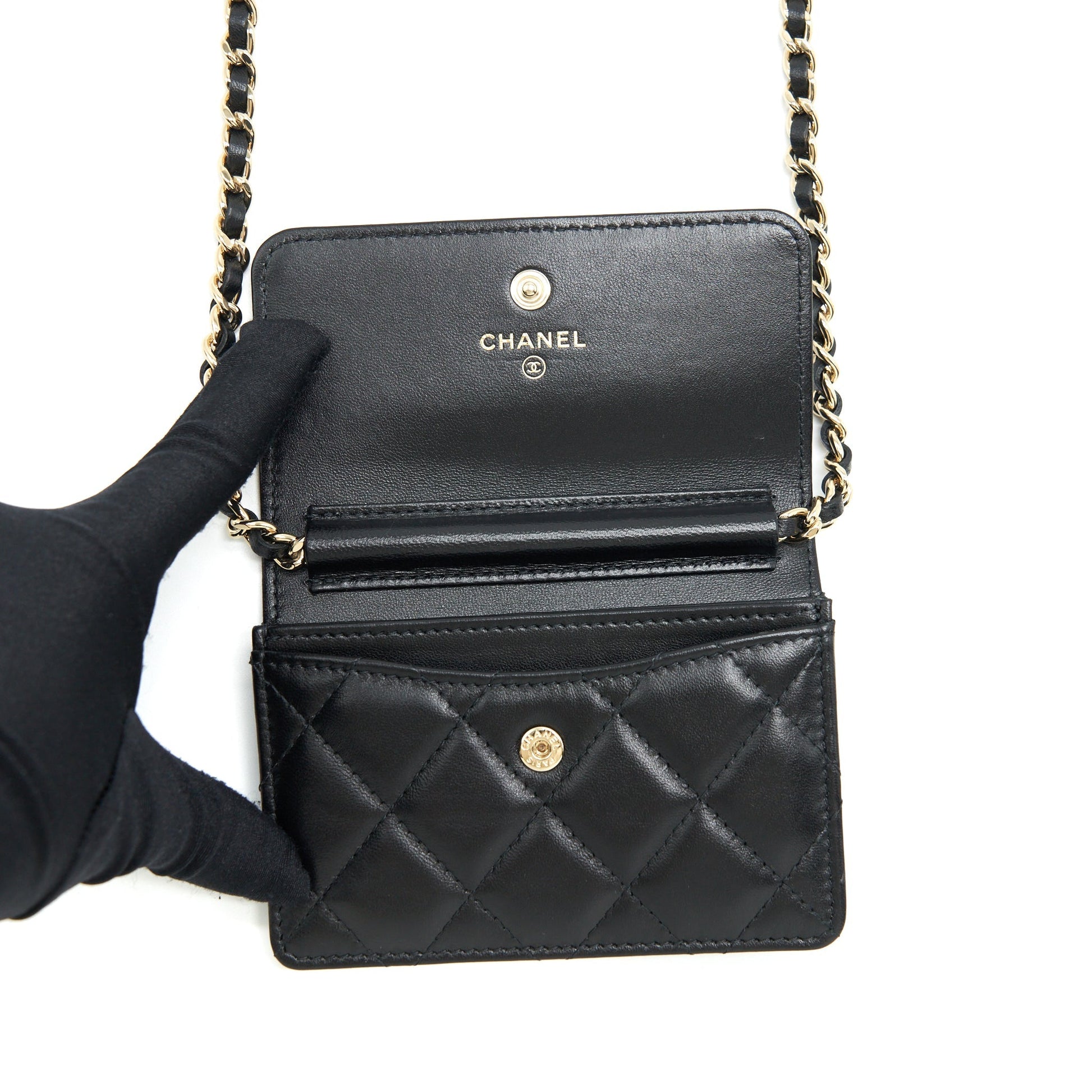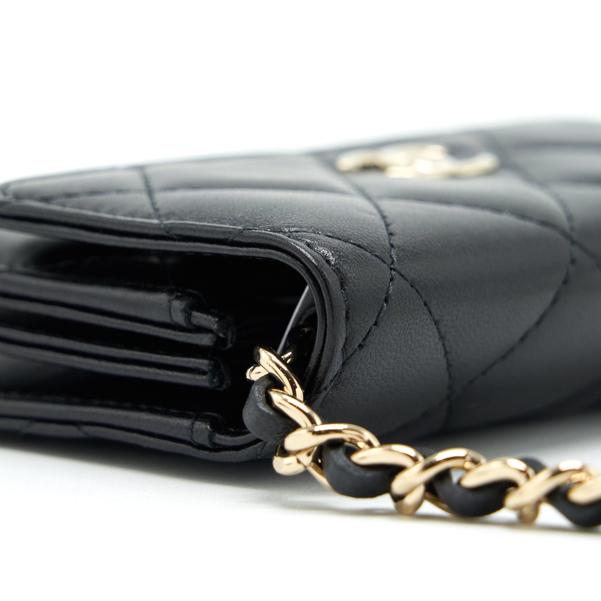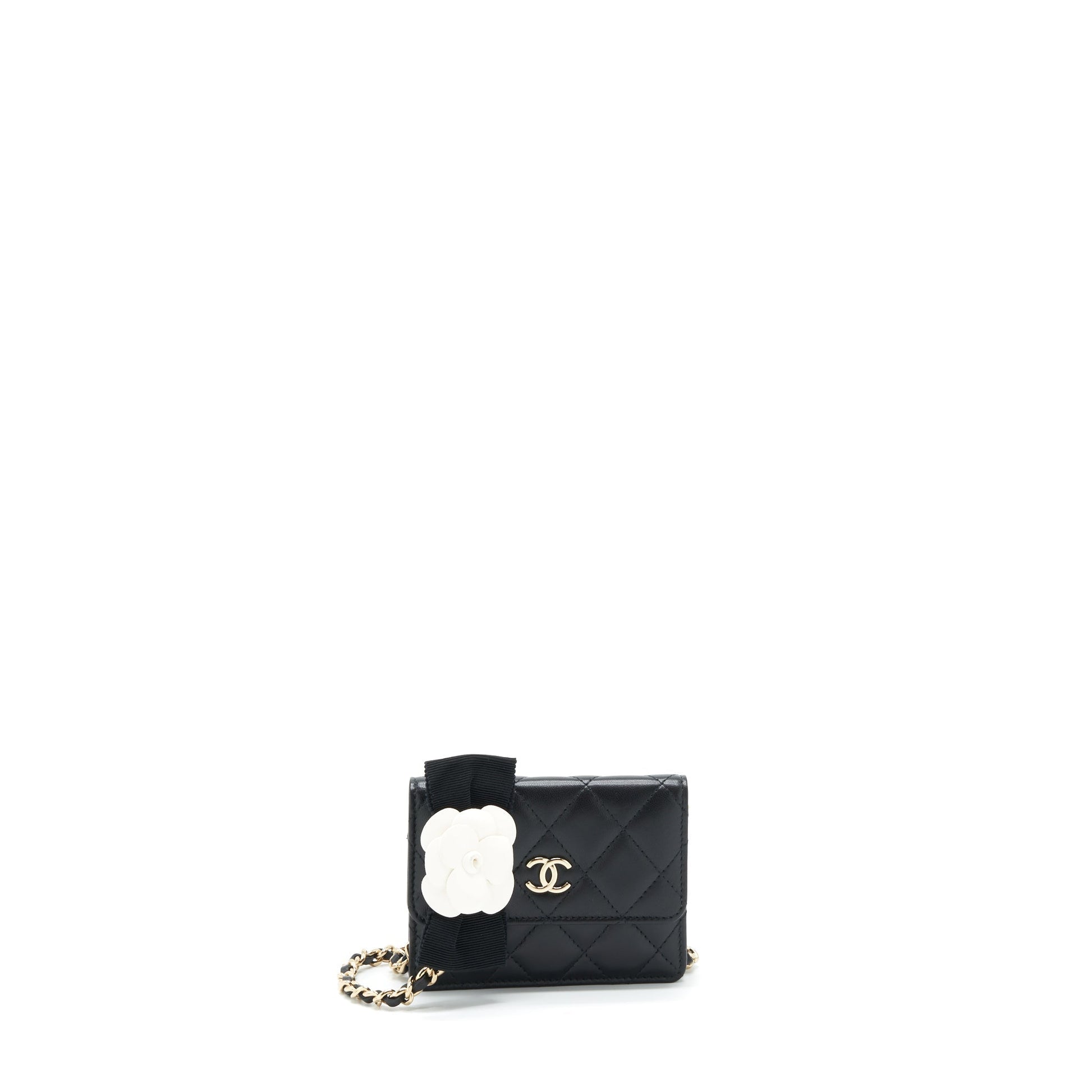Chanel Mini Flap Bag With Camellia Chain Lambskin Black LGHW