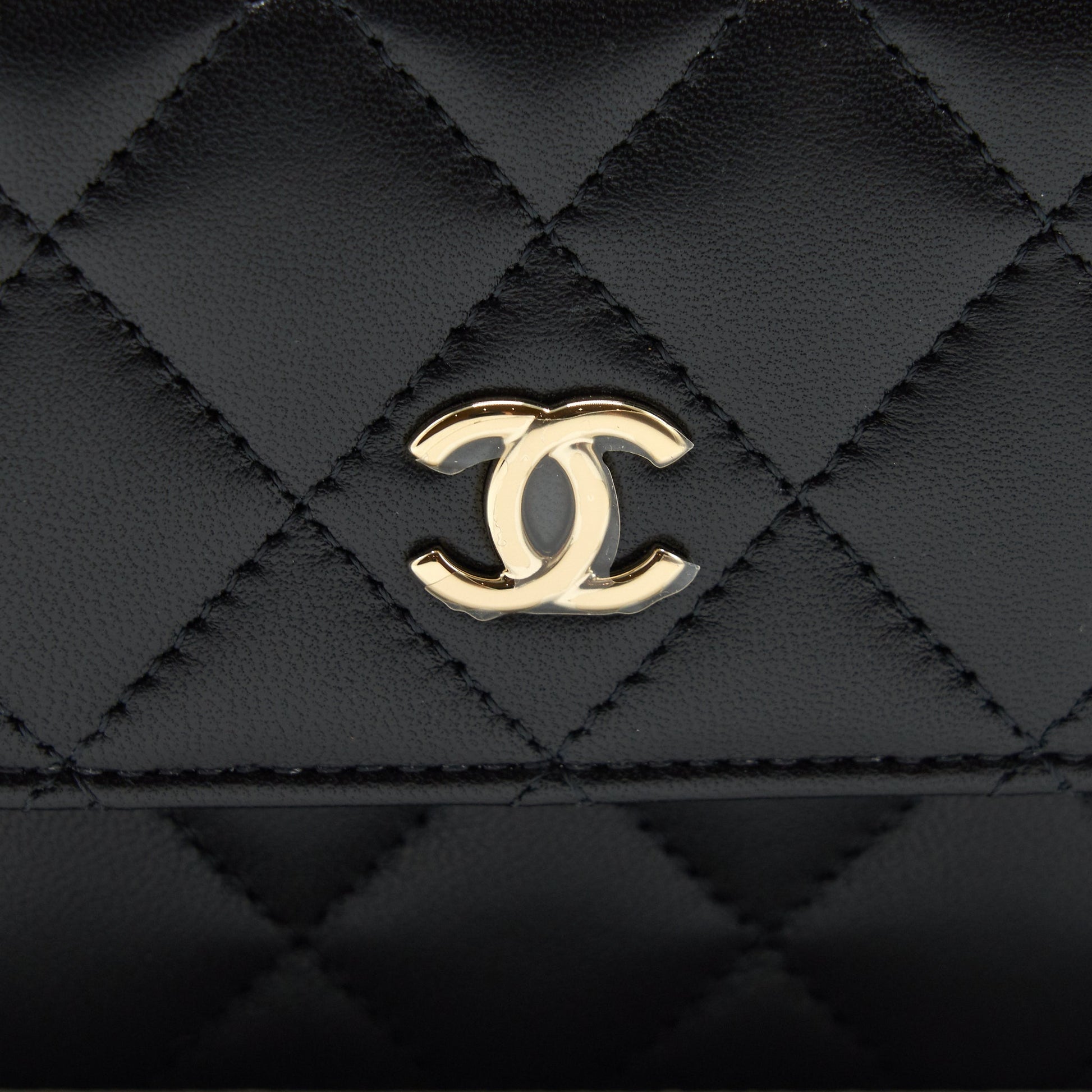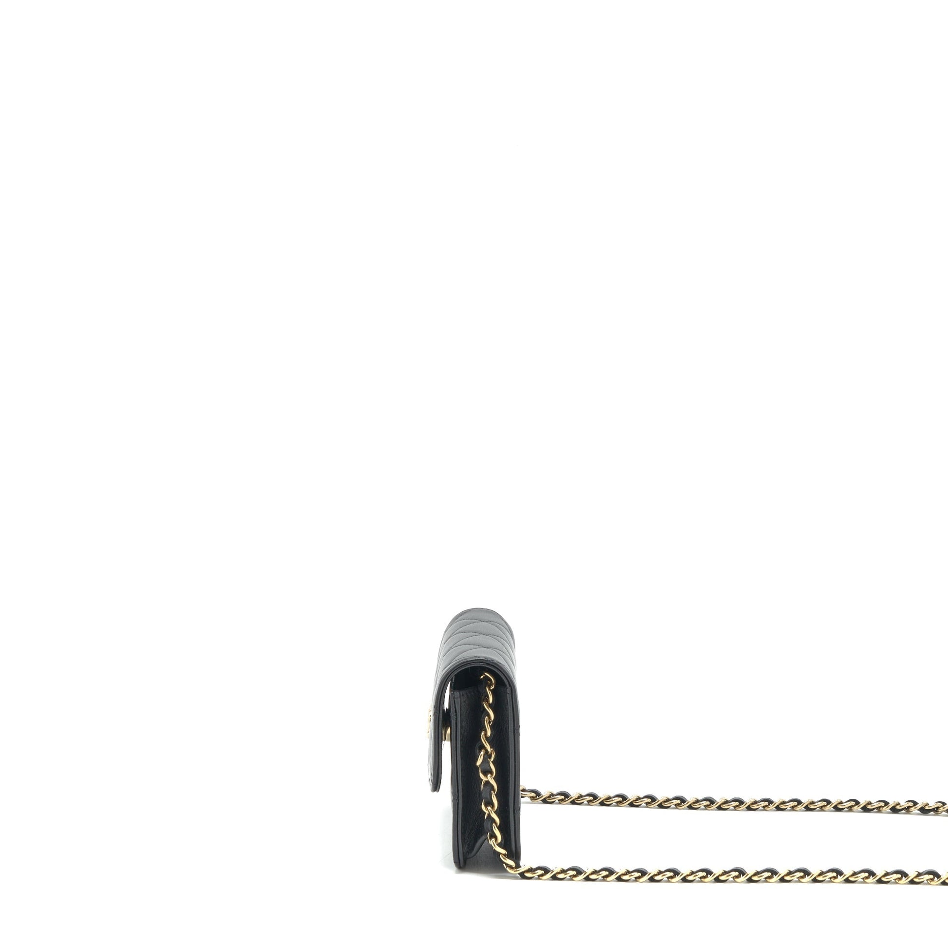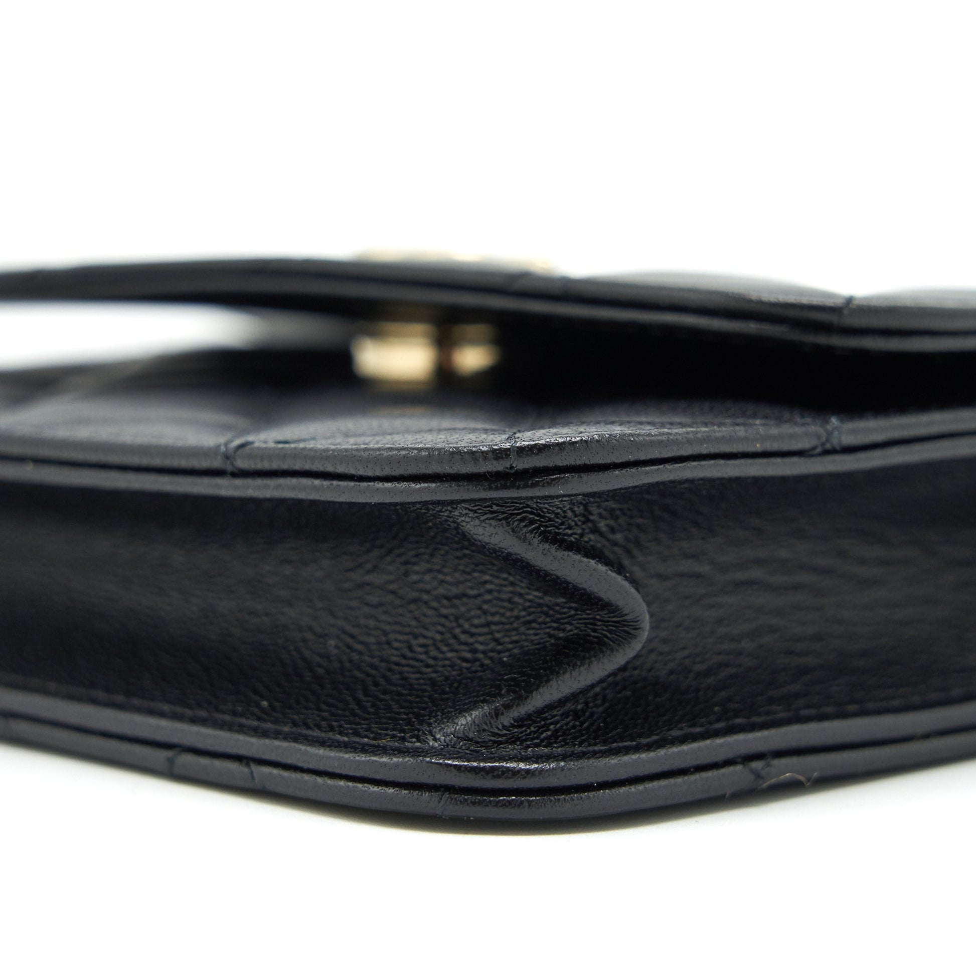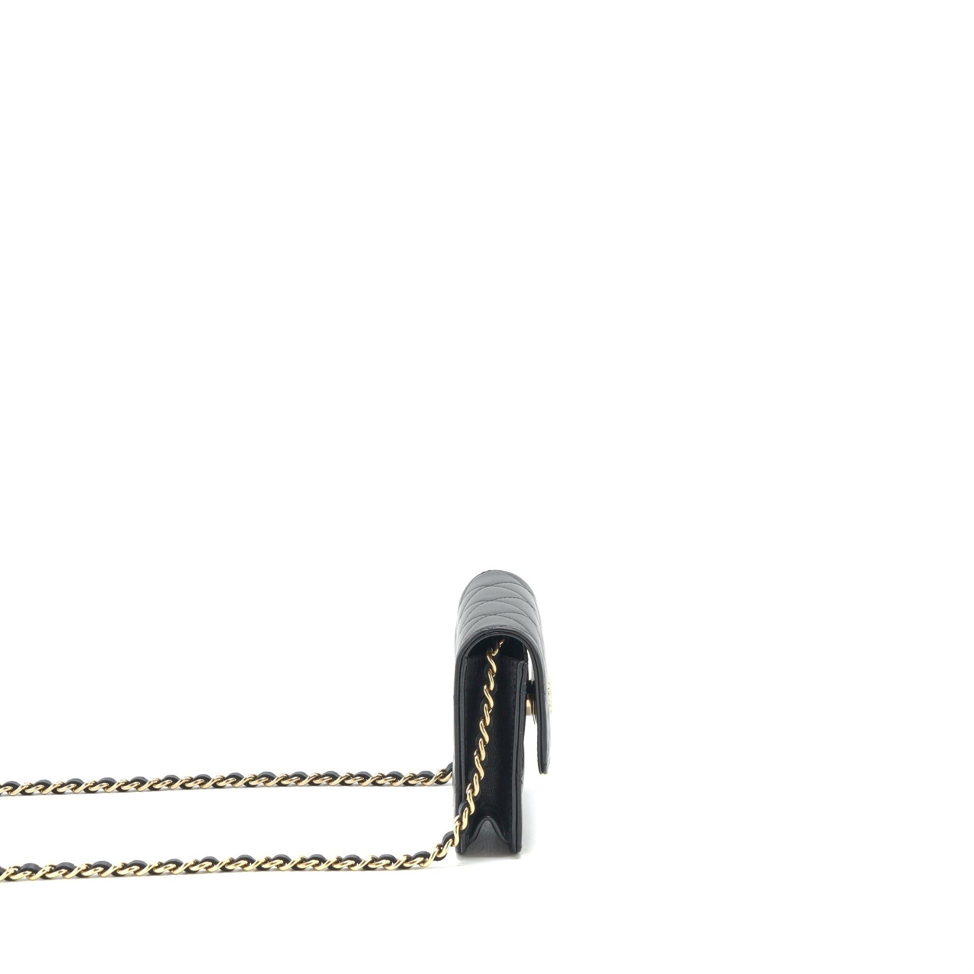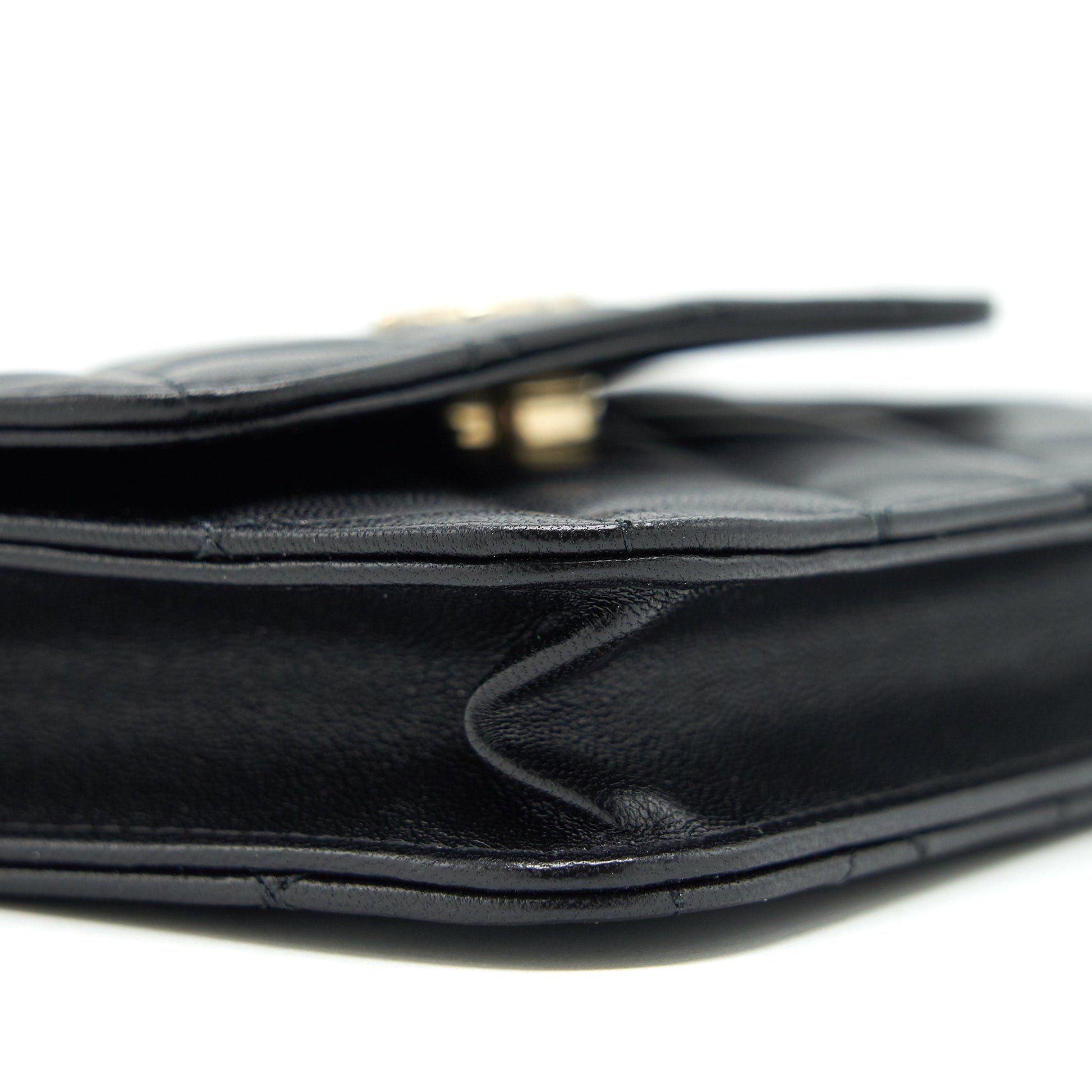 Chanel Mini flap card holder Ribbon Chain Lambskin Black LGHW