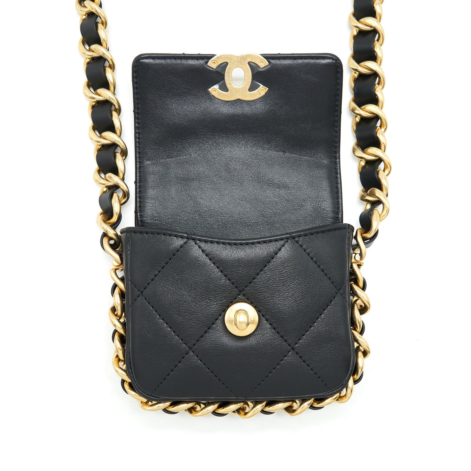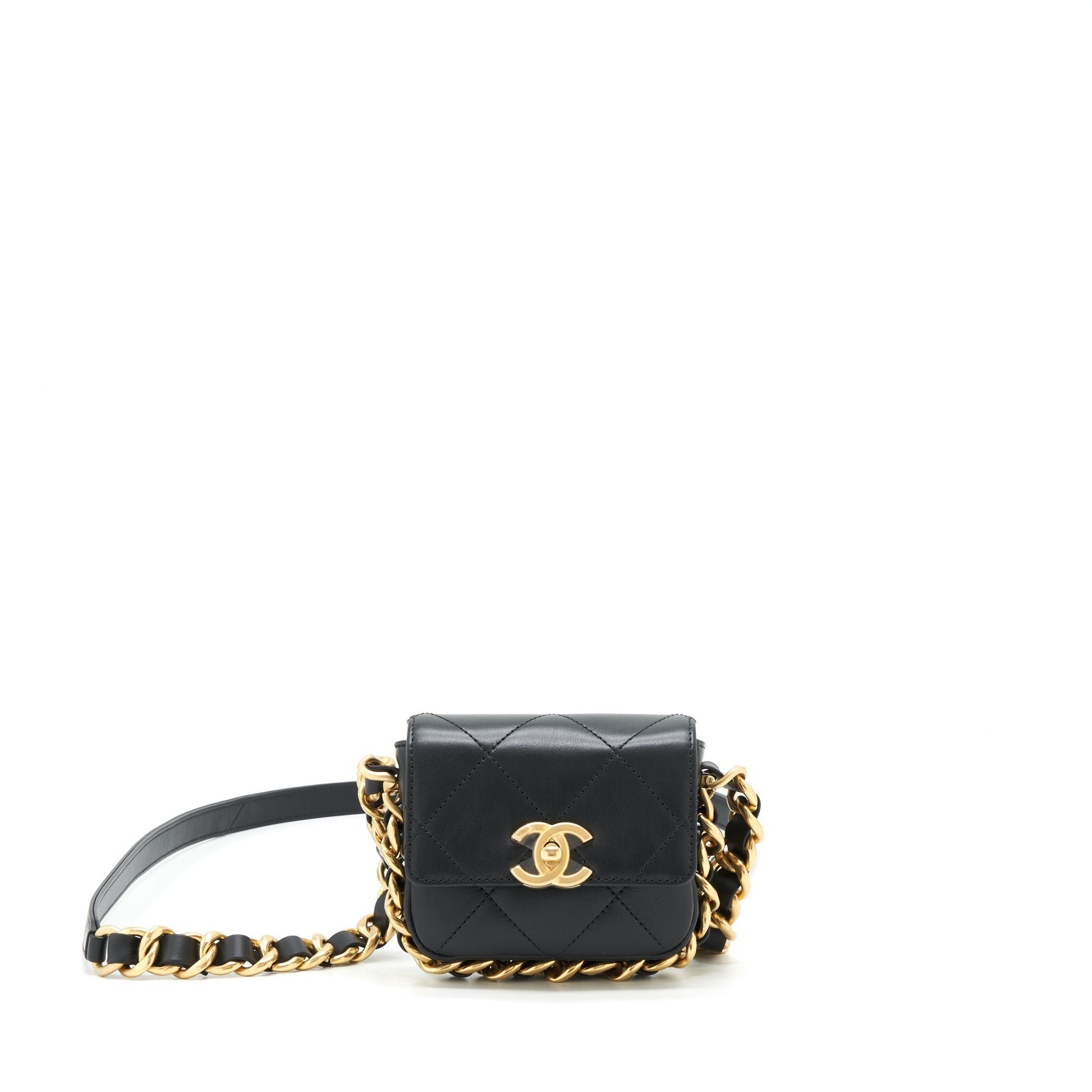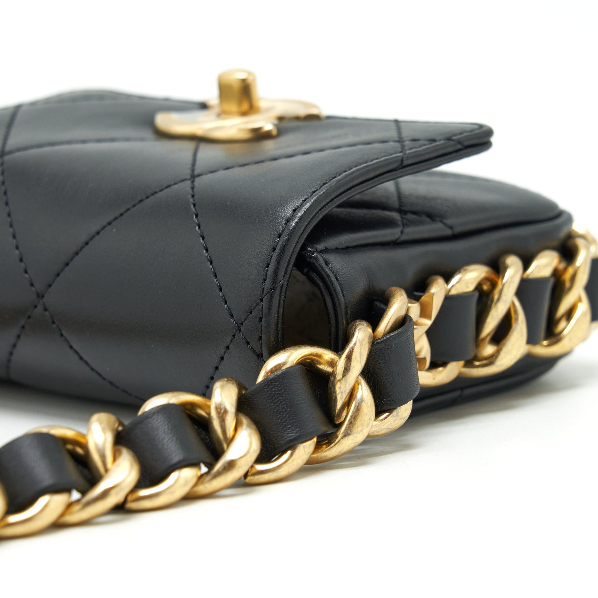Chanel Mini Flap Giant Chain Crossbody Bag Lambskin Black Brushed GHW
