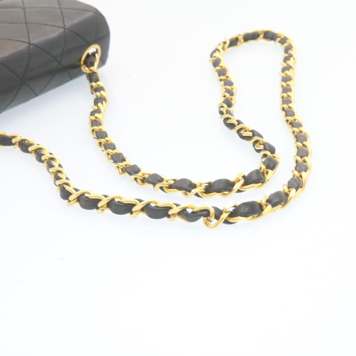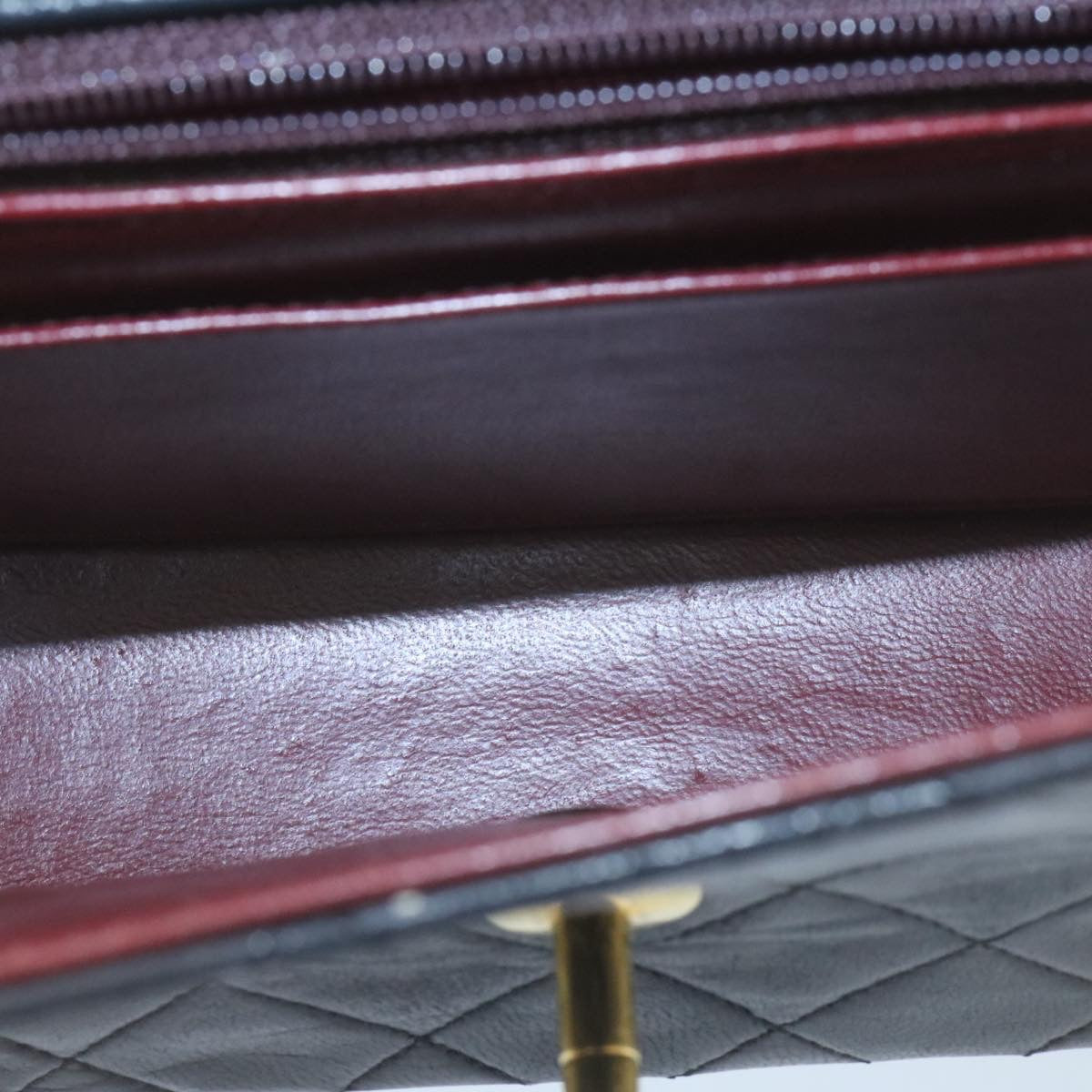 CHANEL Mini Matelasse Chain Flap Shoulder Bag Lamb Skin Black Gold 28471A