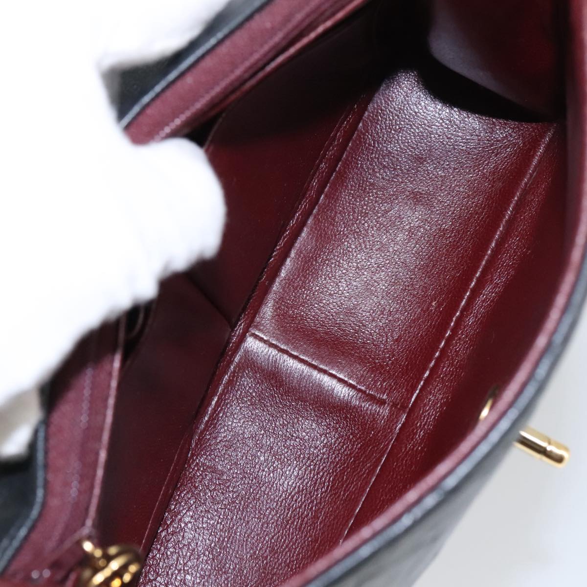 CHANEL Mini Matelasse Chain Shoulder Bag Lamb Skin Black Gold CC 103354