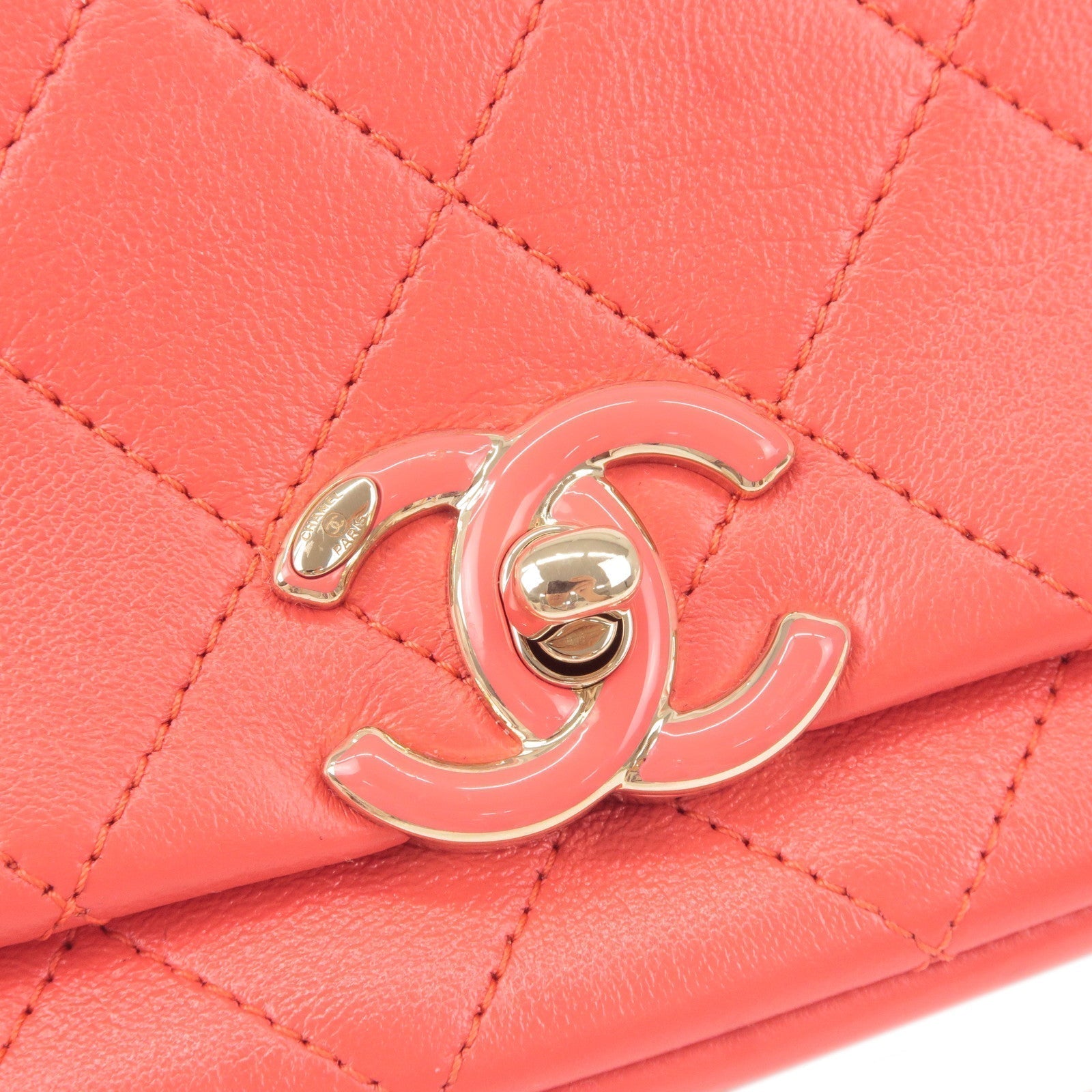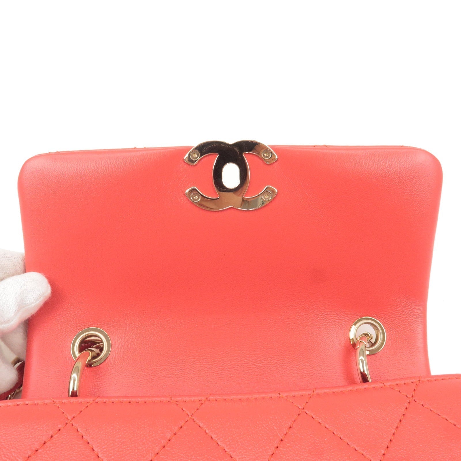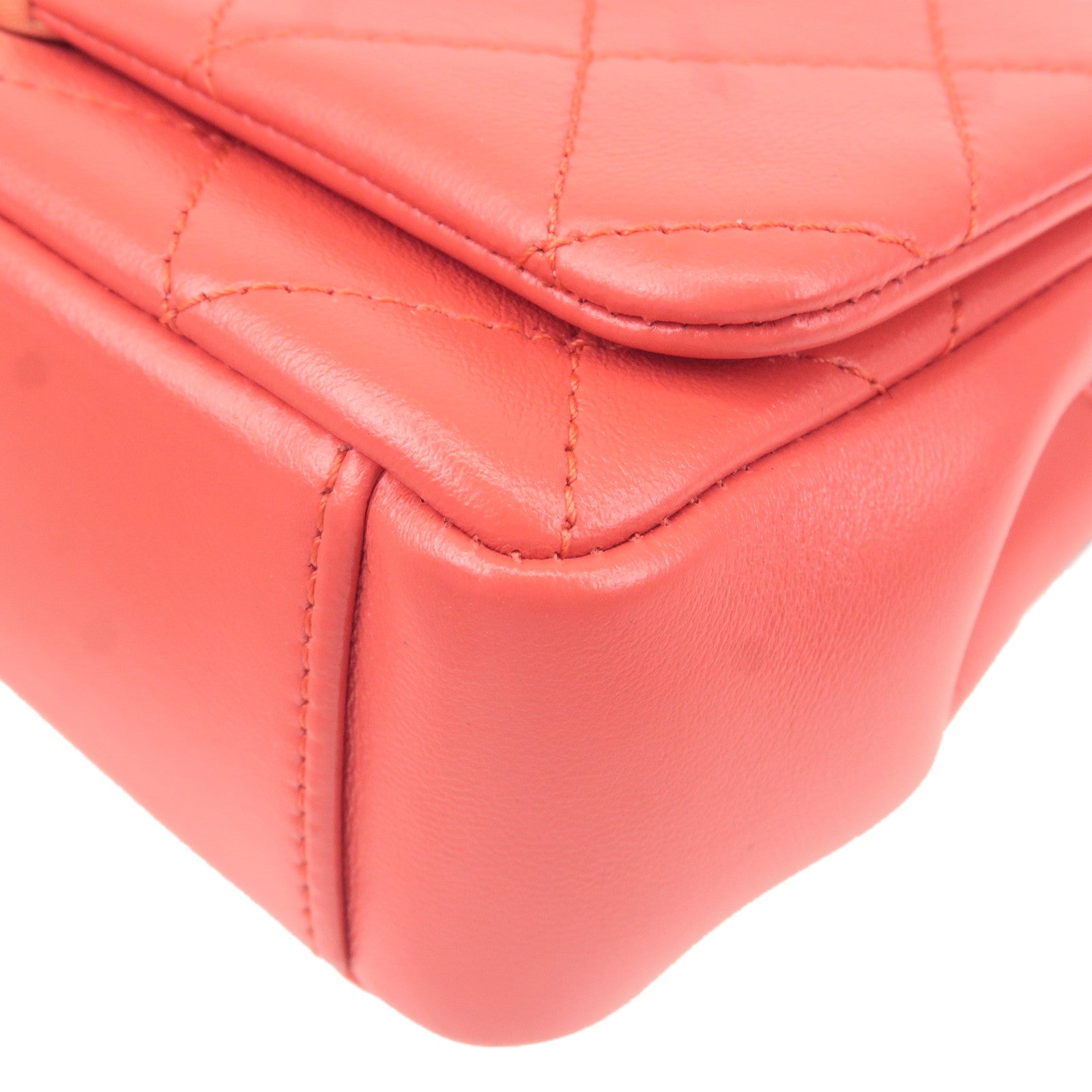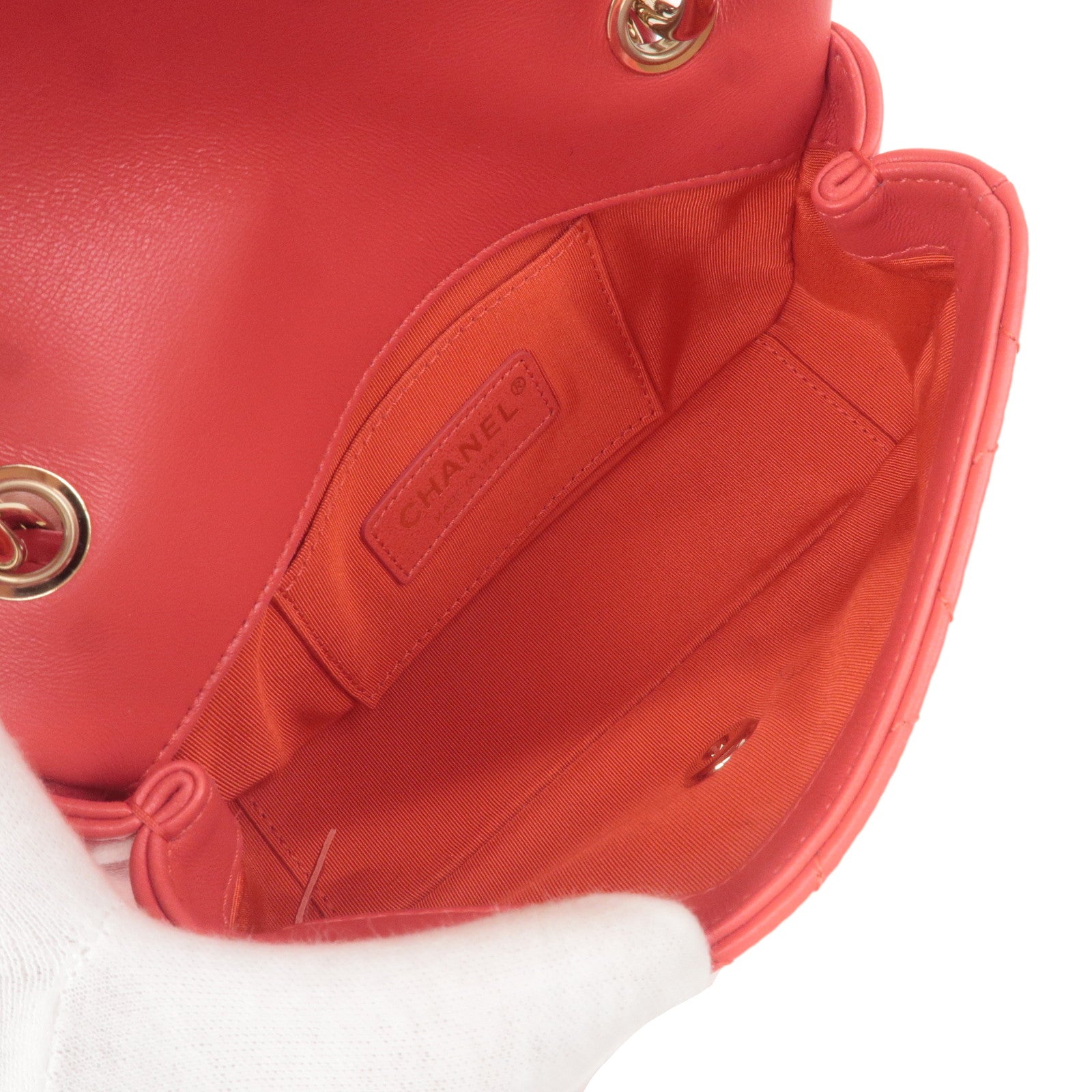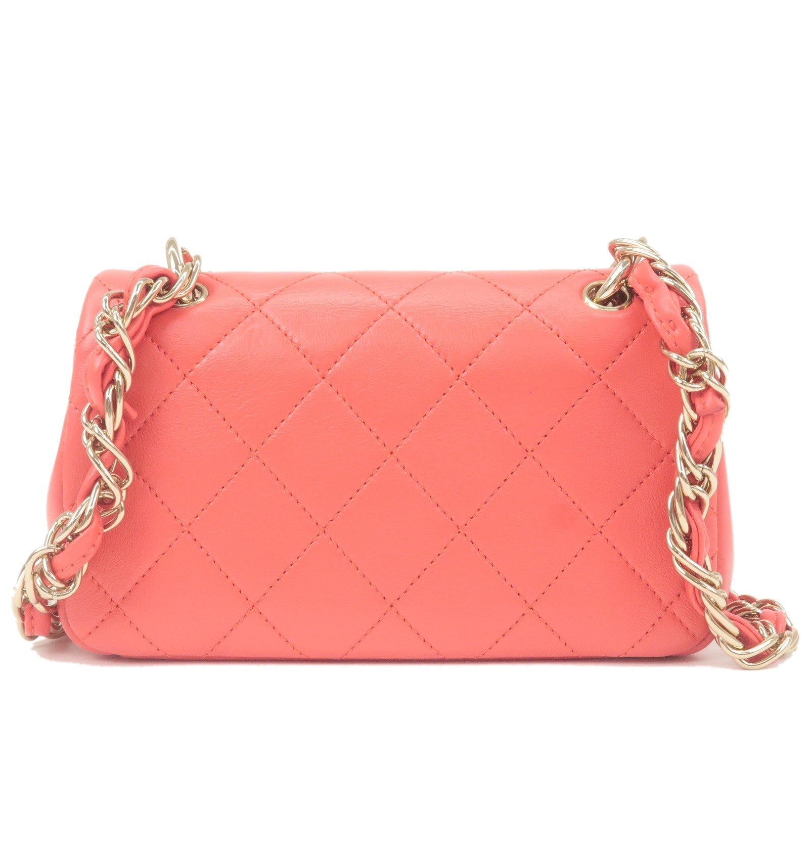 CHANEL Mini Matelasse Lamb Skin Chain Shoulder Bag Pink Gold