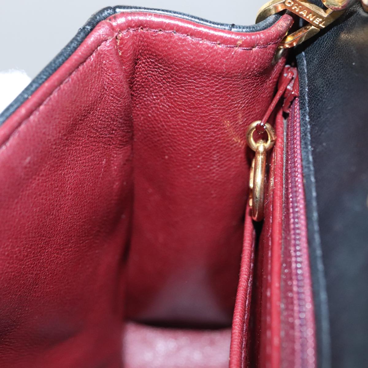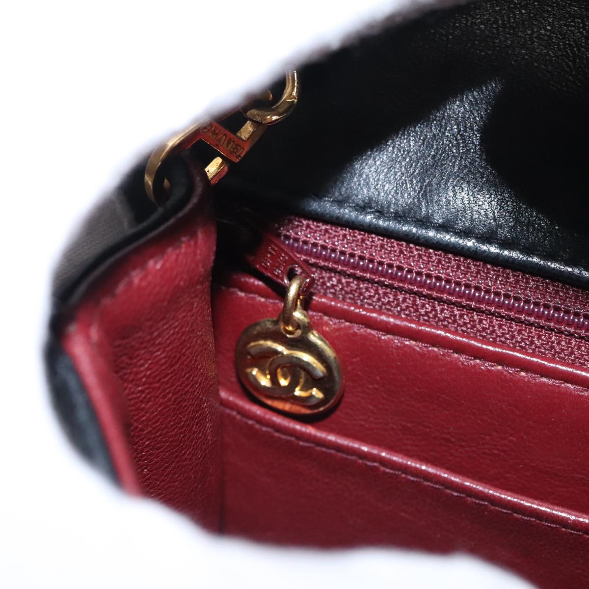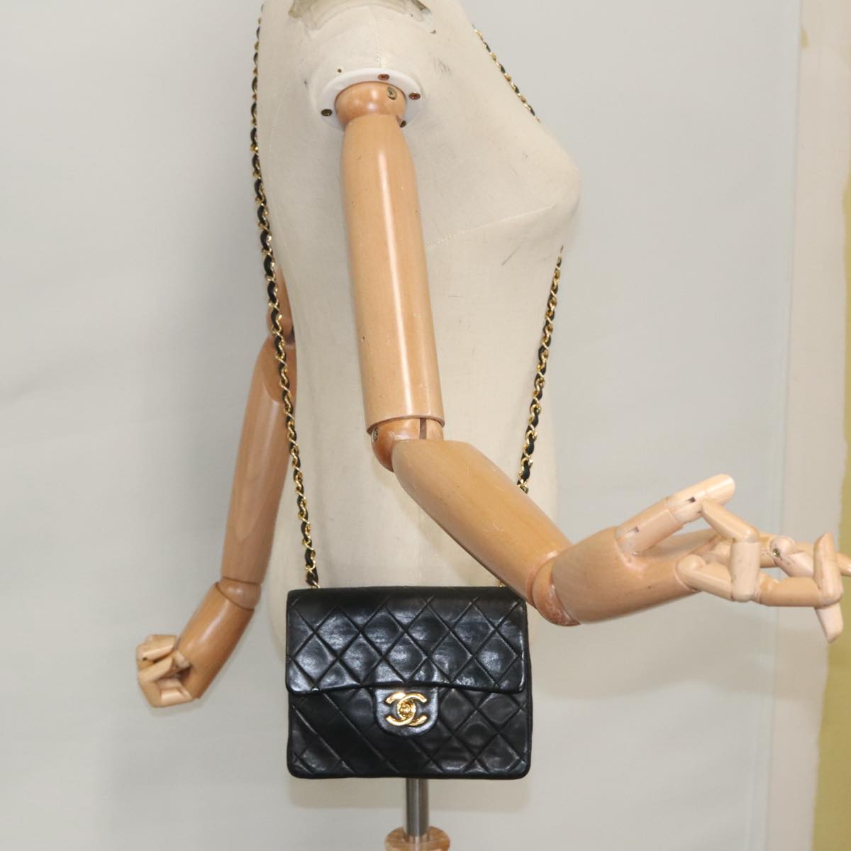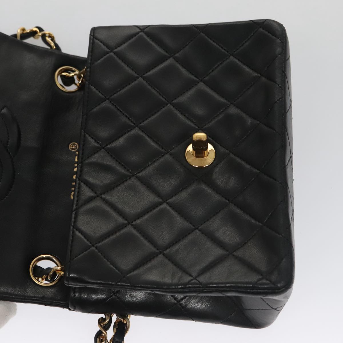 CHANEL Mini Materasse 17 Chain Shoulder Bag Lamb Skin Black Gold CC PP025