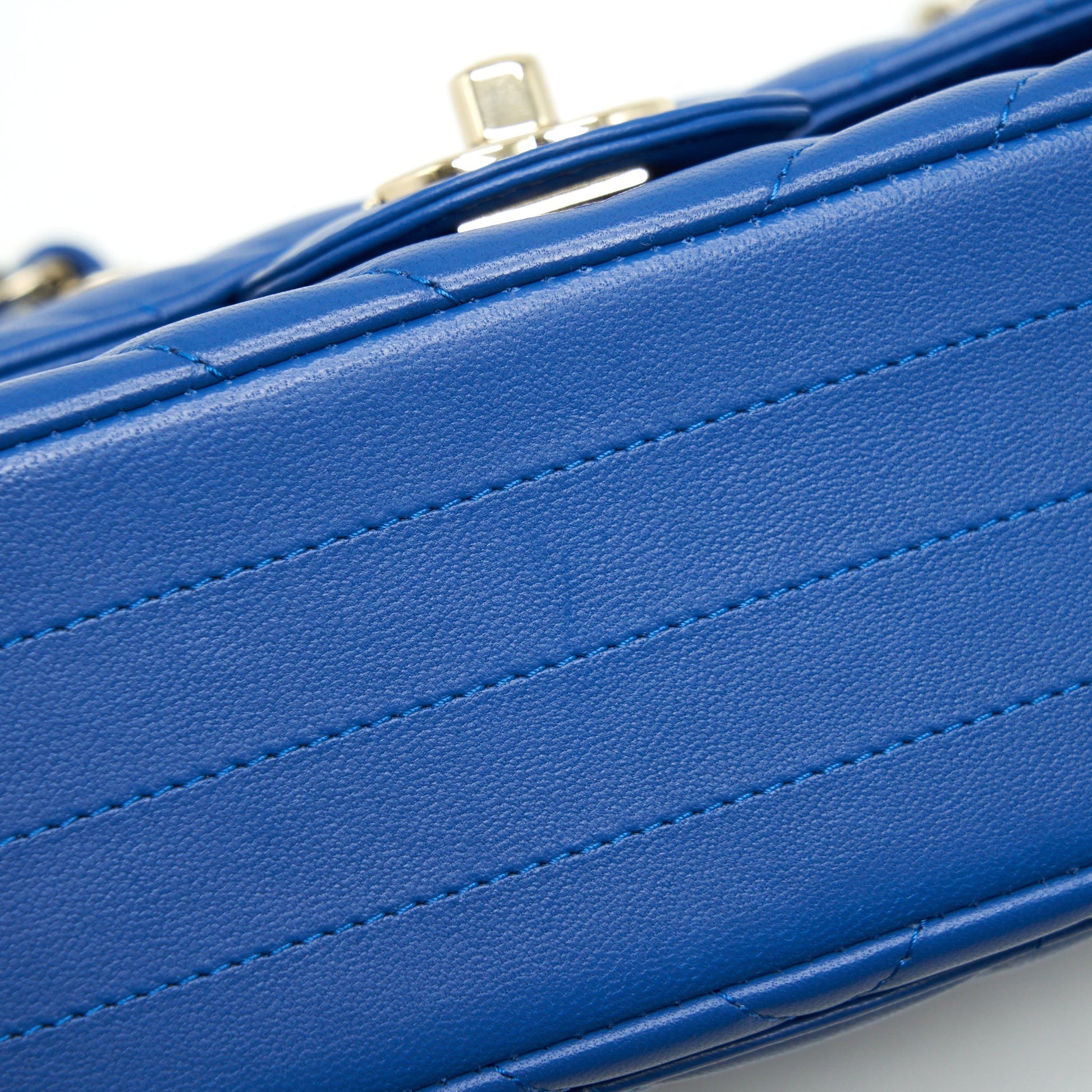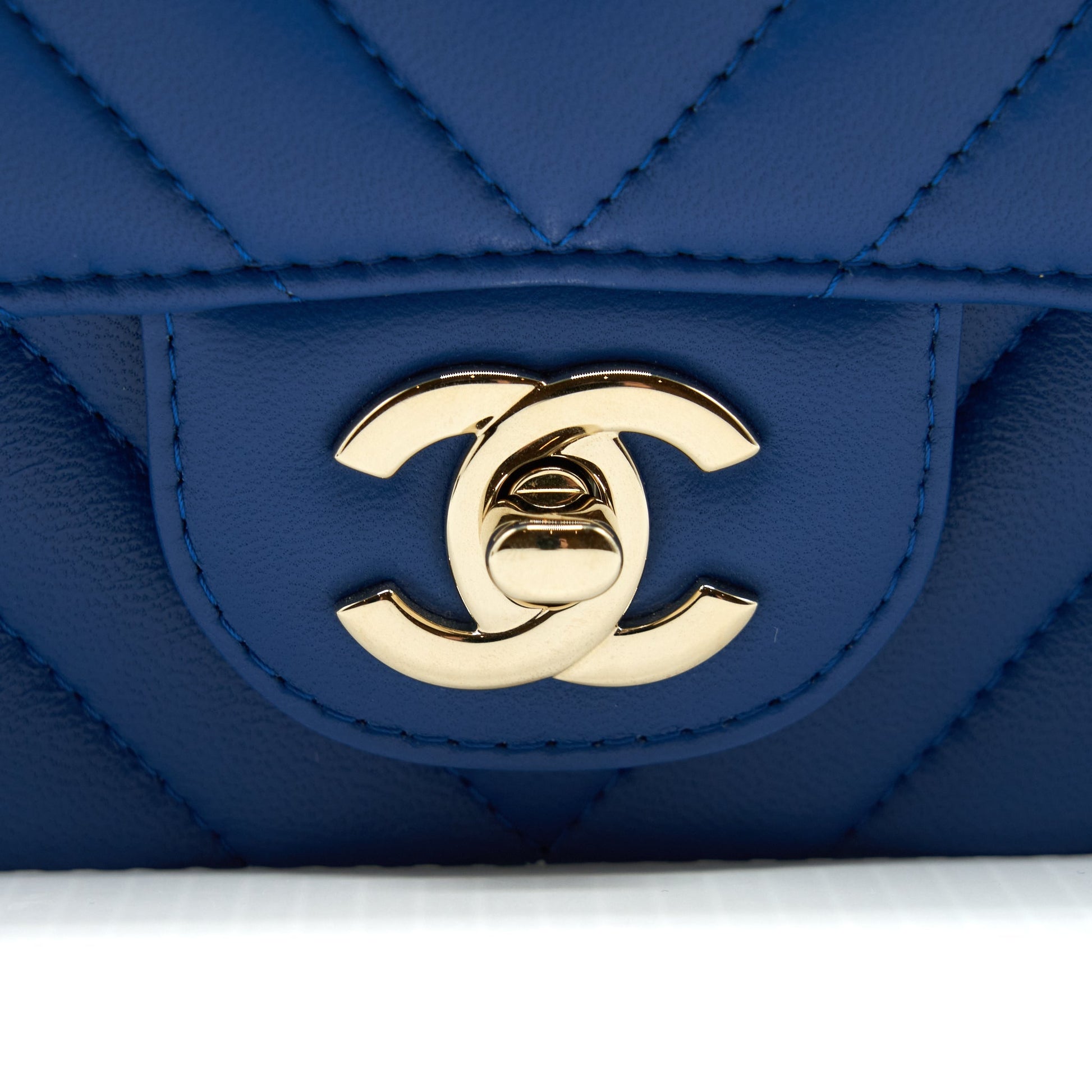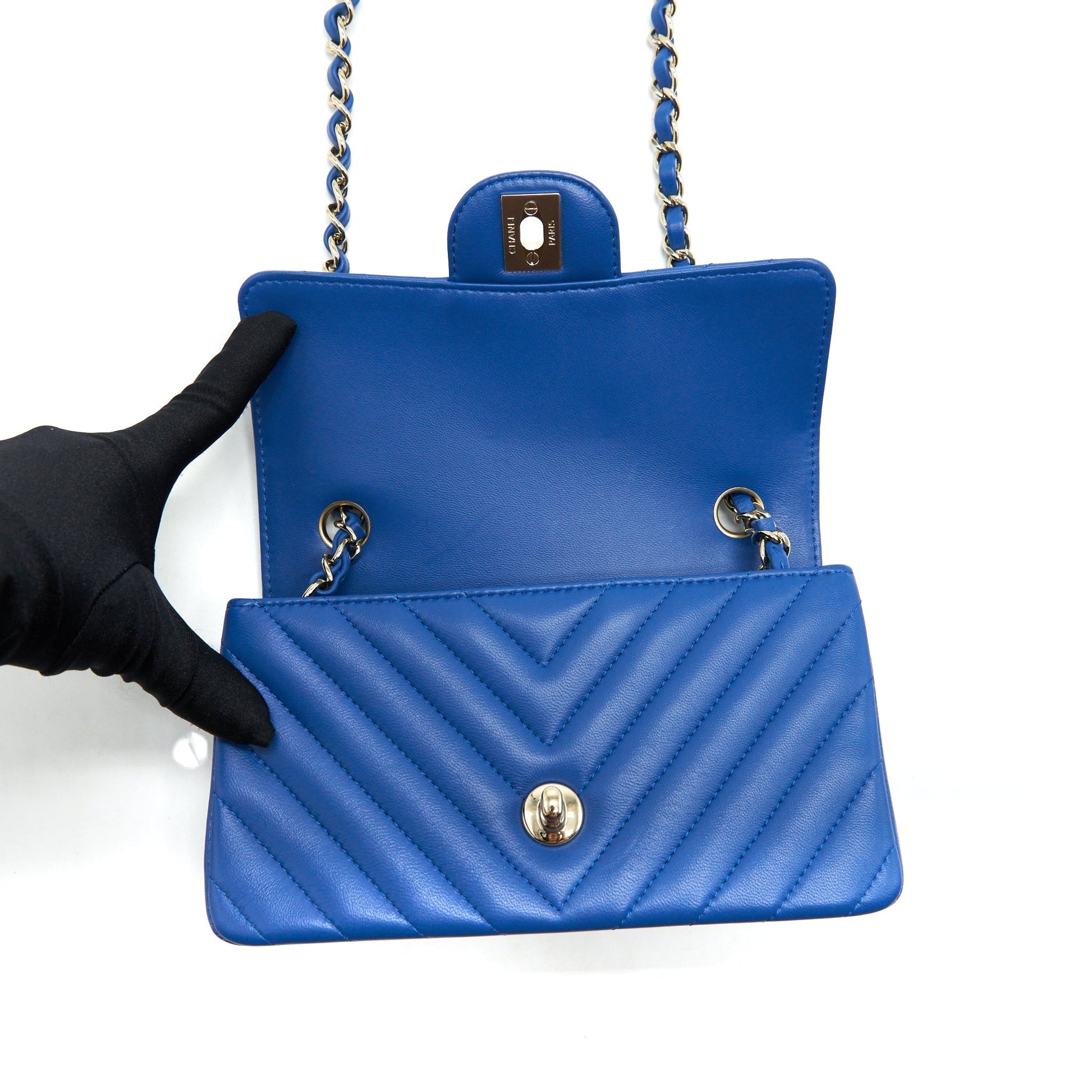 Chanel Mini Rectangular Flap Bag Chevron Lambskin Blue LGHW