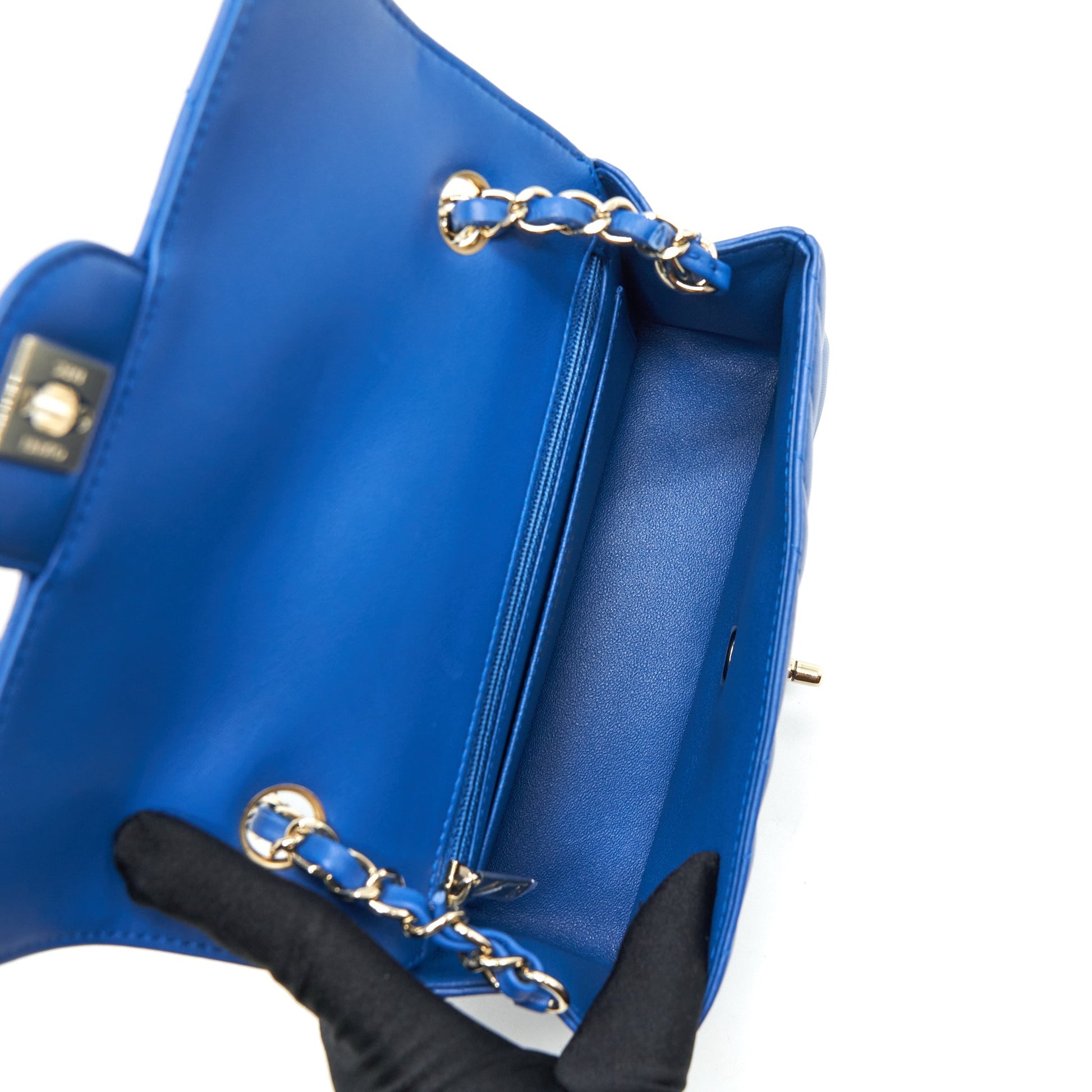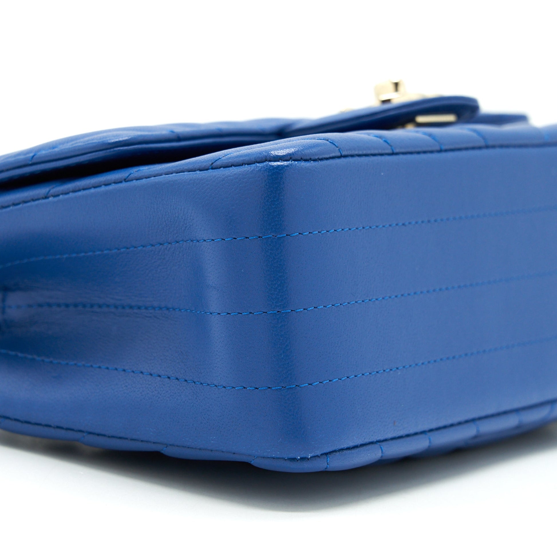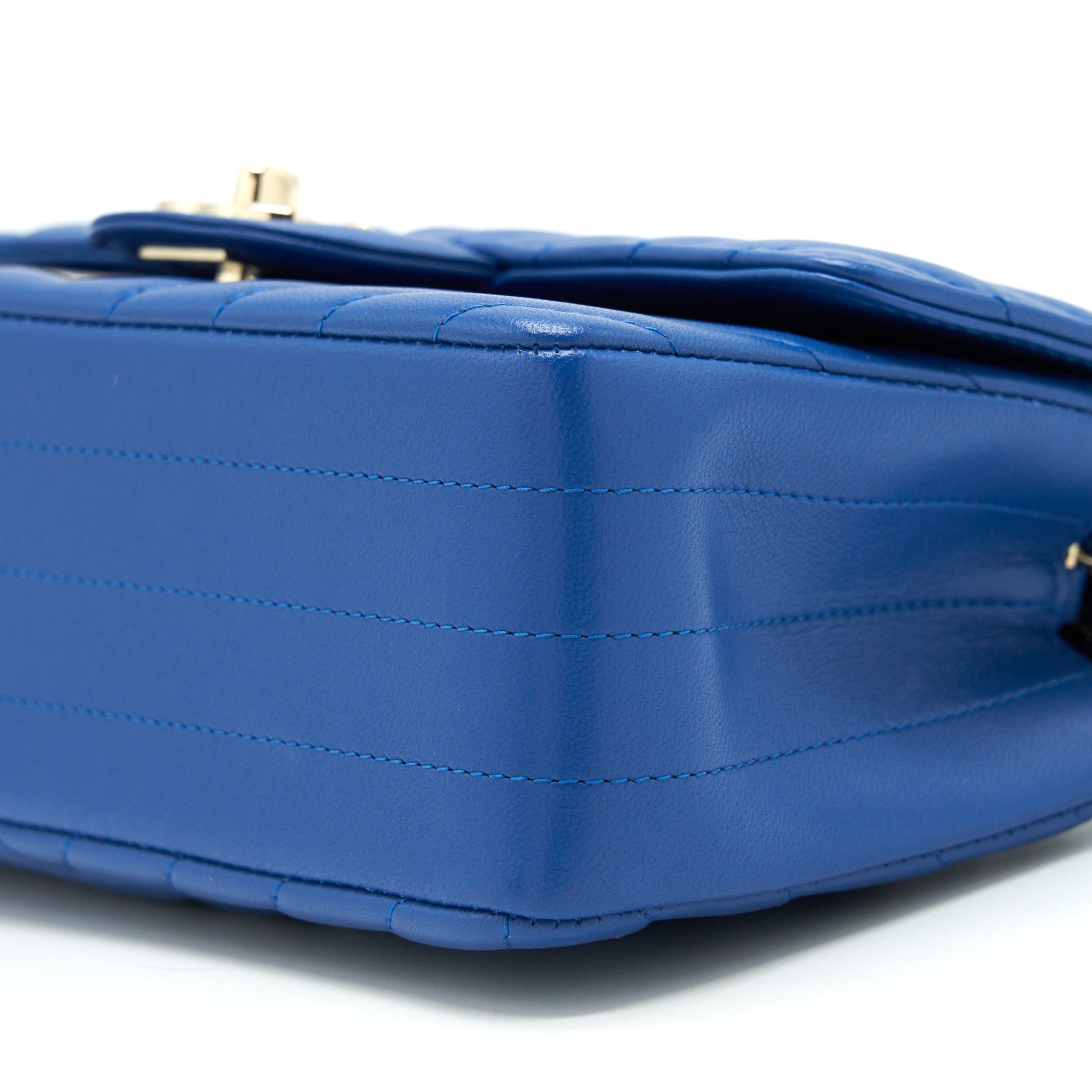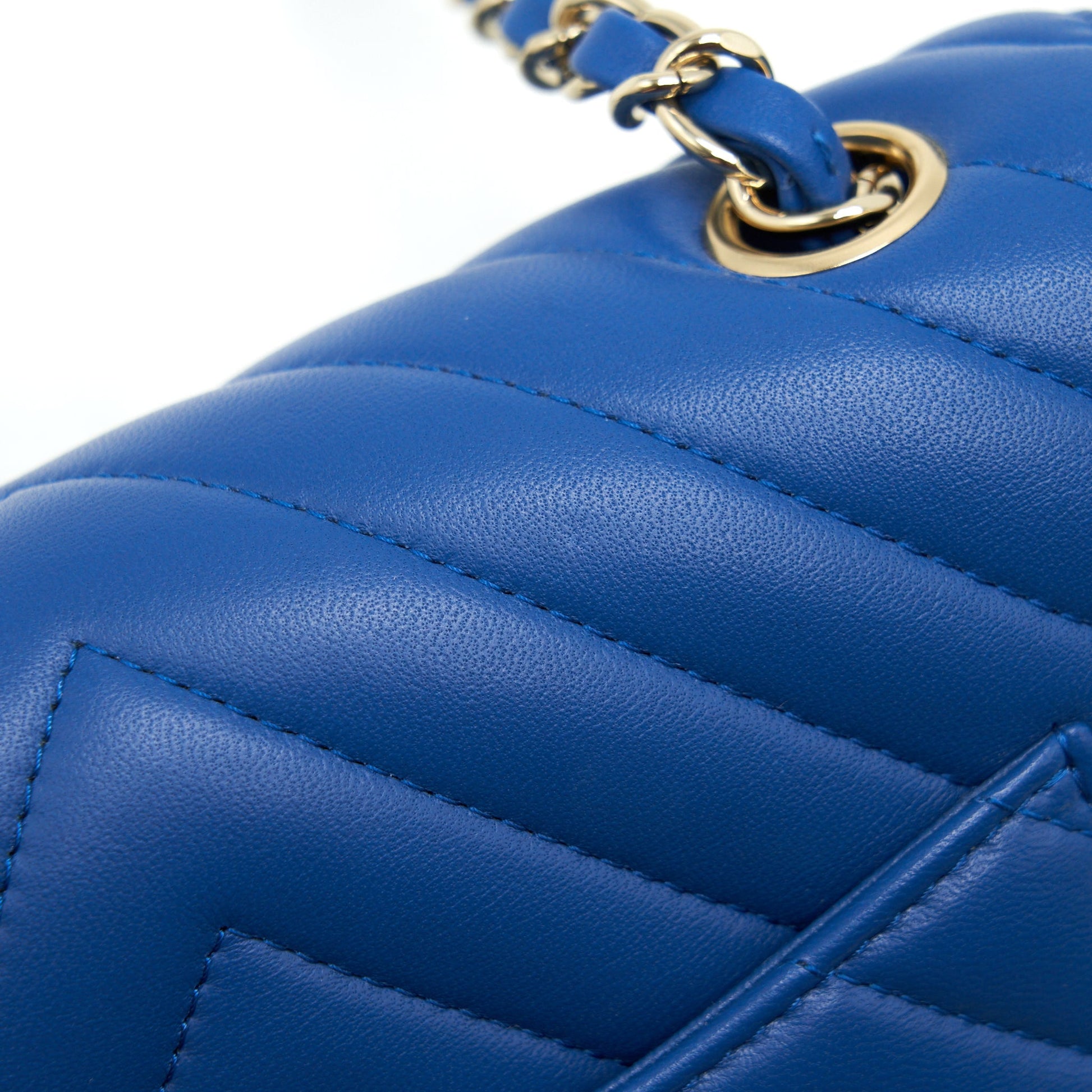 Chanel Mini Rectangular Flap Bag Chevron Lambskin Blue LGHW