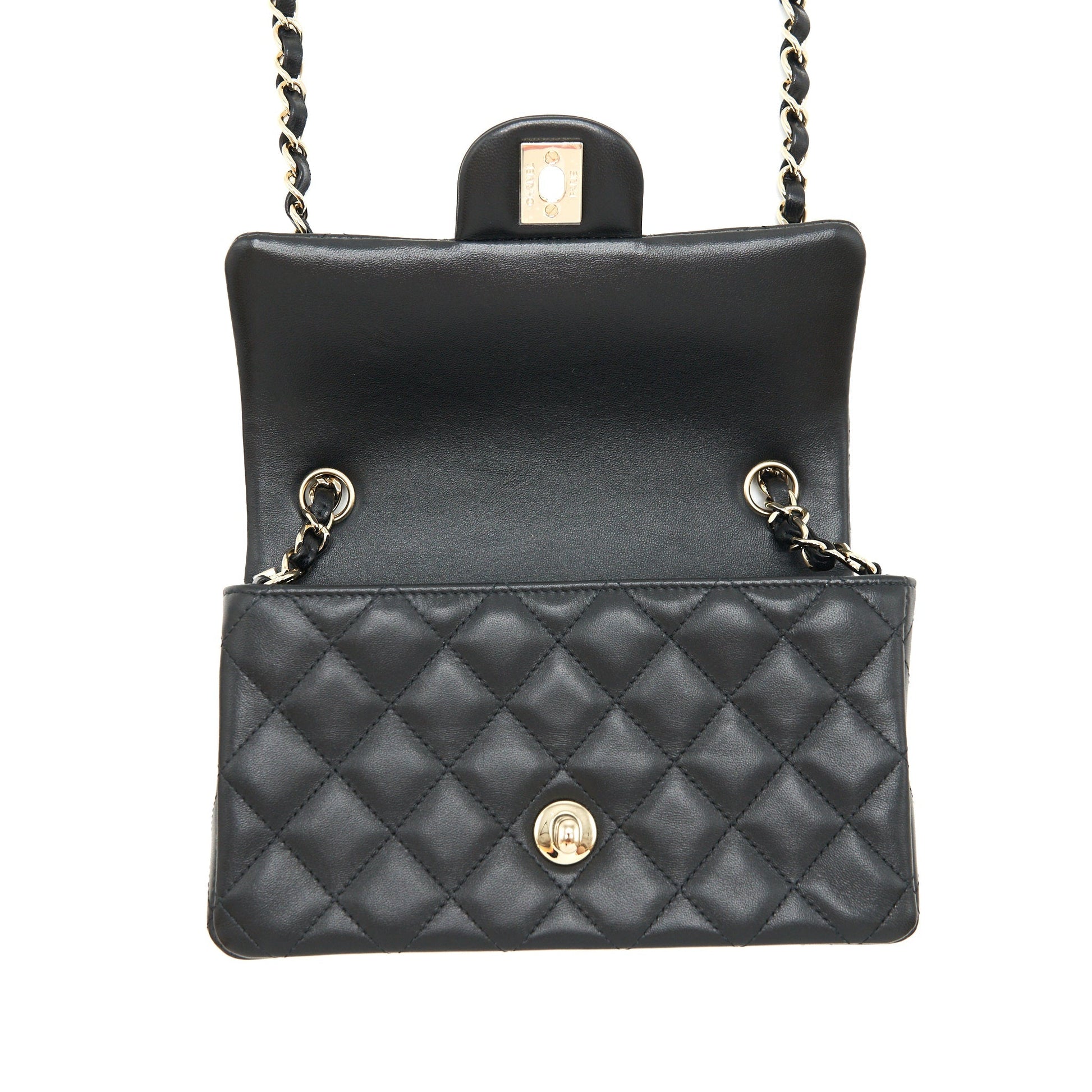 Chanel Mini rectangular flap Bag Lambskin Black LGHW (microchip)