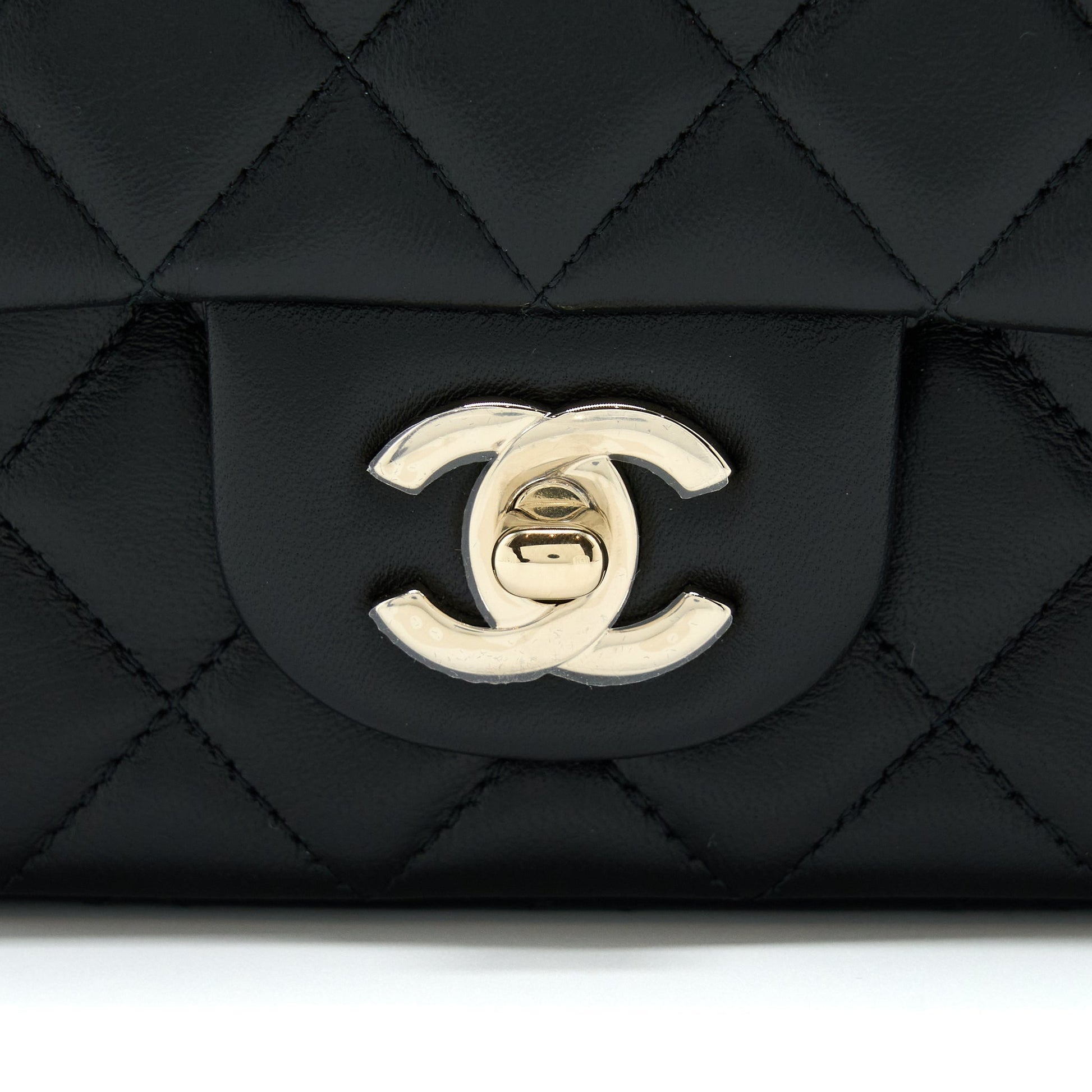 Chanel Mini Rectangular Flap Bag Lambskin Black LGHW (Microchip)
