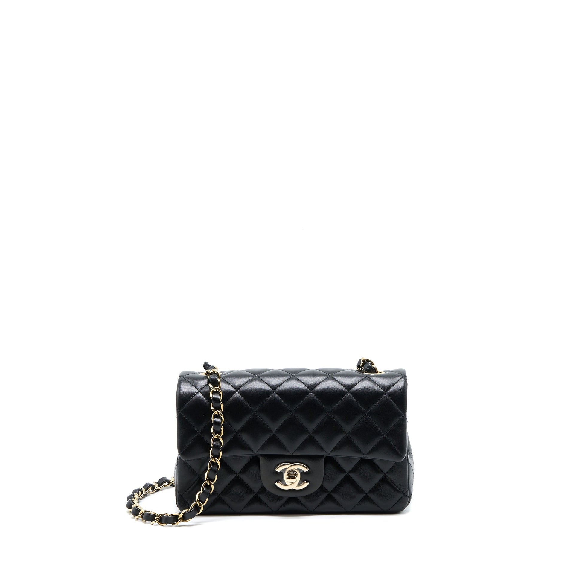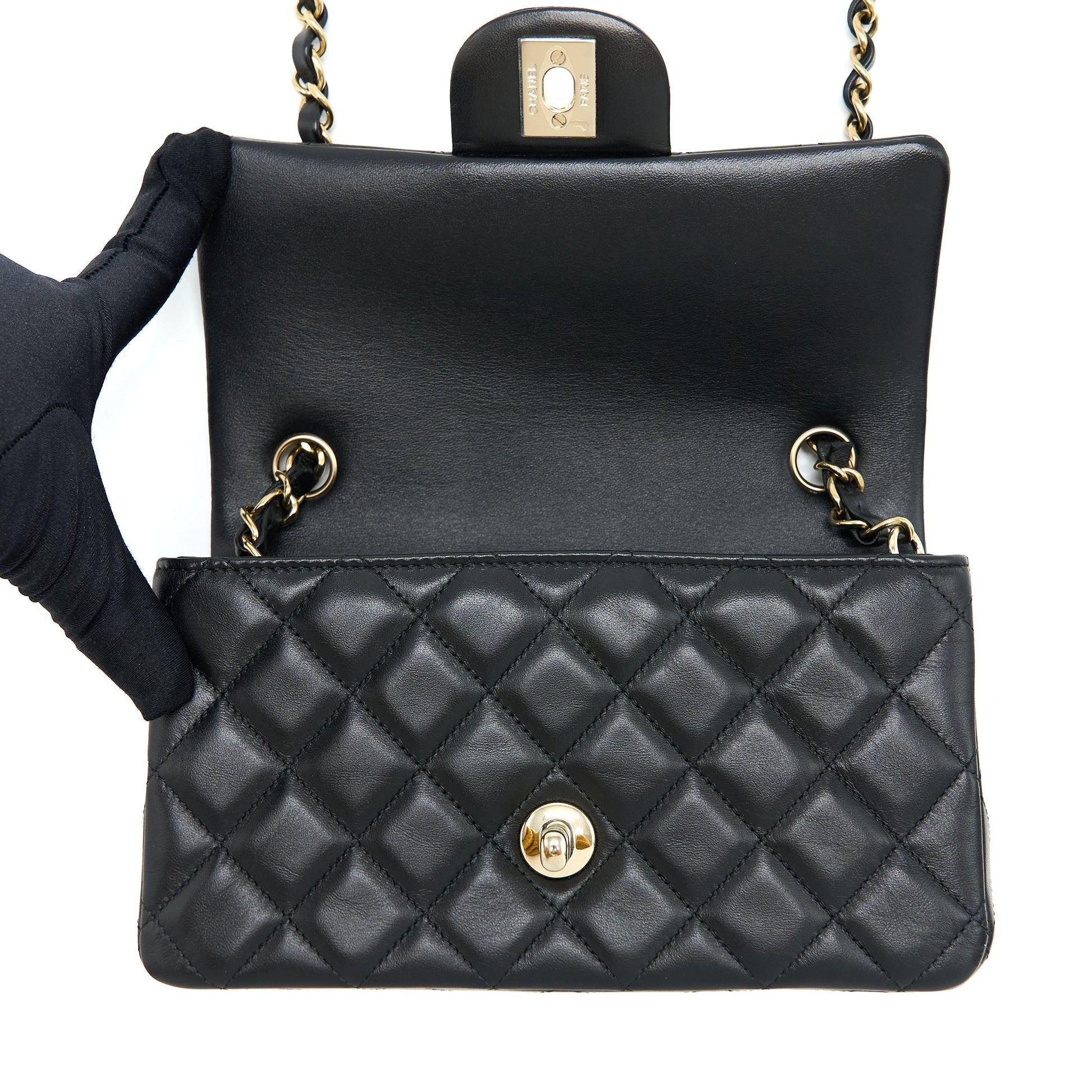 Chanel Mini Rectangular Flap Bag Lambskin Black LGHW (Microchip)