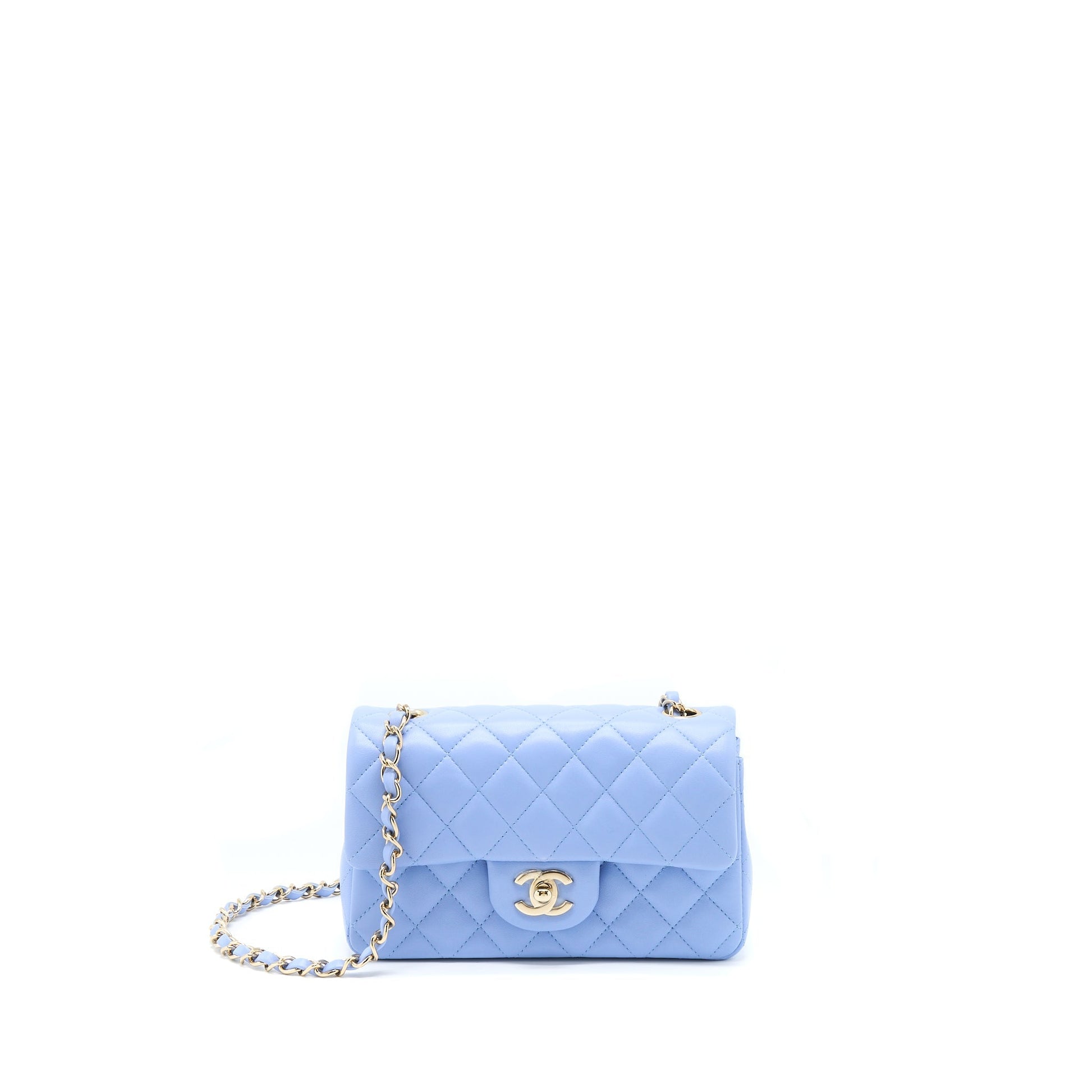 Chanel Mini Rectangular Flap Bag Lambskin Blue LGHW