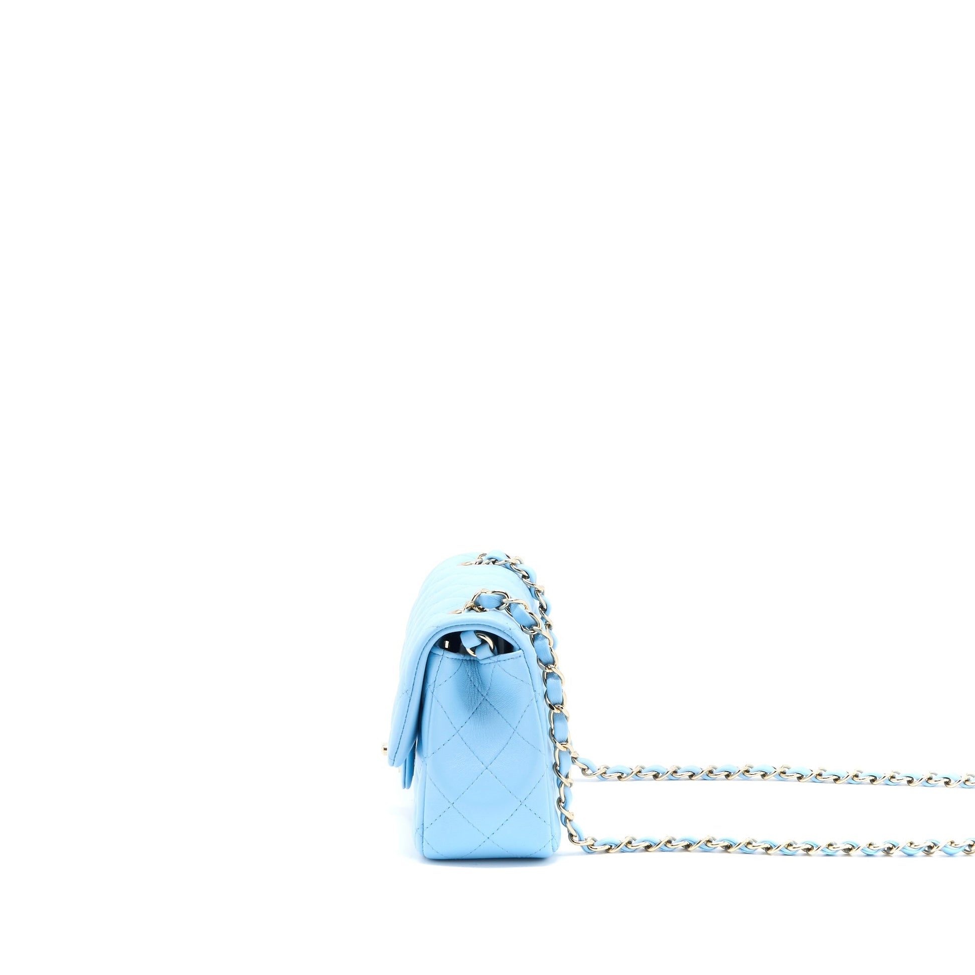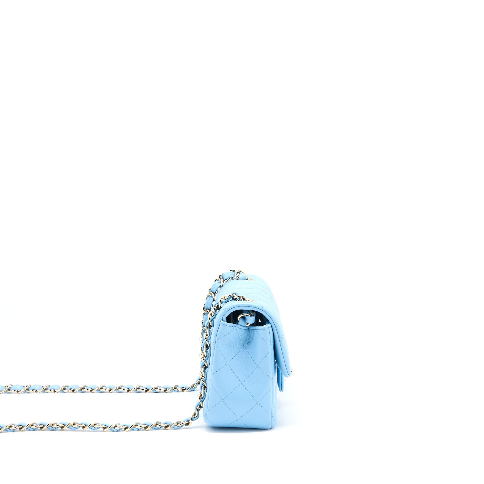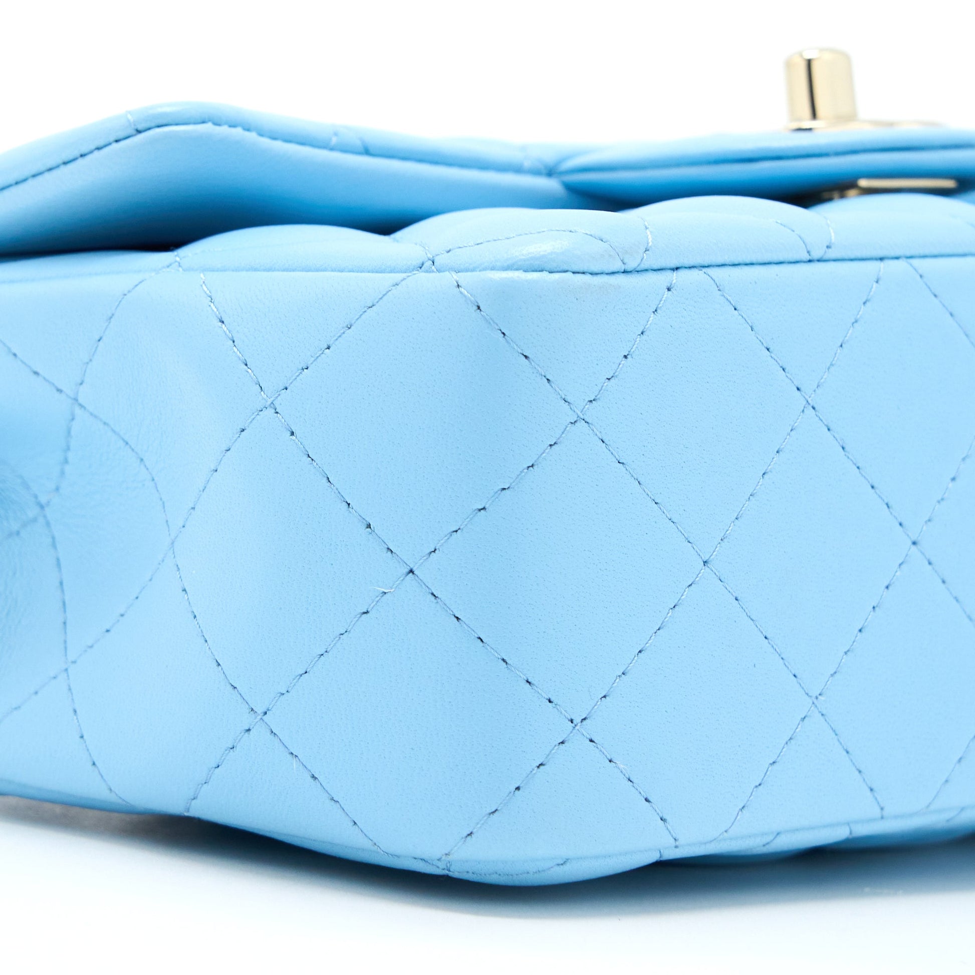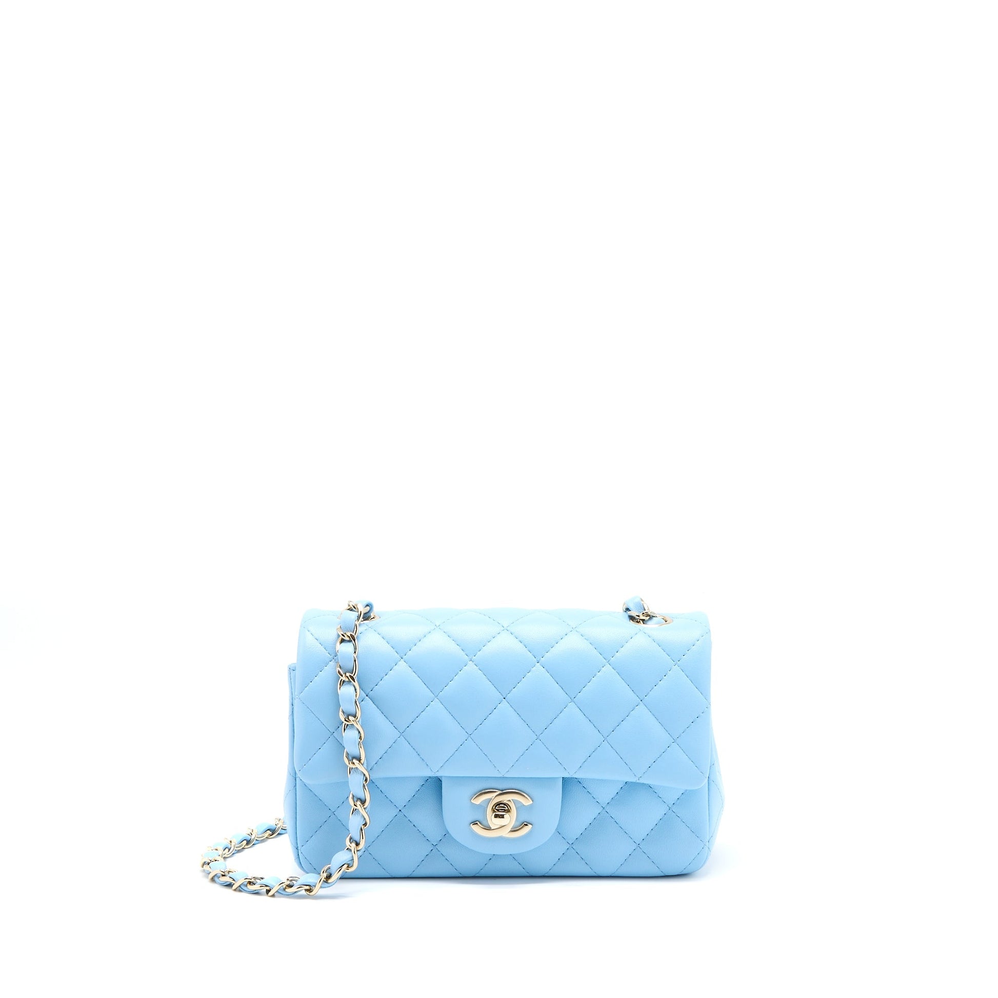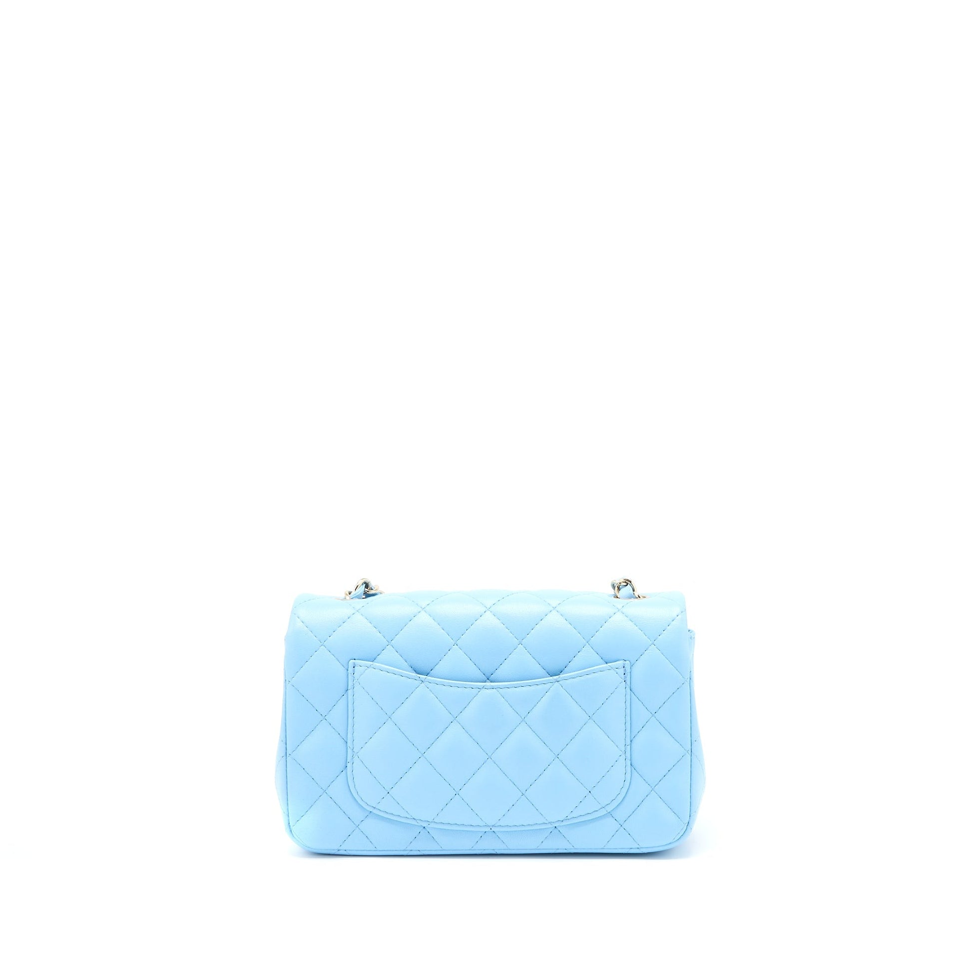 Chanel Mini Rectangular Flap Bag Lambskin Blue LGHW (Microchip)